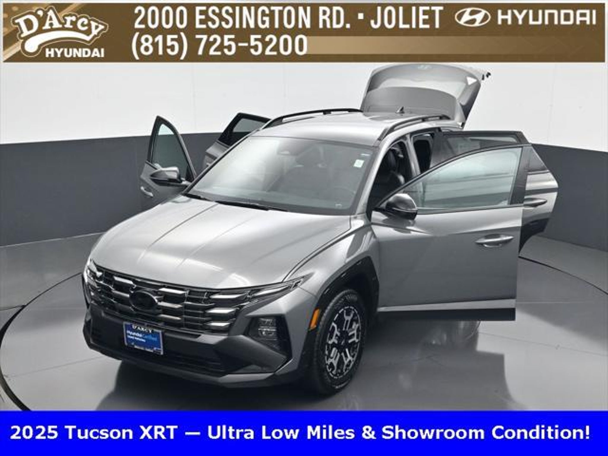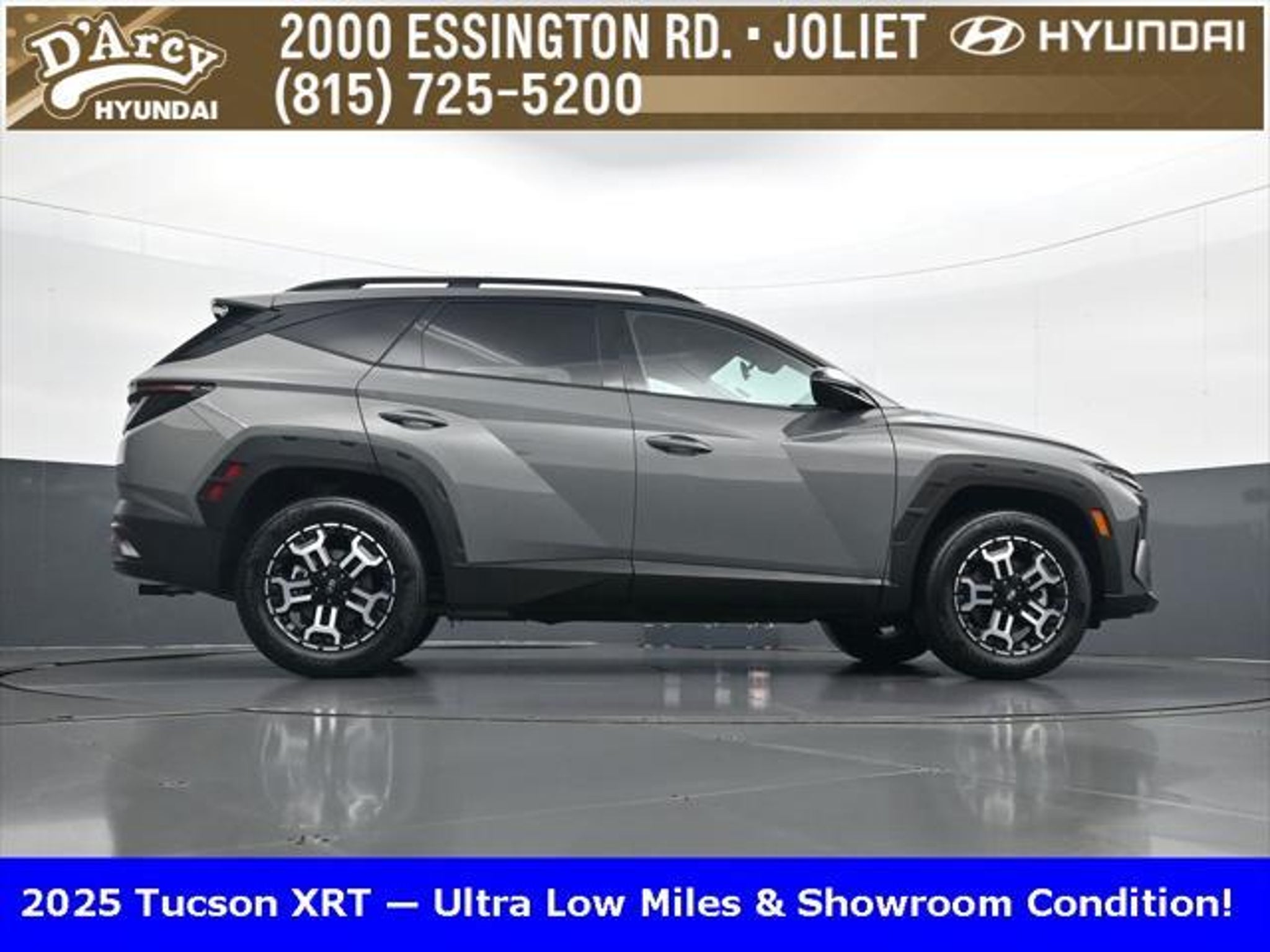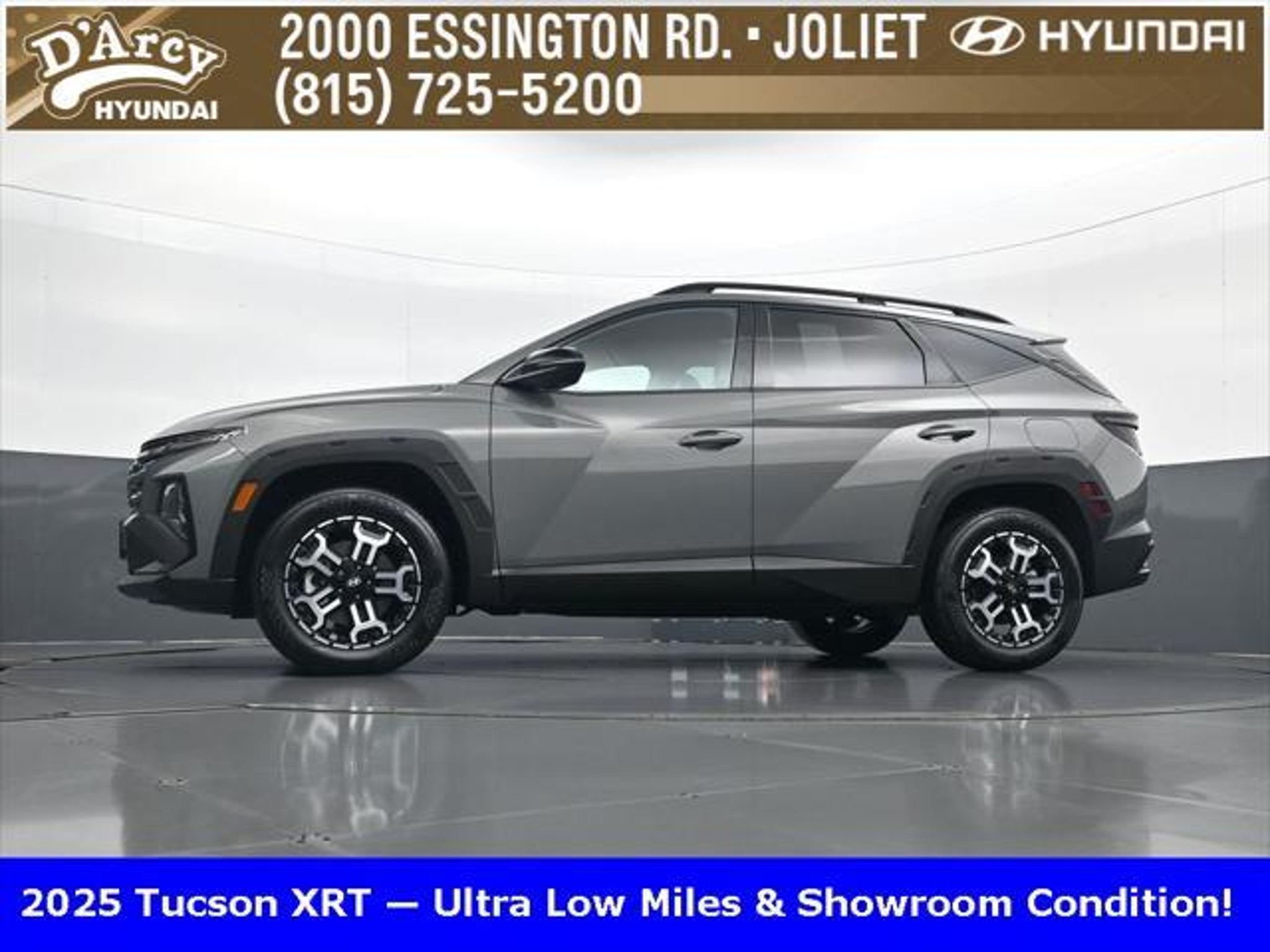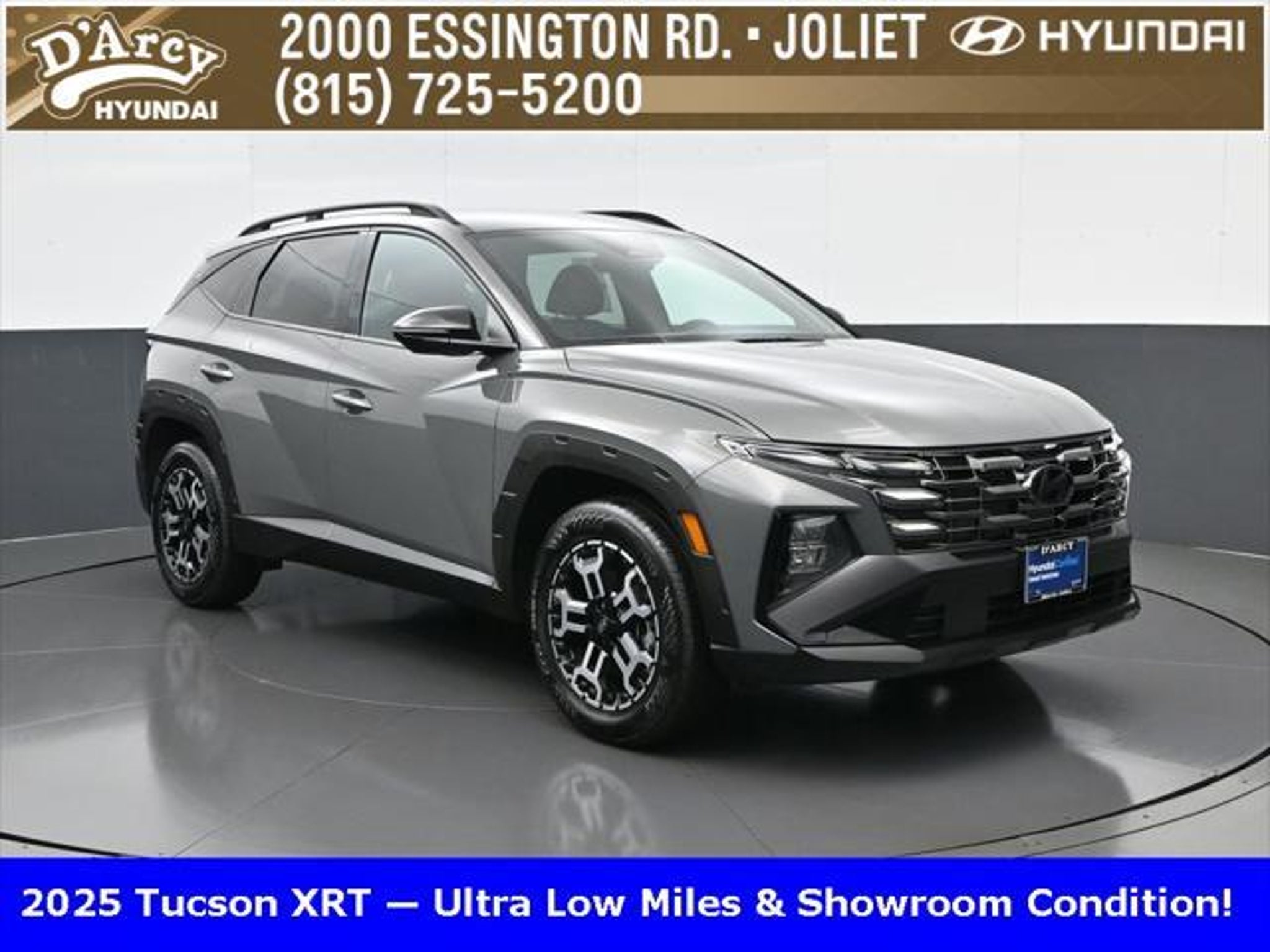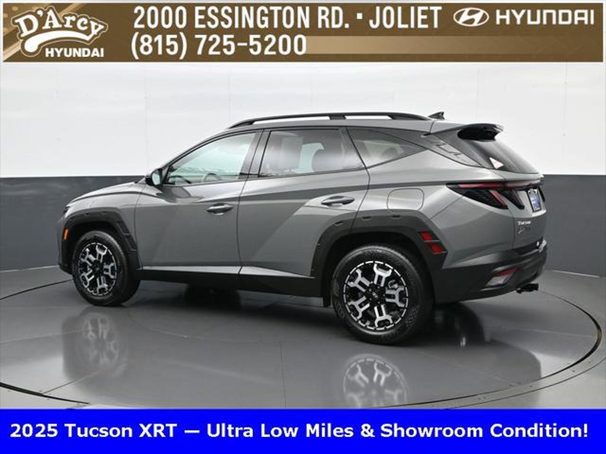 Clean CARFAX. ONE OWNER LOCAL TRADE!, LOW MILES!, GREAT VEHICLE HISTORY!, BOUGHT HERE SERVICED HERE!, HYUNDAI CERTIFIED!, FULLY SERVICED AND READY TO GO!. Certified. Hampton Gray 2025 Hyundai Tucson XRT AWD 8-Speed Automatic with SHIFTRONIC 2.5L I4 DGI DOHC 16V LEV3-SULEV30 187hp Hyundai Certified Used Vehicles Details: * Powertrain Limited Warranty: 120 Month/100,000 Mile (whichever comes first) from original in-service date * Limited Warranty: 60 Month/60,000 Mile (whichever comes first) from original in-service date * Vehicle History * Includes 10-year/Unlimited Mileage Roadside Assistance with Rental Car and Trip Interruption Reimbursement; Please See Dealers for Specific Vehicle Eligibility Requirements. 10-Year/100,000 Mile Hybrid/EV Battery Warranty. 3-Months SiriusXM Trial Subscription. Complimentary 1 Year (Connected Care & Remote Pkgs). * 173 Point Inspection * Roadside Assistance * Warranty Deductible: $50 Discover the D'Arcy Difference! We care - we are here and we are ready to help! Stop by today to see up to date information, including showroom and service hours, and how to make an appointment or schedule delivery. D'Arcy Motors has been serving Joliet and its surrounding communities for over 25 years. Our business philosophy, which is to sell cars one car at a time and to make the guest the most important part of the process, has remained the same since 1991. Contact us today to experience the D'Arcy Difference! Pulse® Safer Braking Technology for $399 added to all New and CPO"“ The rear-end collision deterrent that rapidly pulses your third brake light four times before going solid when you press the brake pedal. This feature enhances safety by helping alert trailing drivers. Discover the D'Arcy Difference! We care - we are here and we are ready to help! Stop by today to see up to date information, including showroom and service hours, and how to make an appointment or schedule delivery. D'Arcy Motors has been serving Joliet and its surrounding communities for over 25 years. Our business philosophy, which is to sell cars one car at a time and to make the guest the most important part of the process, has remained the same since 1991. Contact us today to experience the D'Arcy Difference! 24/30 City/Highway MPG This 2025 Hyundai Tucson comes equipped with: Option Group 01, 4-Wheel Disc Brakes, 6 Speakers, ABS brakes, Air Conditioning, Alloy wheels, AM/FM radio: SiriusXM, Apple CarPlay & Android Auto, Auto High-beam Headlights, Automatic temperature control, Brake assist, Bumpers: body-color, Cargo Blocks, Cargo Net, Cargo Tray, Carpeted Floor Mats, Delay-off headlights, Driver door bin, Driver vanity mirror, Dual front impact airbags, Dual front side impact airbags, Electronic Stability Control, Emergency communication system: Bluelink, First Aid Kit, Four wheel independent suspension, Front anti-roll bar, Front Bucket Seats, Front Center Armrest, Front dual zone A/C, Front reading lights, Fully automatic headlights, H-Tex Seat Trim, Heated door mirrors, Heated Front Bucket Seats, Heated front seats, Illuminated entry, Leather steering wheel, Low tire pressure warning, Occupant sensing airbag, Outside temperature display, Overhead airbag, Overhead console, Panic alarm, Passenger door bin, Passenger vanity mirror, Power door mirrors, Power driver seat, Power Liftgate, Power steering, Power windows, Radio data system, Radio: AM/FM/HD Audio System, Rear anti-roll bar, Rear reading lights, Rear seat center armrest, Rear side impact airbag, Rear window defroster, Rear window wiper, Remote keyless entry, Roadside Assistance Kit, Security system, Speed control, Split folding rear seat, Spoiler, Steering wheel mounted audio controls, Tachometer, Telescoping steering wheel, Tilt steering wheel, Traction control, Trip computer, Turn signal indicator mirrors, Variably intermittent wipers, Wheel Locks, and Wheels: 18 XRT-Exclusive Alloy.