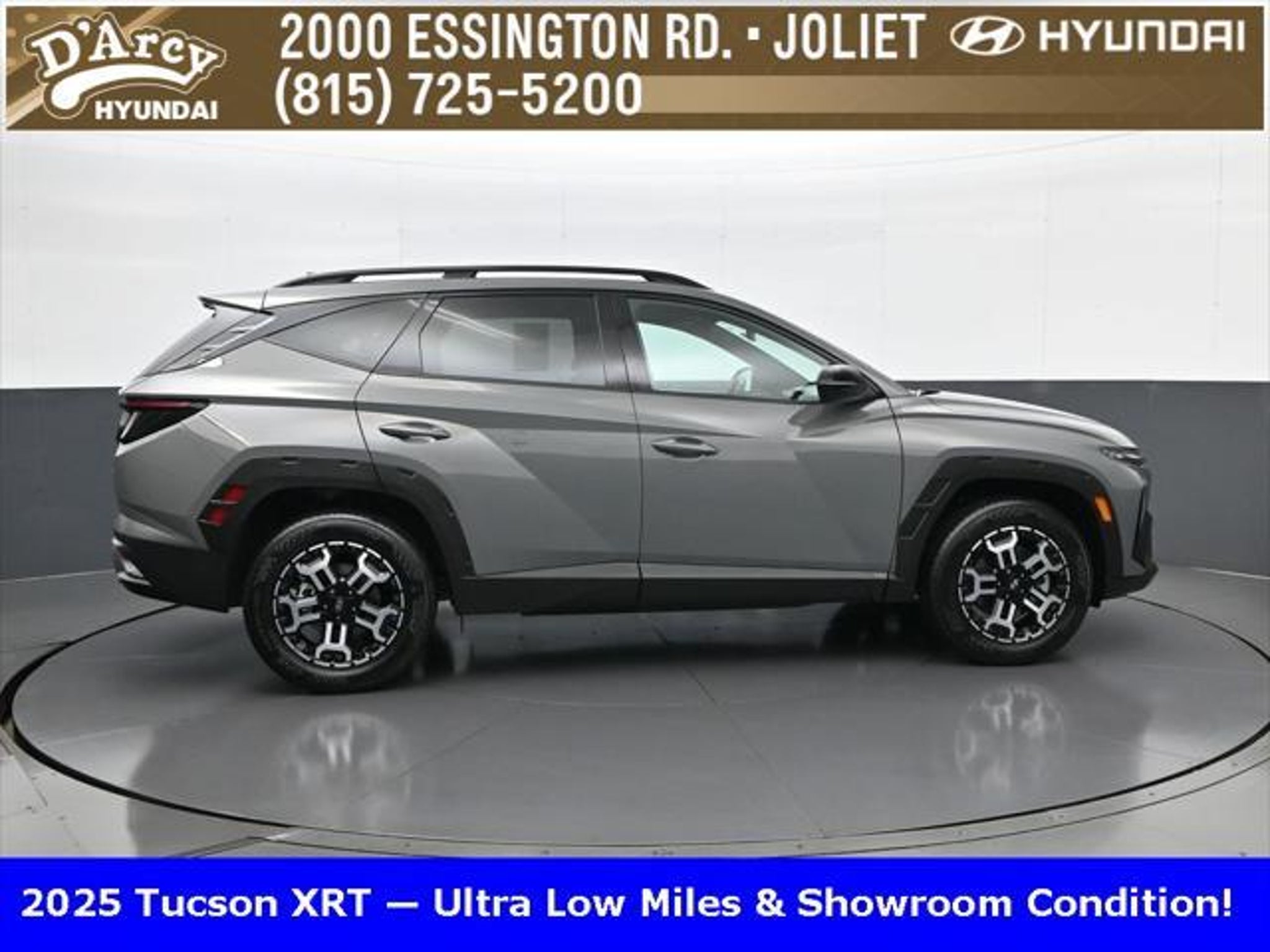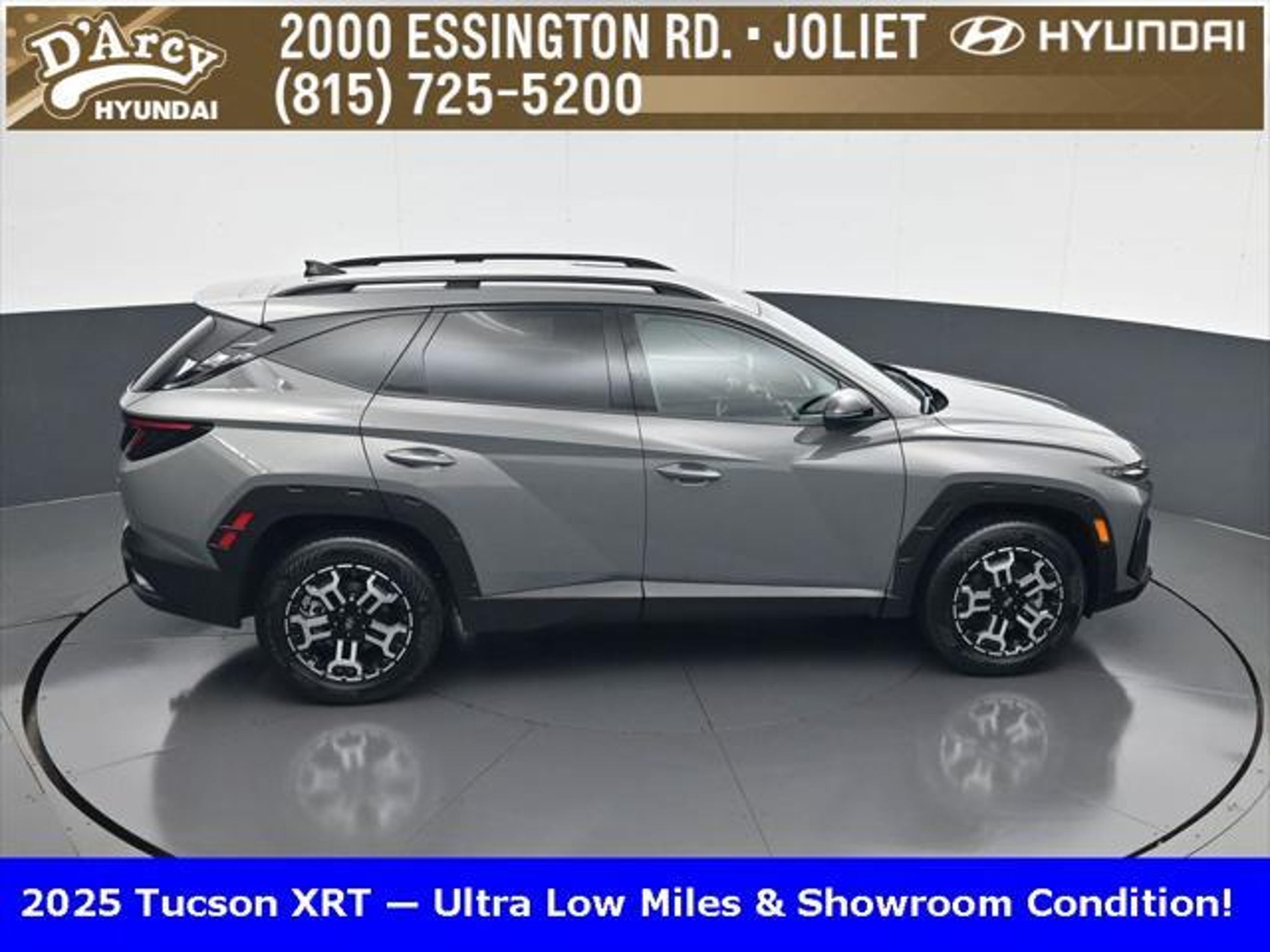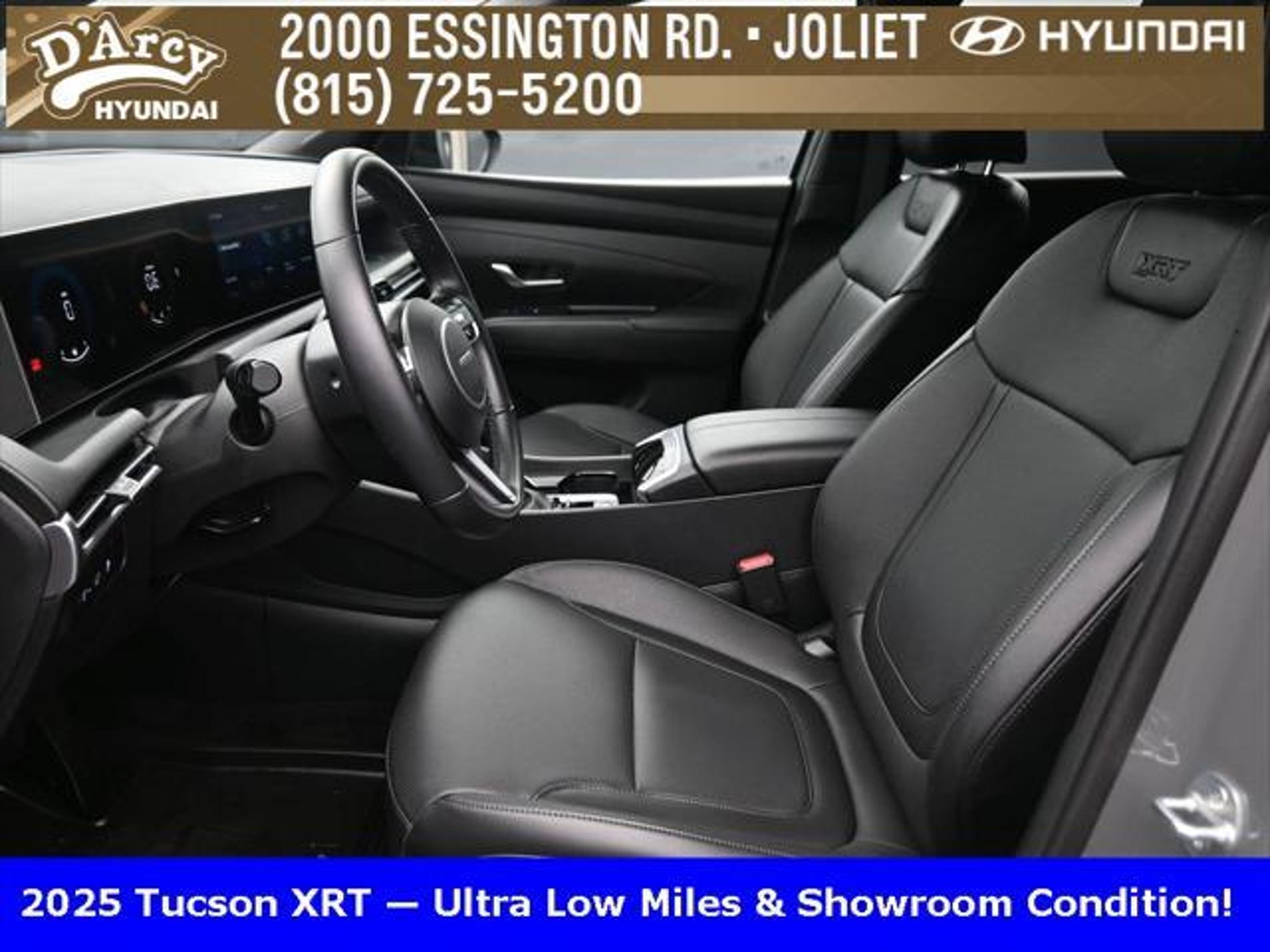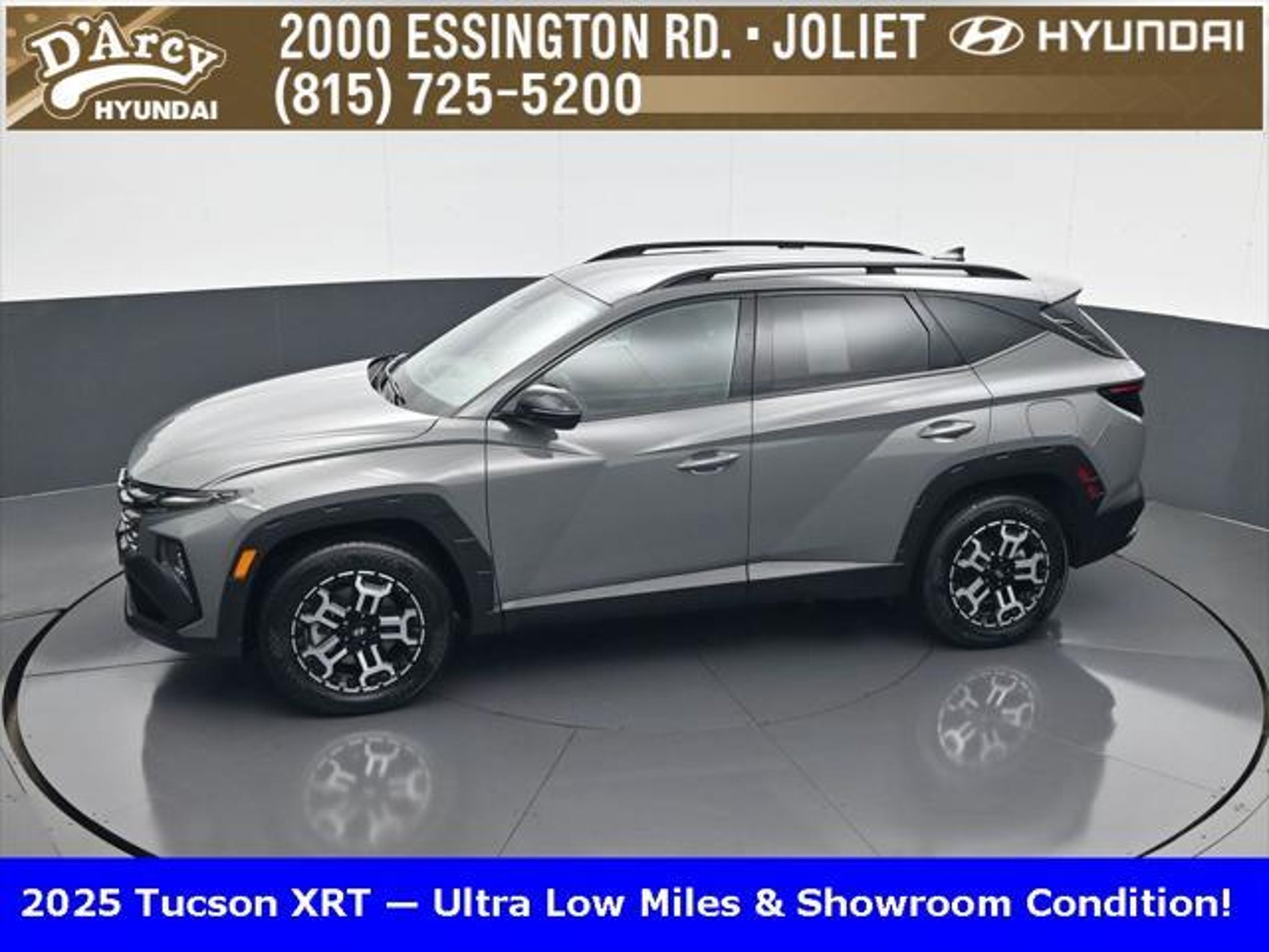 Clean CARFAX. ONE OWNER LOCAL TRADE!, LOW MILES!, GREAT VEHICLE HISTORY!, BOUGHT HERE SERVICED HERE!, HYUNDAI CERTIFIED!, FULLY SERVICED AND READY TO GO!. Certified. Hampton Gray 2025 Hyundai Tucson XRT AWD 8-Speed Automatic with SHIFTRONIC 2.5L I4 DGI DOHC 16V LEV3-SULEV30 187hp Hyundai Certified Used Vehicles Details: * Powertrain Limited Warranty: 120 Month/100,000 Mile (whichever comes first) from original in-service date * Limited Warranty: 60 Month/60,000 Mile (whichever comes first) from original in-service date * Vehicle History * Includes 10-year/Unlimited Mileage Roadside Assistance with Rental Car and Trip Interruption Reimbursement; Please See Dealers for Specific Vehicle Eligibility Requirements. 10-Year/100,000 Mile Hybrid/EV Battery Warranty. 3-Months SiriusXM Trial Subscription. Complimentary 1 Year (Connected Care & Remote Pkgs). * 173 Point Inspection * Roadside Assistance * Warranty Deductible: $50 Discover the D'Arcy Difference! We care - we are here and we are ready to help! Stop by today to see up to date information, including showroom and service hours, and how to make an appointment or schedule delivery. D'Arcy Motors has been serving Joliet and its surrounding communities for over 25 years. Our business philosophy, which is to sell cars one car at a time and to make the guest the most important part of the process, has remained the same since 1991. Contact us today to experience the D'Arcy Difference! Pulse® Safer Braking Technology for $399 added to all New and CPO"“ The rear-end collision deterrent that rapidly pulses your third brake light four times before going solid when you press the brake pedal. This feature enhances safety by helping alert trailing drivers. Discover the D'Arcy Difference! We care - we are here and we are ready to help! Stop by today to see up to date information, including showroom and service hours, and how to make an appointment or schedule delivery. D'Arcy Motors has been serving Joliet and its surrounding communities for over 25 years. Our business philosophy, which is to sell cars one car at a time and to make the guest the most important part of the process, has remained the same since 1991. Contact us today to experience the D'Arcy Difference! 24/30 City/Highway MPG This 2025 Hyundai Tucson comes equipped with: Option Group 01, 4-Wheel Disc Brakes, 6 Speakers, ABS brakes, Air Conditioning, Alloy wheels, AM/FM radio: SiriusXM, Apple CarPlay & Android Auto, Auto High-beam Headlights, Automatic temperature control, Brake assist, Bumpers: body-color, Cargo Blocks, Cargo Net, Cargo Tray, Carpeted Floor Mats, Delay-off headlights, Driver door bin, Driver vanity mirror, Dual front impact airbags, Dual front side impact airbags, Electronic Stability Control, Emergency communication system: Bluelink, First Aid Kit, Four wheel independent suspension, Front anti-roll bar, Front Bucket Seats, Front Center Armrest, Front dual zone A/C, Front reading lights, Fully automatic headlights, H-Tex Seat Trim, Heated door mirrors, Heated Front Bucket Seats, Heated front seats, Illuminated entry, Leather steering wheel, Low tire pressure warning, Occupant sensing airbag, Outside temperature display, Overhead airbag, Overhead console, Panic alarm, Passenger door bin, Passenger vanity mirror, Power door mirrors, Power driver seat, Power Liftgate, Power steering, Power windows, Radio data system, Radio: AM/FM/HD Audio System, Rear anti-roll bar, Rear reading lights, Rear seat center armrest, Rear side impact airbag, Rear window defroster, Rear window wiper, Remote keyless entry, Roadside Assistance Kit, Security system, Speed control, Split folding rear seat, Spoiler, Steering wheel mounted audio controls, Tachometer, Telescoping steering wheel, Tilt steering wheel, Traction control, Trip computer, Turn signal indicator mirrors, Variably intermittent wipers, Wheel Locks, and Wheels: 18 XRT-Exclusive Alloy.