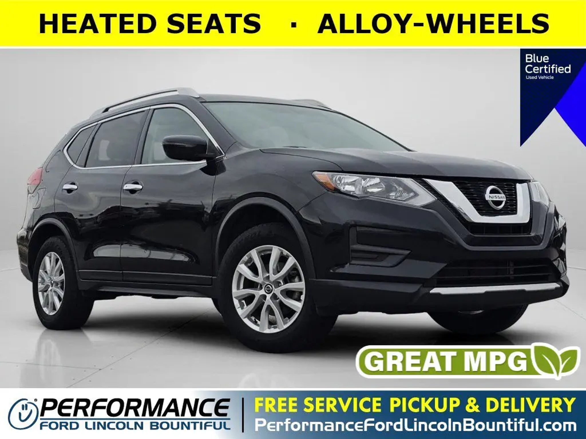 *Ford Blue Advantage Certified* and loaded with convenient features like: HEATED SEATS, ALLOY-WHEELS, POWER SEAT, Remote Entry. Have complete peace of mind as this 1-owner vehicle includes a *Free CARFAX report*.*Save thousands in maintenance* by purchasing this Ford Blue Advantage Pre-Owned *2017 Nissan Rogue SV* with only 132,779 miles!This stunning *2017 Nissan Rogue SV* features a beautiful *Black* exterior and a *Charcoal* interior.Compare, adjust and save your payment options on every Certified Ford vehicle in stock at: PerformanceFordBountiful.comAutomatic Climate Control, Cloth Seats, Illuminated entry, Bucket Front Seats, Steering Wheel Audio Controls, Air Conditioning, Telescoping Wheel, Multi-zone Climate Control, Center Console Storage, Single-Disc CD Player, Rear Seat Center Armrest, Overhead Console, Split Folding Rear Seat, Trip Odometer, Outside Temperature Gauge, Vanity Mirrors, Reading Lights, Center Armrest, Tilt Steering Wheel, Rear Window Defroster.*Safety and Economy Features Include:* Electronic Stability Control, Integrated Turn Signal Mirrors, Brake Assist, Aftermarket Anti Theft System, Security System, ABS Brakes, Dual Air Bags, Speed Sensitive Power Steering, Delay-off headlights, Tire Pressure Monitoring System, Overhead airbag, Driver Front Side Impact Air Bag, Front anti-whiplash head restraints, Low tire pressure warning, Passenger Air Bag Sensor.This vehicle has an EPA rated fuel economy of 32.0 highway / 25.0 city1.This Ford Blue advantage Certified 2017 Nissan Rogue SV passed a rigorous inspection of mechanical, electrical and aesthetic details and comes with a 139-point inspection, completed by one of our factory-trained technicians. For your safety and convenience, this vehicle comes fully-detailed and sanitized. Every Ford Gold Certified Pre-Owned Vehicle from Performance Ford Lincoln Bountiful comes with a 172-point inspection and Blue Certified vehicles*Warranties include* For Ford vehicles, a comprehensive limited warranty for 12 months/12,000 miles. Along with this comprehensive limited warranty, 7-year/100,000-mile powertrain limited warranty coverage is included with every Ford Gold Certified Pre-owned vehicle.2, Complimentary 24/7 Roadside Assistance.3. Lincoln Certified vehicles come with a limited warranty that covers repair or replacement of covered components for six years from the original Lincoln New-Vehicle Limited Warranty start date, or up to 100,000 miles on odometer- whichever comes first. Coverage includes parts and labor, but excludes wear-and-tear items. Painstakingly reconditioned to the manufacturer's exacting standards by factory-trained technicians. Please see dealer for additional details.*Performance Ford Lincoln Bountiful proudly offer our customers at-home services including *Performance Valet*! When you purchase from Performance Ford Lincoln Bountiful, you will be eligible for *Complimentary Pickup & Delivery*^ for your future service appointments! We value your time and that's why want to give you the best buying and service experiences in Bountiful! Also, ask your product specialist about our home test drives and deliveries. Save time and money through our exclusive Performance Remote Services! Distance limitations may apply.Our dealership is conveniently located off Exit 315 on I-15, North of Salt Lake City. We proudly serve the communities of Bountiful, Centerville, North Salt Lake, Farmington, Salt Lake City, Kaysville, South Salt Lake, Layton, Canyon Rim, Millcreek, West Valley City, Murray, Holladay, Taylorsville, and Syracuse. As a proud member of the family-owned Performance Automotive Network, we have access to thousands of new and used vehicles. This gives us the ability to find the perfect vehicle to fit your needs and budget.*Need financing assistance?* Our strong, group-wide relationships with several lending institutions allow us to offer the most competitive rates! We will give you top-dollar for your trade or make you a cash offer if you'd prefer the convenience of selling directly.With our aggressive pricing strategy, most vehicles sell within the first few weeks, so please contact us ahead of time at * * to ensure the vehicle is still available and ready for your test drive.*We'll Put A Smile On Your Face! *1Based on EPA mileage ratings. Use for comparison purposes only. Your mileage will vary depending on driving conditions, how you drive and maintain your vehicle, etc.2Blue Certified includes a 90-Day or 4,000 mile comprehensive limited warranty coverage. See your dealer for warranty coverage details.37 Years for Gold Certified vehicles and 90 days for Blue Certified vehicles. Ford Roadside Assistance is included for certain owners and available to everyone for a per service fee. Ford reserves the right to change program details without obligations.*Terms and conditions of warranties vary by brand and vehicle. See dealer for complete details or sign in to download a copy of your vehicle's warranty. Warranty may be restricted or denied if your vehicle or part has been modified, improperly maintained or removed.Delivery to door for Test Drive.