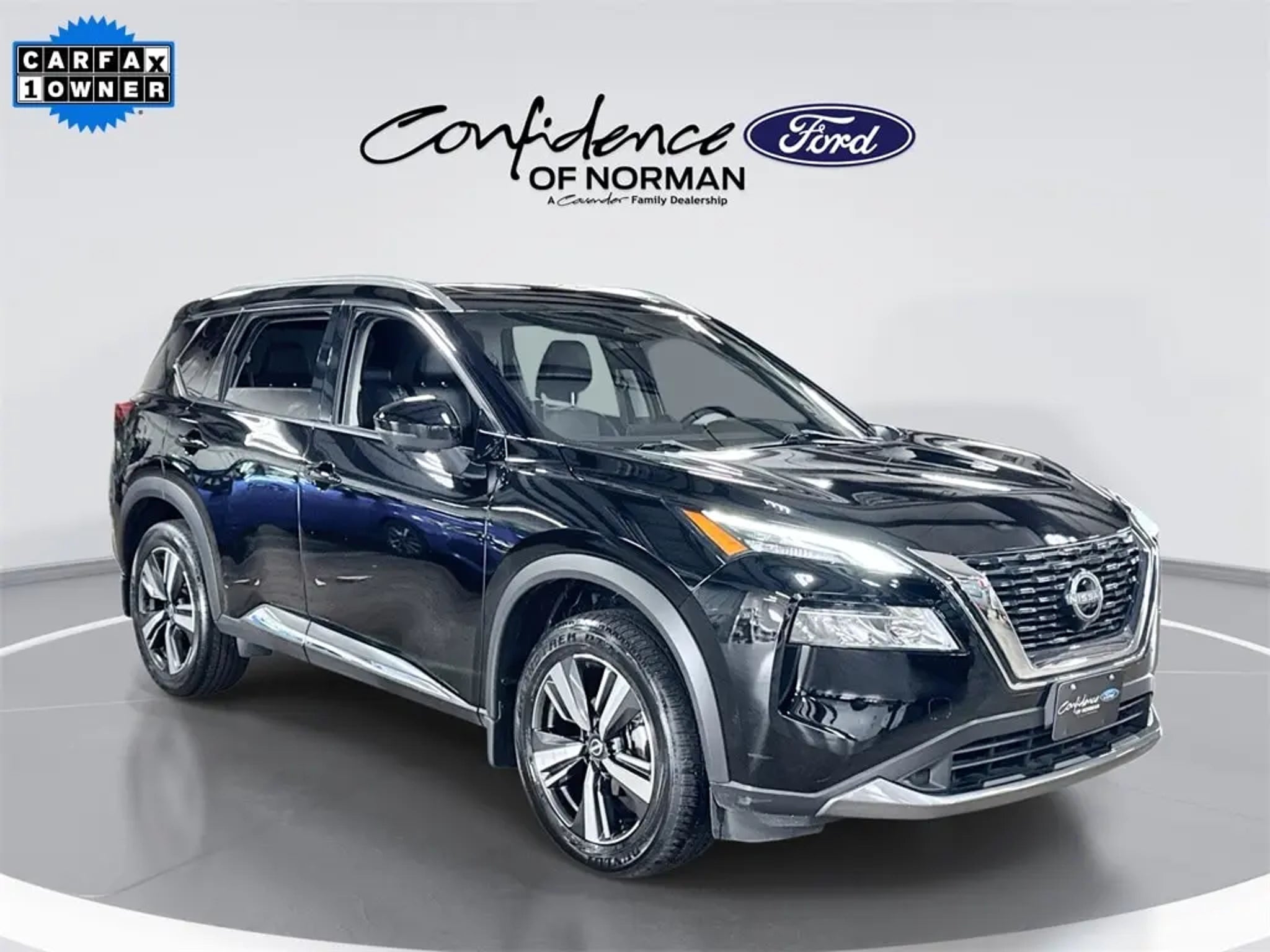 Welcome to Confidence Ford of Norman, a Cavender Auto Family dealership. This vehicle is located at 825 N Interstate Dr, Norman, OK 73069. Here at Cavender, we build relationships based on trust and integrity to exceed your expectations in your ownership experience. Quite simply, we strive to Make Confidence Happen! So stop by and allow us to serve your automotive needs we would love to meet you. Super Black 2023 Nissan Rogue SL AWD 1.5L I3 Turbocharged DOHC 12V LEV3-ULEV50 201hp CVT with Xtronic Features: AWD, 19' Aluminum Alloy Wheels, 4-Wheel Disc Brakes, ABS brakes, Automatic temperature control, Four wheel independent suspension, Fully automatic headlights, Heated Front Bucket Seats, Memory seat, Power Liftgate, Power moonroof, Remote keyless entry, 5.604 Axle Ratio, 6 Speakers, Air Conditioning, Alloy wheels, AM/FM Radio, AM/FM radio: SiriusXM, Auto High-beam Headlights, Auto-dimming Rear-View mirror, Black Splash Guards (Set of 4), Brake assist, Bumpers: body-color, Chrome Rear Bumper Protector, Delay-off headlights, Driver door bin, Driver vanity mirror, Dual front impact airbags, Dual front side impact airbags, Electronic Stability Control, Emergency communication system: NissanConnect Services, First Aid Kit, Floor Mats w/2-Piece Cargo Area Protector, Front anti-roll bar, Front Bucket Seats, Front Center Armrest, Front dual zone A/C, Front reading lights, Heated door mirrors, Heated front seats, Heated steering wheel, Illuminated entry, Knee airbag, Leather steering wheel, Leather-Appointed Seat Trim, Low tire pressure warning, NissanConnect featuring Apple CarPlay and Android Auto, Occupant sensing airbag, Outside temperature display, Overhead airbag, Overhead console, Panic alarm, Passenger door bin, Passenger vanity mirror, Power door mirrors, Power driver seat, Power passenger seat, Power steering, Power windows, Radio data system, Rear anti-roll bar, Rear Parking Sensors, Rear reading lights, Rear seat center armrest, Rear side impact airbag, Rear window defroster, Rear window wiper, Security system, Speed control, Speed-Sensitive Wipers, Split folding rear seat, Spoiler, Steering wheel mounted audio controls, Tachometer, Telescoping steering wheel, Tilt steering wheel, Traction control, Trip computer, Turn signal indicator mirrors, and Variably intermittent wipers. Odometer is 28858 miles below market average! CARFAX One-Owner.
