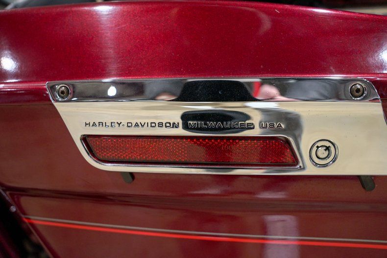 Finished in a striking red metallic paint with custom painted layers over top as well as chrome accents including the forks, wheels, headlight guards (with custom Harley badging), rider floorboards, engine covers/casing, mirrors, front fender, and engine guard, this Electric Glide is hard to miss.