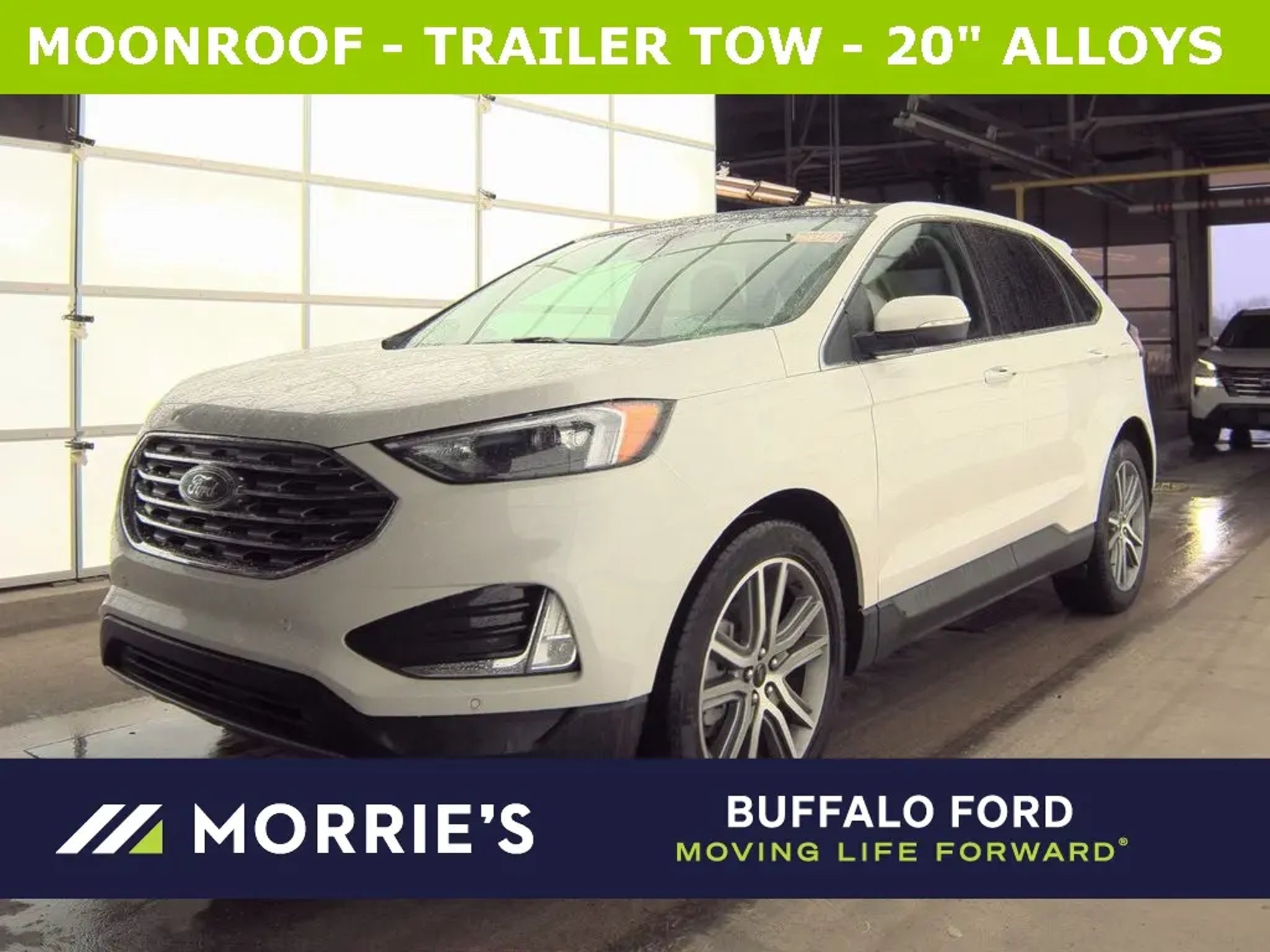 2023 FORD EDGE TITANIUM - 2.0L ECOBOOST ENGINE - 8-SPEED AUTO TRANSMISSION - ALL-WHEEL DRIVE KEY FEATURES: PERFORMANCE: TWIN-SCROLL 2.0L ECOBOOST, 8-SPEED AUTO TRANSMISSION EXTERIOR: STAR WHITE, 245/50R20 A/S BSW TIRES, 20 BRT MCH ALM WHL W/ PTD PKT, PANORAMIC VISTA ROOF INTERIOR: CERAMIC ACTIVEX TRIMMED SEATS, HEATED 10-WAY POWER DRIVER W/ MEMORY & 6-WAY POWER PASSENGER TECHNOLOGY: SYNC 4A W/ 12 SCREEN, B&O SOUND SYSTEM 12 SPKR EXTRAS: CLASS II TRAILER TOW PACKAGE, CARGO ACCESSORY PACKAGE EQUIPMENT GROUP 300A - STAR WHITE - 245/50R20 A/S BSW TIRES - CARGO ACCESSORY PACKAGE (CARGO MAT, REAR BUMPER PROTECTOR, RETRACTABLE CARGO AREA COVER) - TITANIUM SUN & STYLE - DETROIT - FLR LINERS FRT/RR W/O CARPET - 50 STATE EMISSIONS - PANORAMIC VISTA ROOF - MINI SPARE WHL/TIRE - CLASS II TRAILER TOW PACKAGE - 20 BRT MCH ALM WHL W/ PTD PKT STANDARD EQUIPMENT: EXTERIOR: - BELTLINE MOLDING - BRIGHT - EASY FUEL CAPLESS FILLER - EXHAUST TIPS - STAINLESS STEEL - LED FOG LAMPS - CHROME GRILLE - AUTO HIGH BEAM HEADLAMPS - WIPER ACTIVATED HEADLAMPS - LED HEADLAMPS W/ DARK BEZEL - HANDS-FREE LIFTGATE - HEATED/POWER GLASS MIRRORS W/ LED SIG & APPROACH LAMP & MEMORY - PRIVACY GLASS - REAR DOORS - RAIN-SENSING WIPERS INTERIOR: - 110V/150W AC POWER OUTLET - 1-TOUCH UP/DOWN DRIVER/PASSENGER WINDOWS - 60/40 EASYFOLD REAR BENCH - AMBIENT LIGHTING - AUTO-DIM REARVIEW MIRROR - DUAL ILLUMINATED VISOR VANITY MIRRORS - DUAL-ZONE ELECTRONIC AUTO CLIMATE CONTROL - HEATED LEATHER WRAPPED STEERING WHEEL W/ CRUISE & AUDIO CONTROLS - HEATED 10-WAY POWER DRIVER W/ MEMORY & 6-WAY POWER PASSENGER - POWERPOINTS - 12V - ROTARY GEAR SHIFT DIAL - USB A AND C FUNCTIONAL: - B&O SOUND SYSTEM 12 SPKR - FORD CO-PILOT360 - FORDPASS CONNECT 4G WI-FI HOTSPOT TELEMATICS MODEM - FORWARD SENSING SYSTEM - INTELLIGENT ACCESS W/ PUSH START - REAR PARKING SENSORS - REAR VIEW CAMERA - REMOTE START SYSTEM - SIRIUSXM W/360L (N/A AK&HI) - SYNC 4A W/ EVR & 12 SCREEN - UNIVERSAL GARAGE DOOR OPENER - WIRELESS CHARGING PAD SAFETY/SECURITY: - ADVANCETRAC WITH RSC - DRIVER/PASSENGER KNEE AIRBAG - DUAL STAGE FRONT AIRBAGS - FRONT SEAT MOUNTED SIDE IMPACT AIRBAGS - SAFETY CANOPY AIRBAGS - INDIVIDUAL TIRE PRESSURE MONITORING - LATCH CHILD SAFETY SYSTEM - PERIMETER ALARM - PERSONAL SAFETY SYSTEM - SOS POST-CRASH ALERT SYSTEM