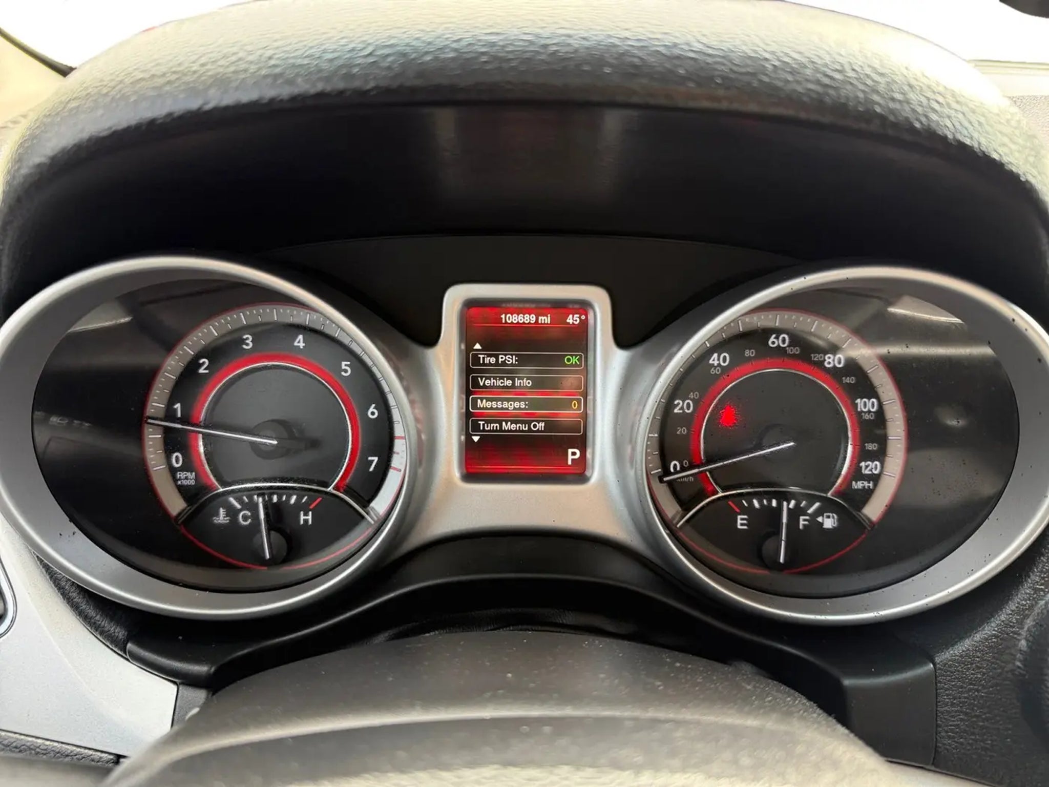 This DGDG Value 2015 Dodge Journey AVP with 108,689 miles was inspected and reconditioned by our service team. Reconditioned items on this Journey include: a fresh oil and filter change, a new engine air filter, a new cabin air filter and new wiper blades. Reliable rides for car shoppers on a budget"”DGDG Value Cars come with a clean title and a vehicle history report*Vehicle Features:* FWD Regular Unleaded I-4 2.4 L Automatic, Flexible Seating Group, Quick Order Package 22D American Value Package, 1-Year SiriusXM Radio Service, 6 Speakers, AM/FM radio, Audio Jack Input for Mobile Devices, CD player, Radio data system, Radio: Uconnect 4.3 AM/FM/CD/MP3, Radio: Uconnect 4.3S AM/FM/CD/MP3, Remote USB Port, SIRIUS Satellite Radio, Air Conditioning, Front dual zone A/C, Rear Air Conditioning w/Heater, Rear window defroster, 3rd Row 50/50 Fold/Reclining Seat, Power steering, Power windows, Remote keyless entry, Steering wheel mounted audio controls, Four wheel independent suspension, Normal Duty Suspension, Speed-sensing steering, Traction control, 4-Wheel Disc Brakes, ABS brakes, Anti-whiplash front head restraints, Dual front impact airbags, Dual front side impact airbags, Front anti-roll bar, Knee airbag, Low tire pressure warning, Occupant sensing airbag, Overhead airbag, Rear anti-roll bar, Brake assist, 4.3 Touch Screen Display, 2nd Row 40/60 Tilt & Slide Seat, Easy Entry® System Seat, Delete Cargo Compartment Cover, Rear window wiper.Disclaimers: Prices do not include tax and license fees, finance charges, $85 dealer document processing charge, $35 electronic filing charge, or any emission testing charge.