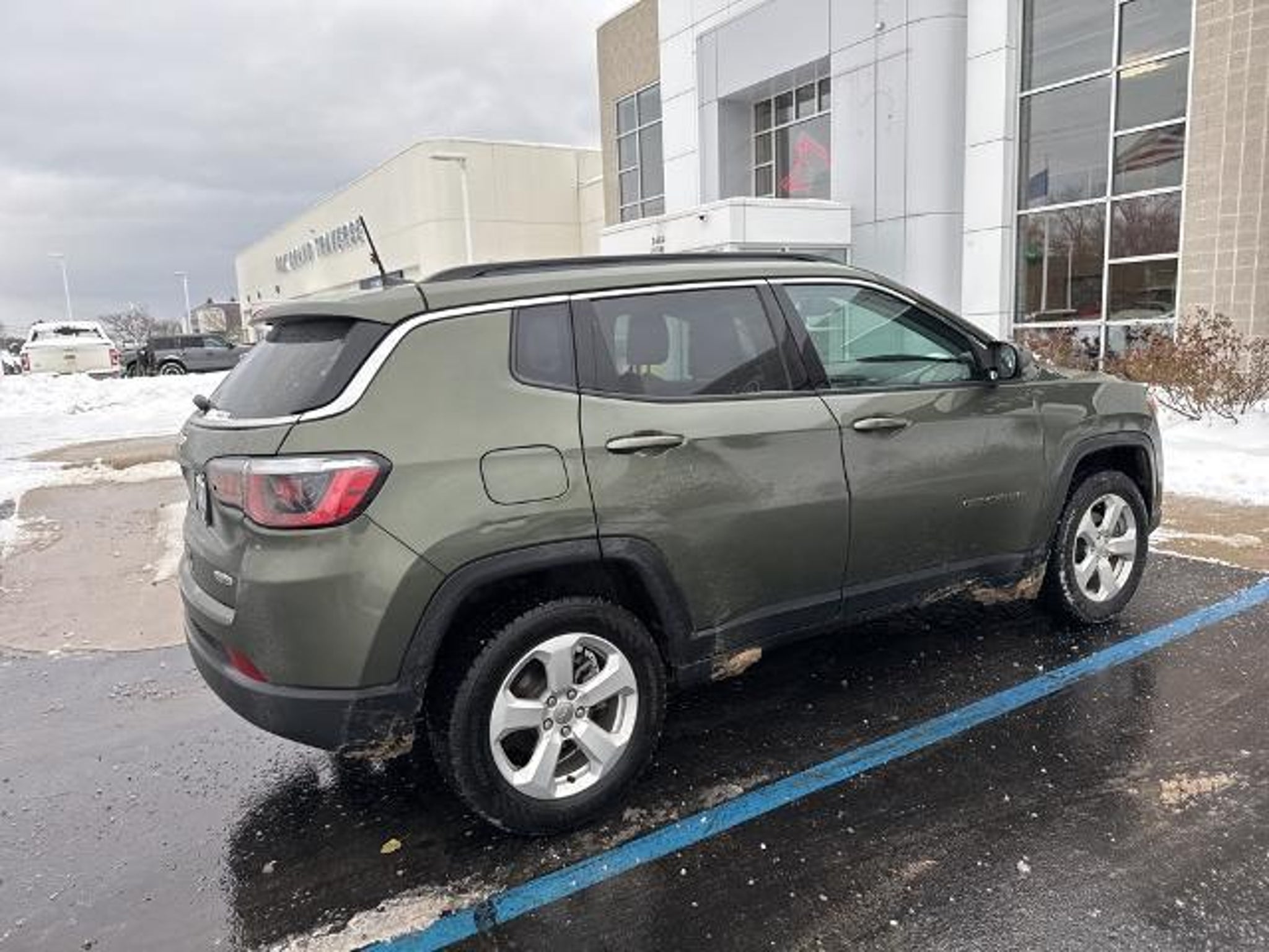 Clean CARFAX. 2020 Jeep Compass Latitude Olive Green Pearlcoat 4WD 4WD, 4-Wheel Disc Brakes, ABS brakes, All-Season Floor Mats, Cold Weather Group, Heated Front Seats, Heated Steering Wheel, Quick Order Package 2GJ, Reversible Carpet/Vinyl Cargo Mat, Wheels: 17 x 7.0 Silver Painted Aluminum, Windshield Wiper De-Icer, 6 Speakers, Air Conditioning, AM/FM radio: SiriusXM, Anti-whiplash front head restraints, Apple CarPlay, Apple CarPlay/Android Auto, Automatic temperature control, Bluetooth Streaming Audio, Brake assist, Bumpers: body-color, Compass, Delay-off headlights, Driver door bin, Driver vanity mirror, Dual front impact airbags, Dual front side impact airbags, Electronic Stability Control, Four wheel independent suspension, Front anti-roll bar, Front Bucket Seats, Front Center Armrest w/Storage, Front dual zone A/C, Front fog lights, Front reading lights, Fully automatic headlights, Google Android Auto, GPS Antenna Input, Heated door mirrors, Illuminated entry, Knee airbag, Low tire pressure warning, Media Hub (USB, AUX), Occupant sensing airbag, Outside temperature display, Overhead airbag, Overhead console, Panic alarm, ParkView Rear Back-Up Camera, Passenger door bin, Passenger vanity mirror, Power door mirrors, Power steering, Power windows, Premium Cloth/Vinyl Bucket Seats, Radio: Uconnect 4 w/7 Display, Rear anti-roll bar, Rear seat center armrest, Rear window defroster, Rear window wiper, Remote keyless entry, Roof rack: rails only, Speed control, Split folding rear seat, Spoiler, Steering wheel mounted audio controls, Tachometer, Telescoping steering wheel, Tilt steering wheel, Traction control, Trip computer, USB Host Flip, Variably intermittent wipers, 4WD, 4-Wheel Disc Brakes, ABS brakes, All-Season Floor Mats, Cold Weather Group, Heated Front Seats, Heated Steering Wheel, Quick Order Package 2GJ, Reversible Carpet/Vinyl Cargo Mat, Wheels: 17 x 7.0 Silver Painted Aluminum, Windshield Wiper De-Icer. 22/30 City/Highway MPG Dont see what you are looking for?? We have hundreds of vehicles available to us, to help you find your match. WE DELIVER! BUY ONLINE-TEXT-EMAIL-CHAT-PHONE AND WE WILL DELIVER YOUR NEXT VEHICLE TO YOUR DOOR! FROM OUR SALES FLOOR TO YOUR DOOR! IT'S THAT EASY!