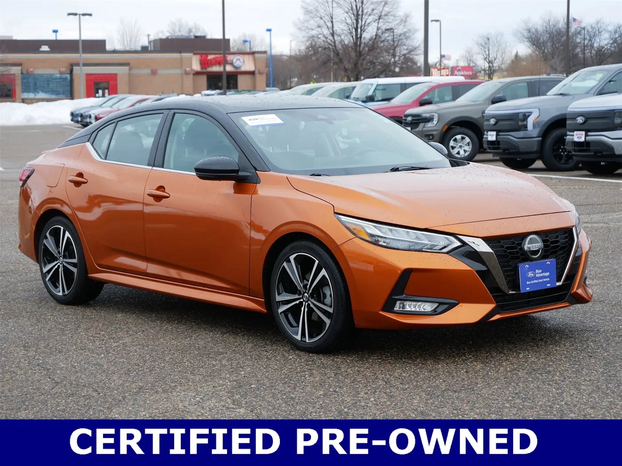 Recent Arrival! --ONE OWNER--, --NO ACCIDENTS - CLEAN VEHICLE HISTORY--, --BLUE CERTIFIED--, Sentra SR, 2.0L DOHC, Monarch Orange Metallic/Super Black, Sport Cloth, Alloy wheels, Electronics Package, Frameless EC Mirror w/Universal Remote, Map Pocket Lighting, NissanConnect featuring Apple CarPlay and Android Auto, Rear Parking Sensors. 2023 Nissan Sentra SR Monarch Orange Metallic/Super Black FWD CVT with Xtronic 2.0L DOHC 28/37 City/Highway MPG WHY BUY FROM US: Freeway Ford in MN has a strong and committed sales staff with many years of experience satisfying our customers needs. Freeway Ford is located in the heart of Bloomington, MN. We are about 3 miles from the Mall Of America. We have been providing Quality Care in our sales and servicing of Ford cars and trucks for over 40 years. Please confirm the accuracy of the included equipment by calling us prior to purchase.