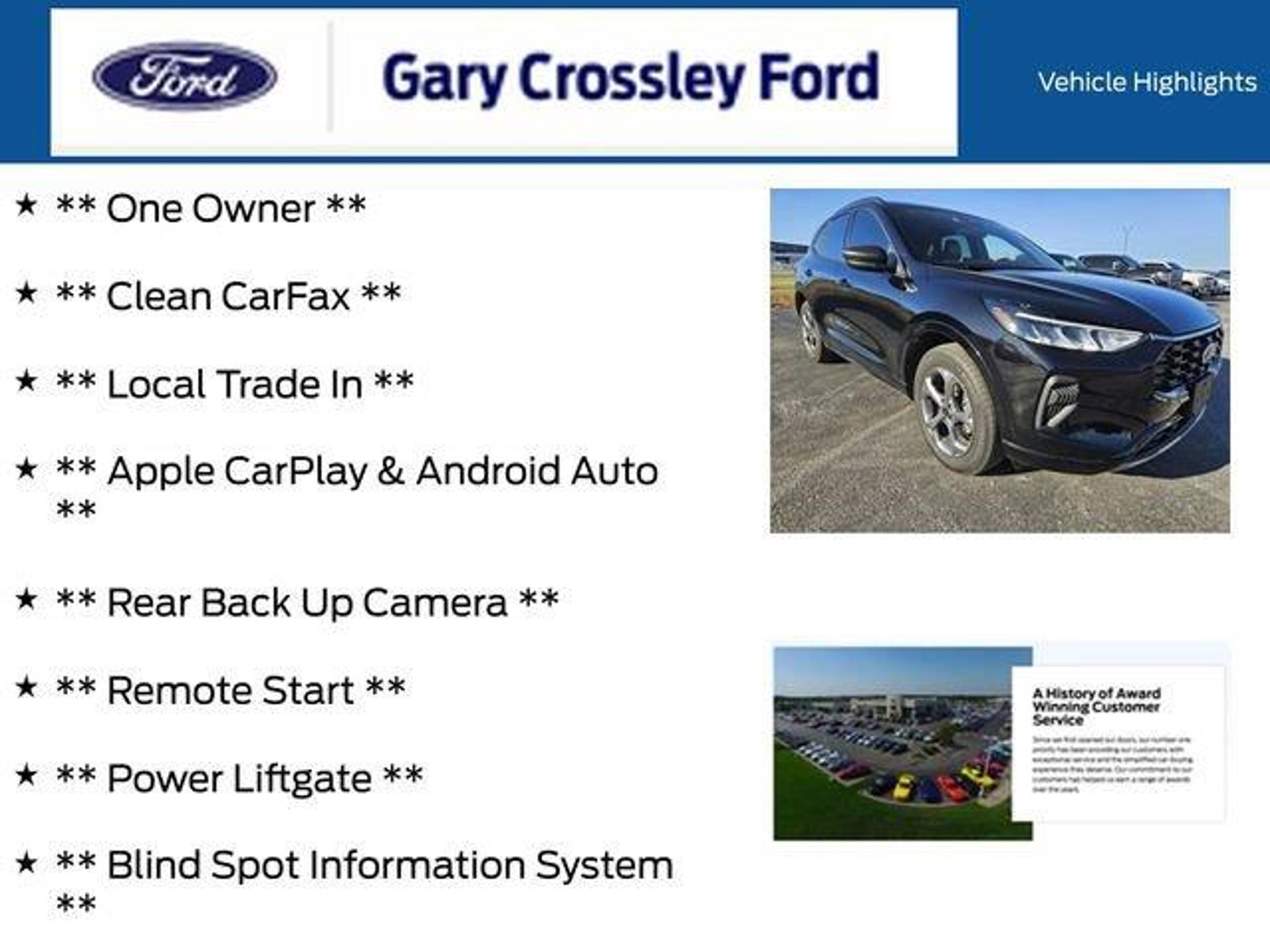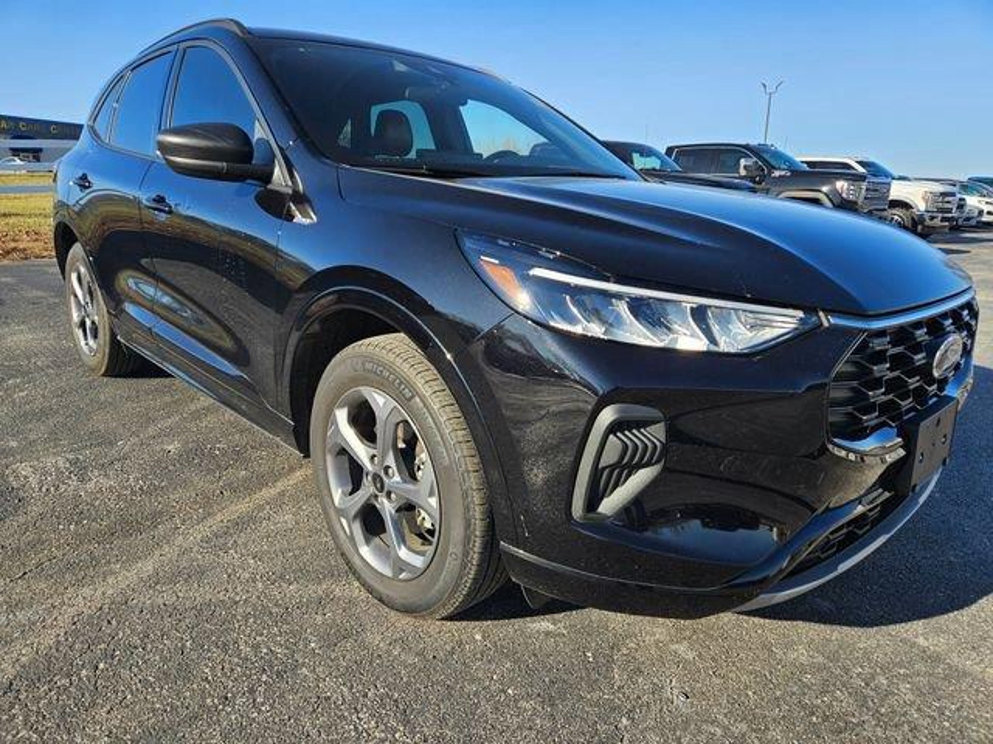 ** One Owner **, ** Clean CarFax **, ** Local Trade In **, ** Apple CarPlay & Android Auto **, ** Rear Back Up Camera **, ** Remote Start **, ** Power Liftgate **, ** Blind Spot Information System **, ** Heated Seats **, Adaptive Cruise Control w/Stop-and-Go, Cold Weather Package, Connected Navigation, Equipment Group 300A, Ford Co-Pilot360 Assist, Heated Front Row Seats, Heated Sideview Mirrors, Heated Steering Wheel, Power Liftgate, Rear Parking Sensor, Rear-View Camera, Remote Starter System, Speed Sign Recognition, SYNC 4 w/Enhanced Voice Recognition, Tech Pack #1. CARFAX One-Owner. Clean CARFAX. Agate Black Metallic 2024 Ford Escape ST-Line 1.5L EcoBoost 4D Sport Utility AWD 8-Speed AutomaticRecent Arrival! Odometer is 7860 miles below market average! 26/32 City/Highway MPG