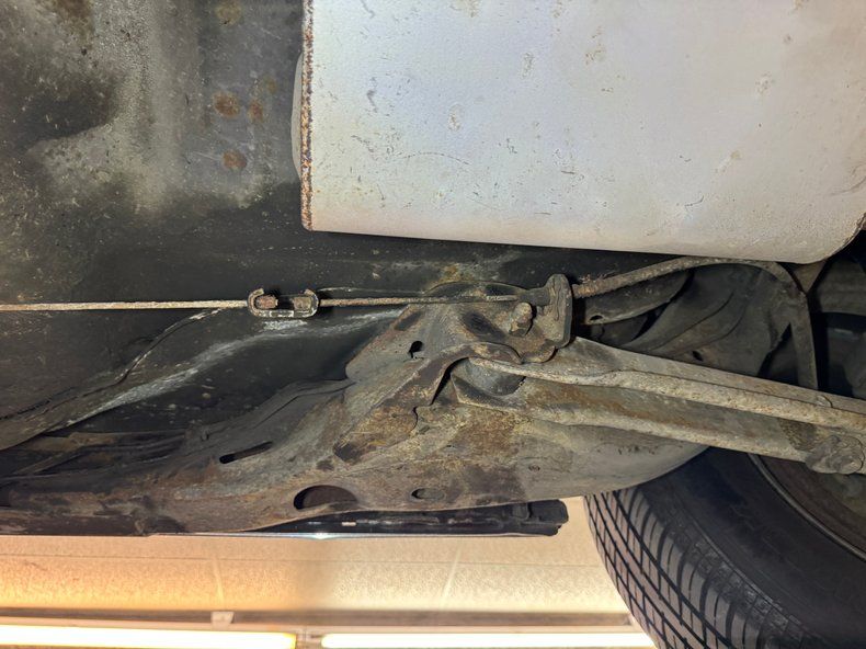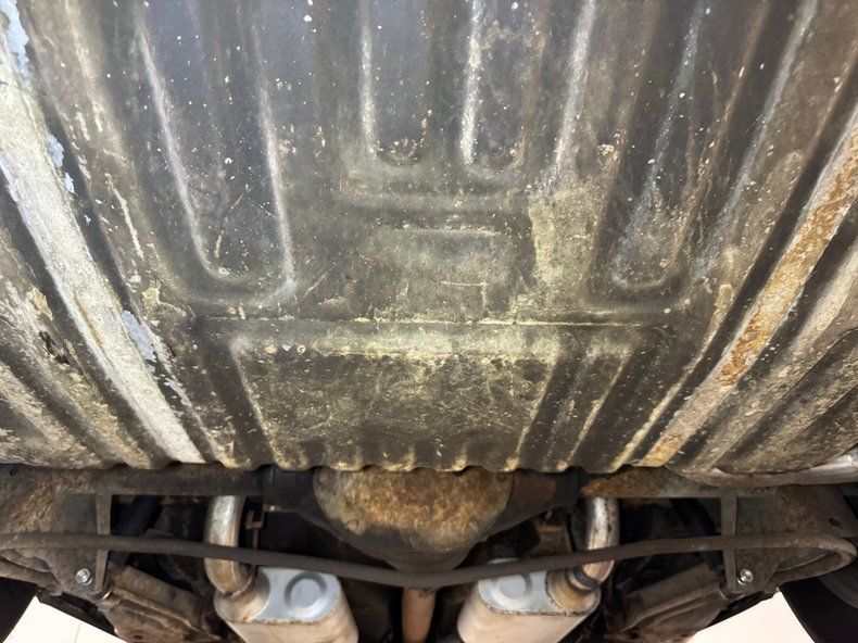 The usual surface rust, road soot, and corrosion on those big Detroit steel pieces underneath but otherwise unremarkable. The dual exhaust is especially clean and runs through FlowMaster mufflers before exiting via chrome tips split out back. There is no catalytic converter on the system. Power brakes are configured as front disc and rear drum and coil springs are employed for suspension with a 4 link accompanying in back.