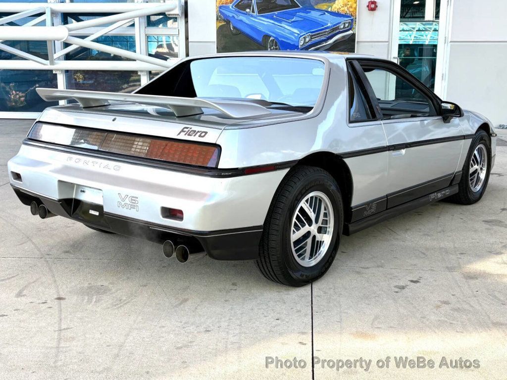 1987 Pontiac Fiero SE Why This Car Is Special The 1987 Pontiac Fiero SE is an iconic testament to American ingenuity, featuring innovative design and engineering unique to its era. Highlighted by its mid-engine layouta rarity in cars produced by American manufacturersthe Fiero SE was crafted not just for optimum balance and handling but also as a stylish sports car that catches the eye. With its aerodynamic design, comprehensive features list, and a distinct pop-up halogen headlight system, this vehicle reflects a fascinating period in automotive history and a passion for driving performance. Features List - 2.8L V6 engine - THM-125 3-speed automatic transmission - 4-wheel power disc brakes - Bright Silver Metallic paint - Coupe body style - Pop-up halogen headlights - Aerodynamic side skirts and fascia - Rear spoiler - Manual sunroof - 14-inch high-tech turbo alloy wheels - 195/70 tires - Black door handles - Enduraflex body panels - Gray cloth reclining bucket seats - Full-length center console - Power windows - Air conditioning - Tilt leather-wrapped steering wheel - AM/FM/cassette stereo - 120-mph speedometer - 6500-rpm tachometer - Oil pressure gauge - Voltmeter - Coolant temperature gauge - Fuel gauge - Dual horns Mechanical At the heart of this Fiero SE lies a robust 2.8L V6 engine, known for its reliability and spirited performance. The engine is paired with a THM-125 3-speed automatic transmission, providing a smooth and responsive driving experience. The car's mechanical design is supported by 4-wheel power disc brakes, ensuring superior stopping power essential for sports driving. The sophisticated suspension setup complements the mid-engine design, offering a balanced drive that's both engaging and controlled. Interior Inside, the Fiero SE boasts a driver-oriented cockpit that blends comfort with functionality. The gray cloth reclining bucket seats provide significant support and comfort for spirited drives or long journeys. The comprehensive dashboard features an assortment of gauges including a 120-mph speedometer and a 6500-rpm tachometer, essential for monitoring performance. The full-length center console, power windows, air conditioning, and a tilt leather-wrapped steering wheel add to the comfort and sporty feel of the interior. The AM/FM/cassette stereo ensures that the nostalgia factor is as tuned as the engine itself. Exterior The exterior of the Fiero SE is where aesthetics meet aerodynamics. Finished in Bright Silver Metallic, the car shines with an enduring appeal that's underscored by its coupe body style and iconic pop-up halogen headlights. Aerodynamic side skirts, a rear spoiler, and a manual sunroof contribute both to its high-speed stability and striking looks. The 14-inch high-tech turbo alloy wheels and the robust 195/70 tires confirm its readiness for both show and performance. Conclusion The 1987 Pontiac Fiero SE is a remarkable blend of style, performance, and historical significance. With its array of features that cater to both aesthetics and driving dynamics, this car is an excellent choice for the enthusiast looking for a distinctive and classic sports car. Owning this vehicle is not just about driving; it's about preserving a piece of automotive history. Interested parties are encouraged to experience this classic firsthand. Please feel free to visit or call us at 941-254-6608 for more details. Disclaimer Information found on the website is presented as given to us by the owner of the car, whether on consignment or from the owner we bought it from. Some Photos, materials for videos, descriptions and other information are provided by the consignor/seller and is deemed reliable, but Skyway Classics does not warranty or guarantee this information. Skyway Classics is not responsible for information that may incorrect or a publishing error. The decision to purchase should be based solely on the buyers personal inspection of the vehicle or by a professional inspection WeBe Autos Specializes in Marketing and Advertising Muscle, Classic, Vintage and Specialty Cars. We offer Professional Photography, HD Movies, and Staging that Sells Cars. Let us showcase and sell your specialty car. Please visit our website for more details. Keep in Touch, Michael Runnalls Specialty Car Marketing & Media WeBe Autos Ltd. Long Island, NY 11780 Michael@WeBeAutos.com www.WeBeAutos.com (O)631-339-0399 (C)516-729-2003 Skype: webeautos (F)631-389-2605 - - - Contact Michael Runnalls at 631-339-0399 or Michael@WeBeAutos.com for more information. -