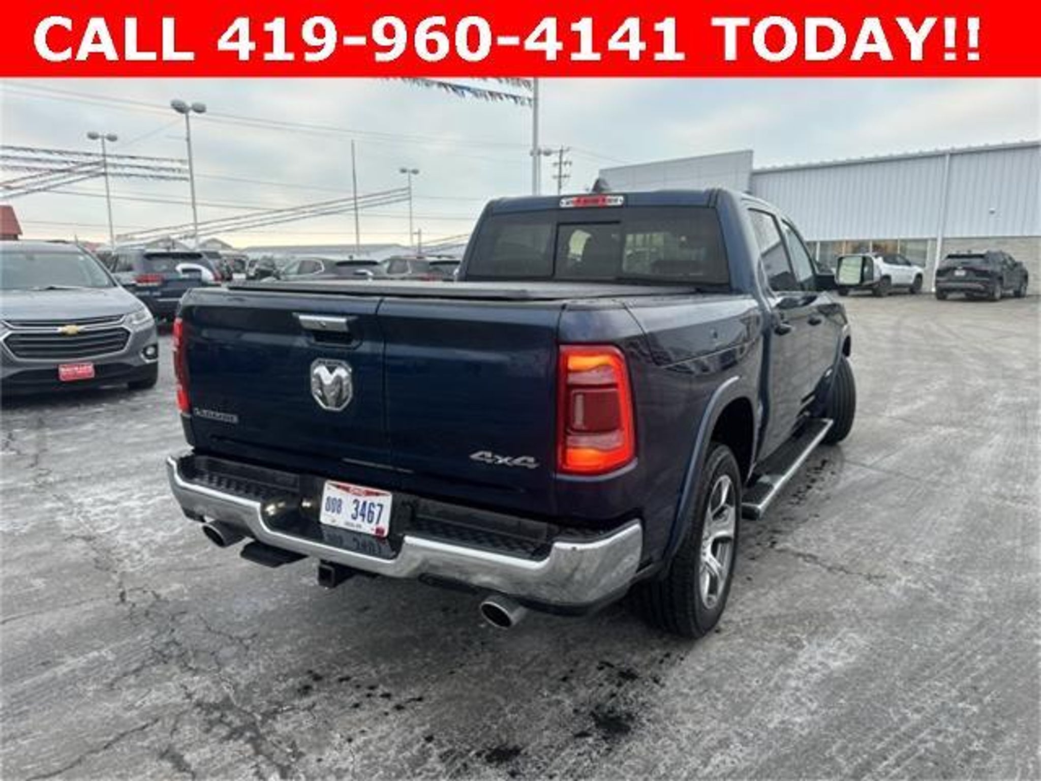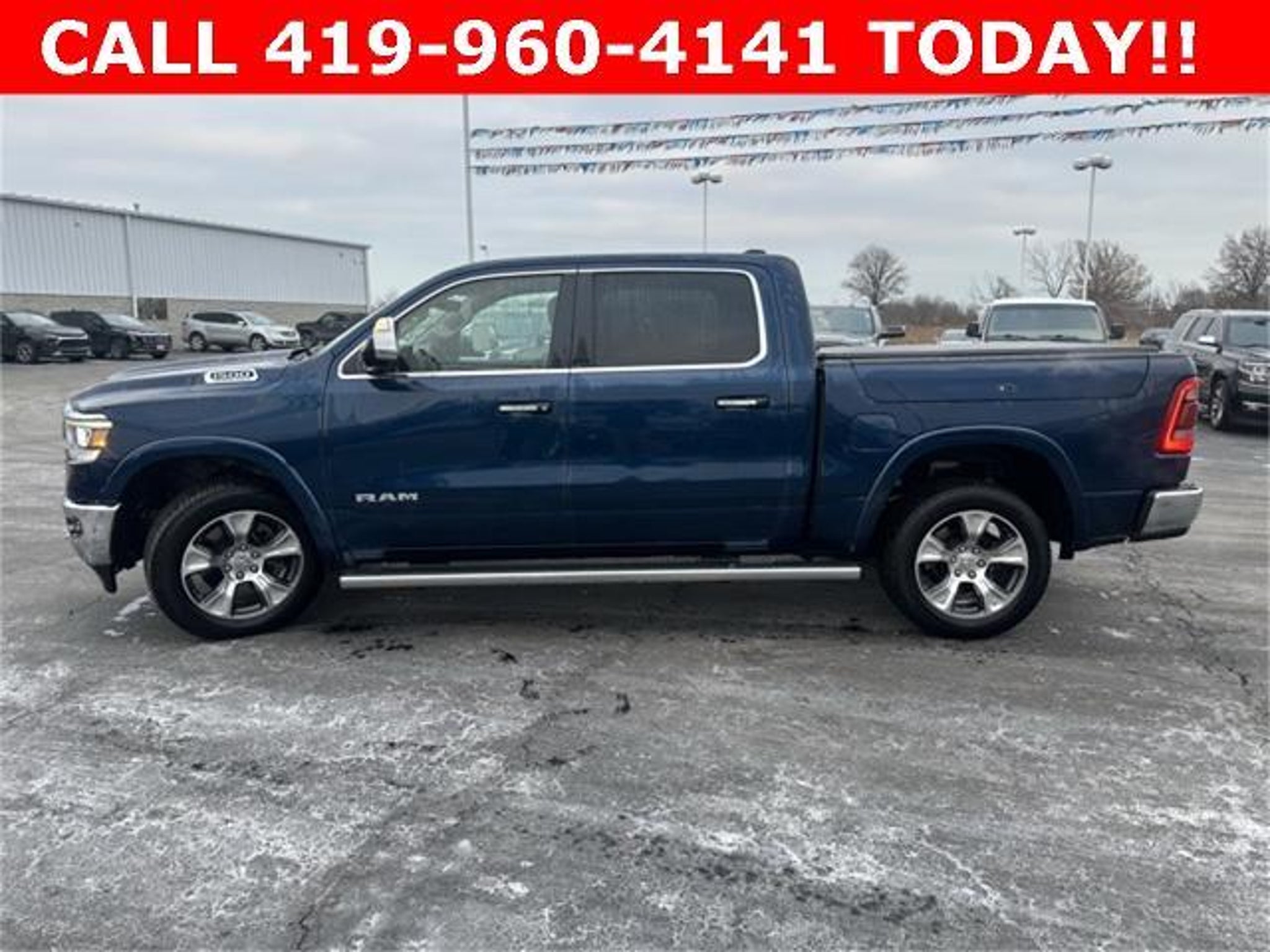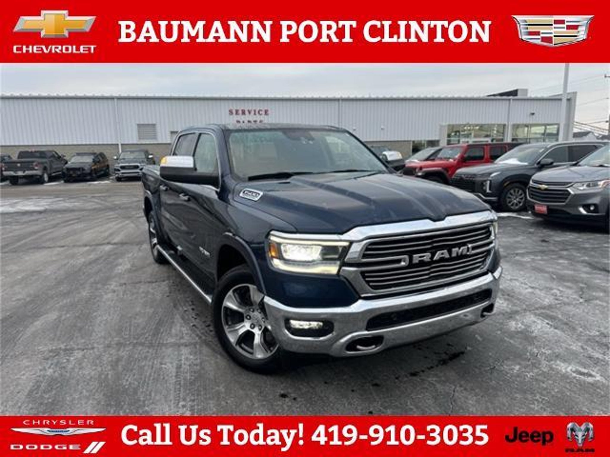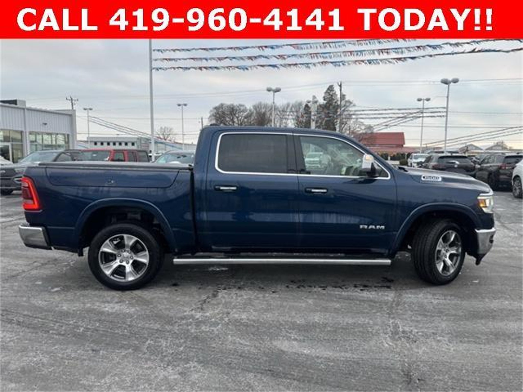 Recent Arrival! Clean CARFAX. Patriot Blue Pearlcoat 2022 Ram 1500 Laramie 4D Crew Cab HEMI 5.7L V8 Multi Displacement VVT 8-Speed Automatic 4WD #1 Seat Foam Cushion, 10 Speakers, 2nd Row In Floor Storage Bins, 3 Rear Seat Head Restraints, 3.21 Rear Axle Ratio, 33 Gallon Fuel Tank, 4 Way Front Headrests, 4-Wheel Disc Brakes, 48V Belt Starter Generator, 4G LTE Wi-Fi Hot Spot, 8.4 Touchscreen Display, ABS brakes, Adjustable pedals, Air Conditioning, All R1 High Radios, All Radio Equipped Vehicles, Alloy wheels, AM/FM radio: SiriusXM, Anti-Spin Differential Rear Axle, Apple CarPlay, Apple CarPlay/Android Auto, Audio memory, Auto High Beam Headlamp Control, Auto-dimming door mirrors, Auto-Dimming Exterior Driver Mirror, Auto-dimming Rear-View mirror, Automatic temperature control, Bed Utility Group, Brake assist, Bright Day Light Opening Moldings, Bumpers: chrome, Chrome Appearance Group, Chrome Exterior Mirrors, Chrome Power-Fold Trailer Tow Mirrors, Chrome Tow Hooks, Compass, Connected Travel & Traffic Services, Connectivity - US/Canada, Convex Wide-Angle Mirror Insert, Delay-off headlights, Disassociated Touchscreen Display, Driver door bin, Driver Seat Memory, Driver vanity mirror, Dual front impact airbags, Dual front side impact airbags, Electronic Stability Control, Exterior 115V AC Outlet, Exterior Mirrors Courtesy Lamps, Exterior Mirrors w/Heating Element, Exterior Mirrors w/Memory, Exterior Mirrors w/Supplemental Signals, Foam Bottle Insert (Door Trim Panel), For Details, Visit DriveUconnect.com, For More Info, Call 800-643-2112, Front anti-roll bar, Front Center Armrest w/Storage, Front dual zone A/C, Front fog lights, Front License Plate Bracket, Front reading lights, Front Seat Back Map Pockets, Front wheel independent suspension, Fully automatic headlights, Garage door transmitter, Global Telematics Box Module (TBM), Google Android Auto, GPS Antenna Input, GPS Navigation, HD Radio, Heated door mirrors, Heated Front Seats, Heated front seats, Heated Second Row Seats, Heated Steering Wheel, Heated steering wheel, Heavy-Duty Engine Cooling, Illuminated entry, Integrated Center Stack Radio, Integrated Voice Command w/Bluetooth, Laramie Level B Equipment Group (DISC), Leather steering wheel, Leather Trim 40/20/40 Bench Seat, Low tire pressure warning, Memory seat, Mirror Clearance/Running Lights, Mirror-Mounted Aux Reverse Lamps, MOPAR 4 Adjustable Cargo Tie-Down Hooks, MOPAR Front & Rear Rubber Floor Mats, Multi-Function Tailgate, Occupant sensing airbag, Outside temperature display, Overhead air