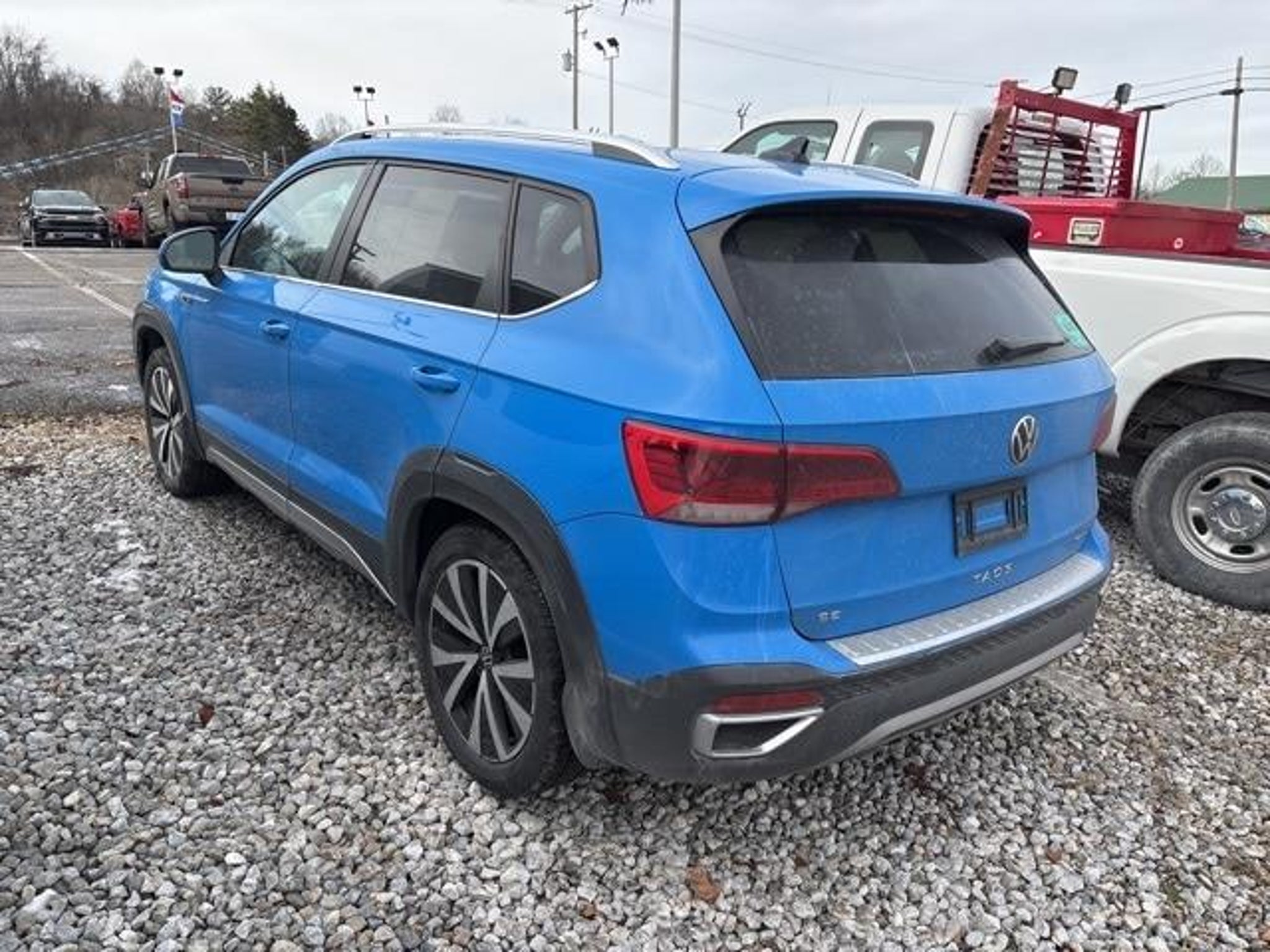 Recent Arrival! Dusk Blue Metallic 2023 Volkswagen Taos 1.5T SE AWD 1.5L I4 Turbocharged DOHC 16V LEV3-SULEV30 158hp 7-Speed DSG Automatic with Tiptronic 4-Wheel Disc Brakes, 5.20 Axle Ratio, 6 Speakers, ABS brakes, Active Blind Spot Monitor, Air Conditioning, AM/FM radio: SiriusXM with 360L, Auto High-beam Headlights, Auto-Dimming Rearview Mirror (SRV), Brake assist, Bumpers: body-color, Carpeted MojoMats (Set of 4), Chrome Bumperdillo Protection Plate for Rear Bumper, CloudTex & Cloth Seating Surfaces, Compass, Delay-off headlights, Driver door bin, Driver vanity mirror, Dual front impact airbags, Dual front side impact airbags, Electronic Stability Control, Emergency communication system: VW Car-Net Safe & Secure 5-year, Exterior Parking Camera Rear, First Aid Kit, Four wheel independent suspension, Front anti-roll bar, Front Bucket Seats, Front Center Armrest, Front reading lights, Front Strut Rear Multi-Link Suspension, Fully automatic headlights, Heated door mirrors, Heated Front Comfort Seats, Heated front seats, Heated steering wheel, Illuminated entry, Leather Shift Knob, Low tire pressure warning, Occupant sensing airbag, Outside temperature display, Overhead airbag, Overhead console, Panic alarm, Panoramic Sunroof Package, Passenger door bin, Passenger vanity mirror, Power door mirrors, Power driver seat, Power steering, Power windows, Radio data system, Radio: MIB3 Composition Media AM/FM/HD, Rain sensing wipers, Rear anti-roll bar, Rear seat center armrest, Rear Sensors Credit, Rear window defroster, Rear window wiper, Remote keyless entry, Security system, Speed control, Speed-sensing steering, Split folding rear seat, Spoiler, Steering wheel mounted audio controls, Tachometer, Telescoping steering wheel, Tilt steering wheel, Traction control, Trip computer, Variably intermittent wipers, Wheels: 18 2-Tone Machined Alloy. 25/32 City/Highway MPG Schedule a test drive today call (740) 439-7767 or email leads@motosnap24.com. Come Experience the Dunning Difference where you will be put First. Our Pre Owned Inventory is PRICED BELOW MARKET VALUE. Dunning Ford Gets it Done!!! With a Guaranteed Credit Approval.... Visit www.Dunningford.com.