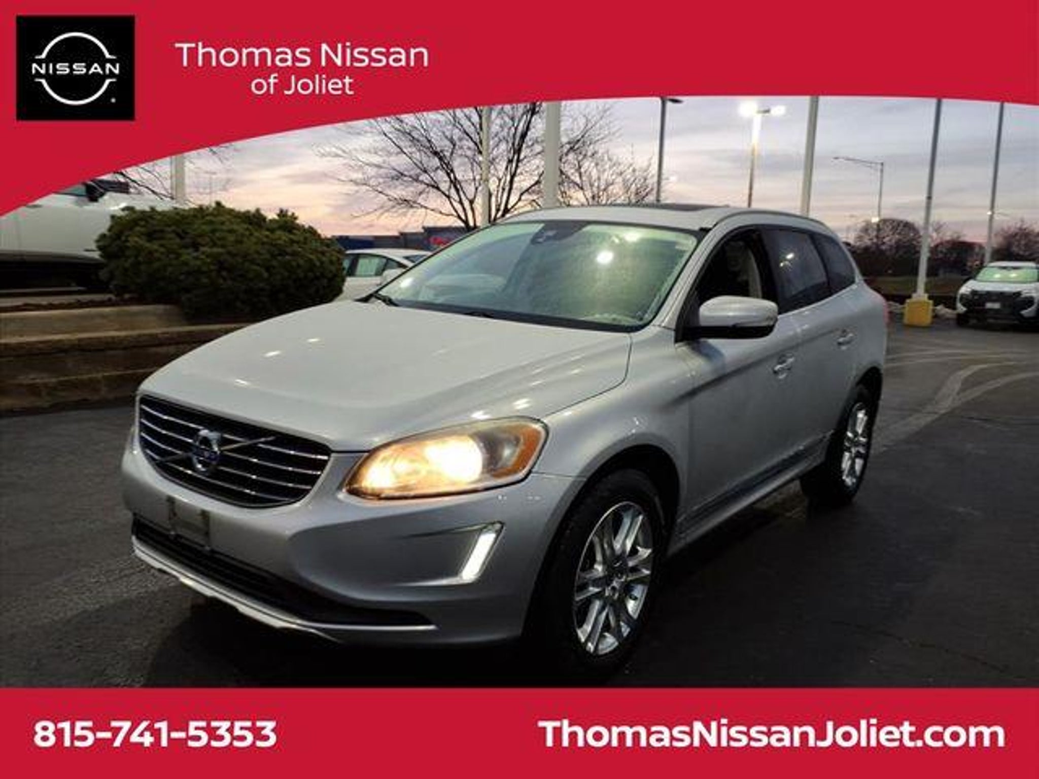 2015 Volvo XC60 T5 Premier If you are looking for a low mileage, well kept economical vehicle, then this is the one for YOU! Silver AWD, 4-Wheel Disc Brakes, 8 Speakers, ABS brakes, Air Conditioning, Alloy wheels, AM/FM radio: SIRIUS, Anti-whiplash front head restraints, Auto-dimming Rear-View mirror, Automatic temperature control, Brake assist, Bumpers: body-color, CD player, Delay-off headlights, Driver door bin, Driver vanity mirror, Dual front impact airbags, Dual front side impact airbags, Electronic Stability Control, Emergency communication system: Volvo On Call, Four wheel independent suspension, Front anti-roll bar, Front Bucket Seats, Front Center Armrest, Front dual zone A/C, Front reading lights, Fully automatic headlights, Heated door mirrors, Illuminated entry, Leather Seating Surfaces, Leather Shift Knob, Low tire pressure warning, Memory seat, Navigation System, Occupant sensing airbag, Outside temperature display, Overhead airbag, Panic alarm, Passenger door bin, Passenger vanity mirror, Power door mirrors, Power driver seat, Power moonroof, Power passenger seat, Power steering, Power windows, Premium audio system: Volvo Sensus, Radio data system, Radio: High Performance AM/FM/CD, Rain sensing wipers, Rear anti-roll bar, Rear fog lights, Rear reading lights, Rear seat center armrest, Rear window defroster, Rear window wiper, Remote keyless entry, Roof rack: rails only, Security system, Sensus Navigation with Mapcare, Speed control, Split folding rear seat, Spoiler, Steering wheel mounted audio controls, Tachometer, Telescoping steering wheel, Tilt steering wheel, Traction control, Trip computer, Turn signal indicator mirrors, Variably intermittent wipers, Wheels: 18 Pan Alloy. Over 200 pre-owned vehicles available! Call us at ( ) 80,000 Warranty on all Nissan Certified vehicles!