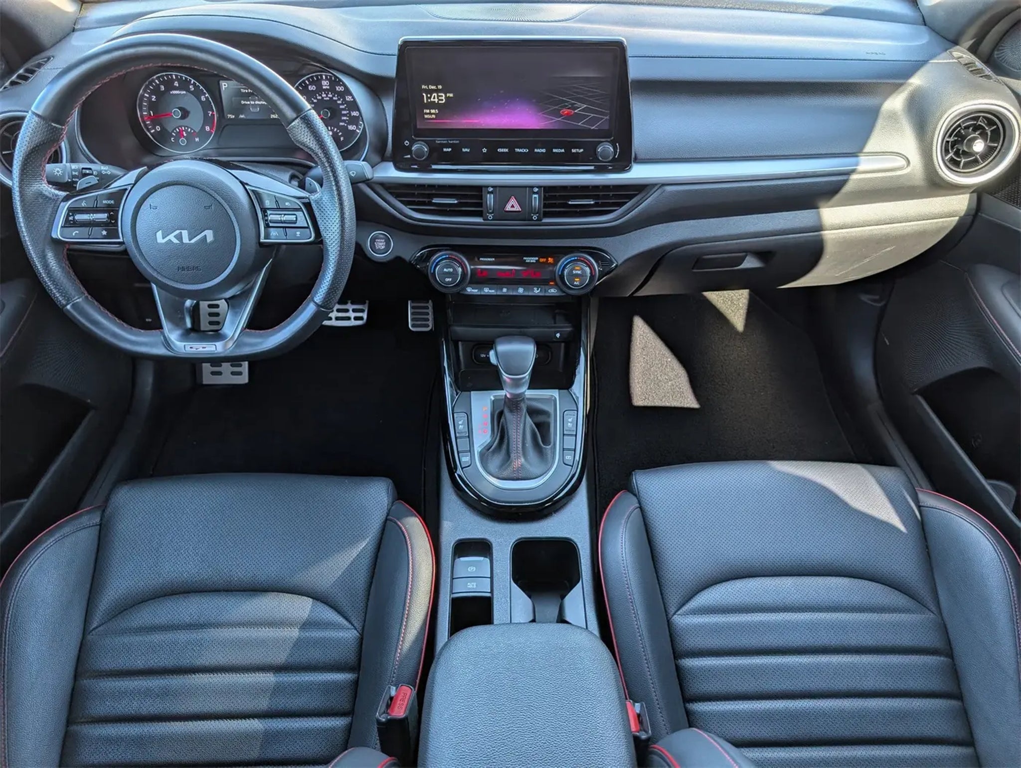 New Price! Clean CARFAX. Currant Red 2023 Kia Forte GT FWD 7-Speed Automatic 1.6L I4 Turbo Navigation System, Bluetooth, SYNC, Sunroof/Moonroof, Alloy Wheels, Power Seat, Passed Dealer Inspection, Backup Camera, Leather Seats, Remote Start, 10-Way Power Driver's Seat, 18 x 7.5J Alloy Wheels, AM/FM radio: SiriusXM, Apple CarPlay & Android Auto, Auto High-beam Headlights, Exterior Parking Camera Rear, GT2 Package, Heated & Ventilated Front Seats, LED Interior Lighting, Navigation System, Parking Distance Warning-Reverse, Power Sunroof, Radio: 10.25 Display Audio, Radio: harman kardon Premium Audio, SynTex Seat Trim. Recent Arrival! Odometer is 1171 miles below market average!