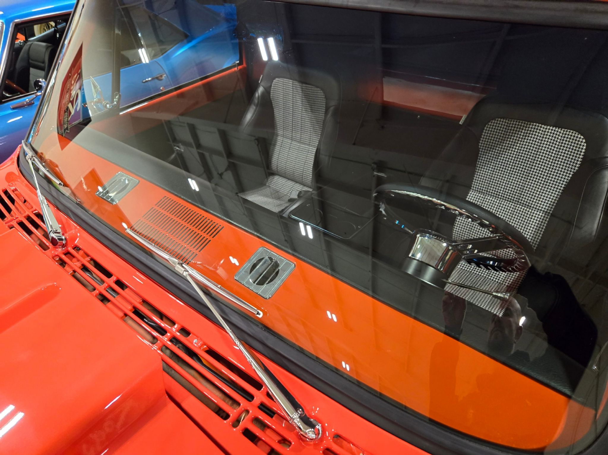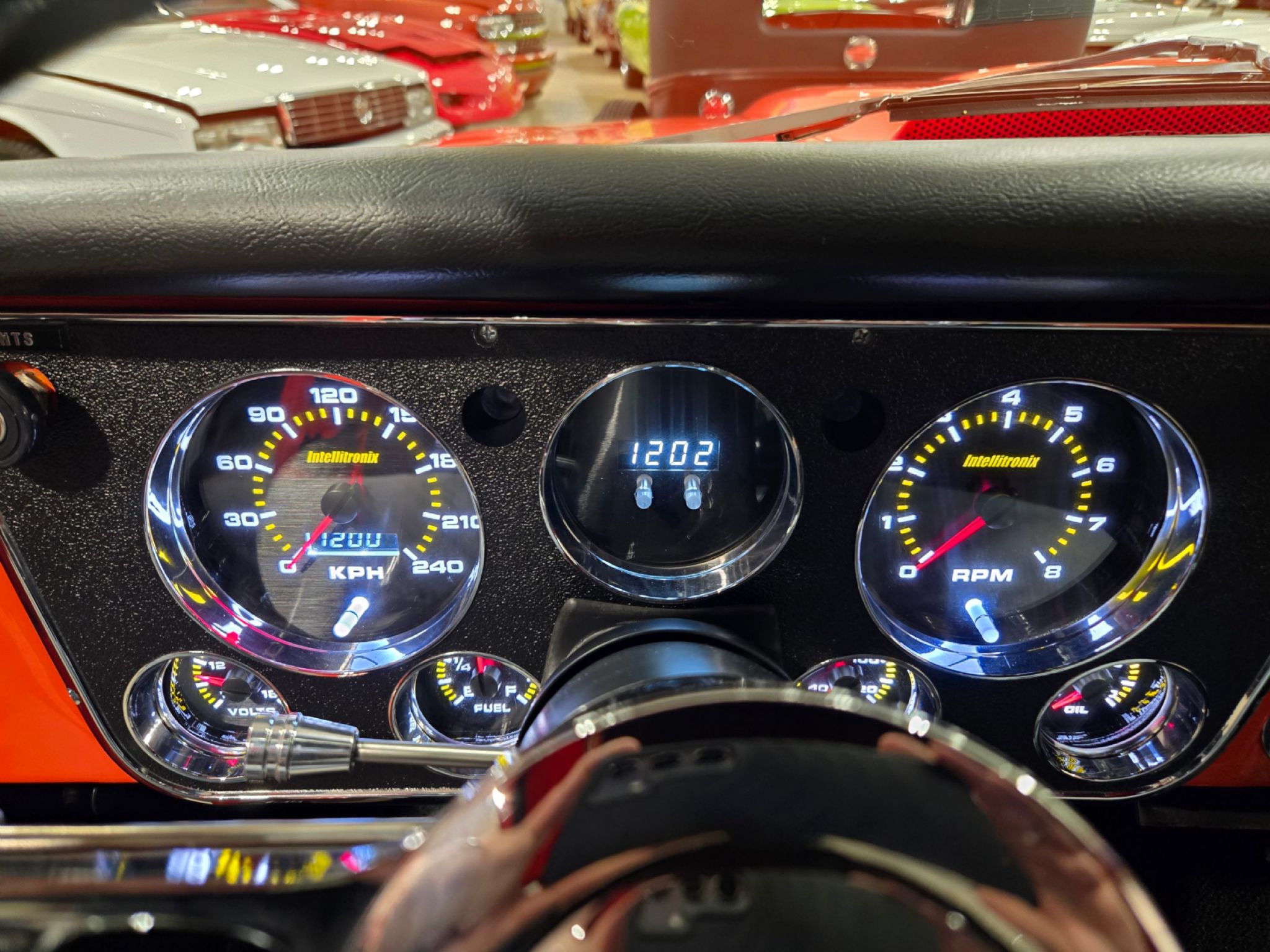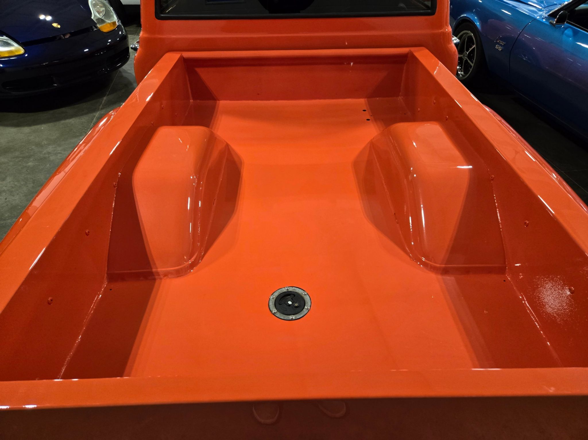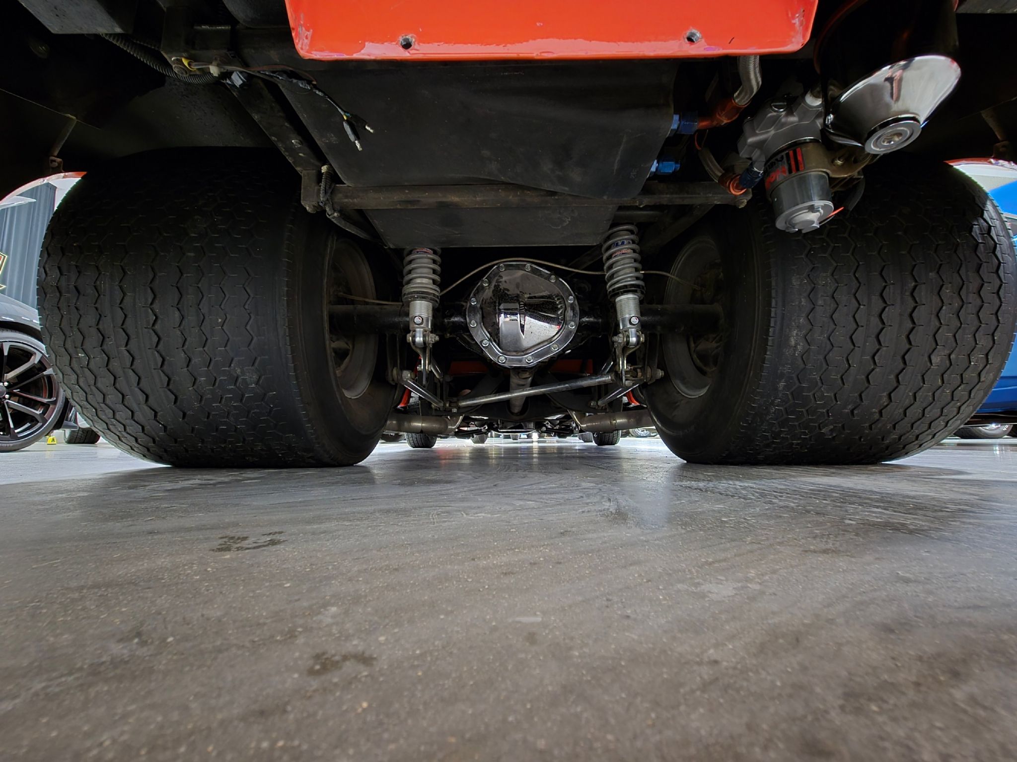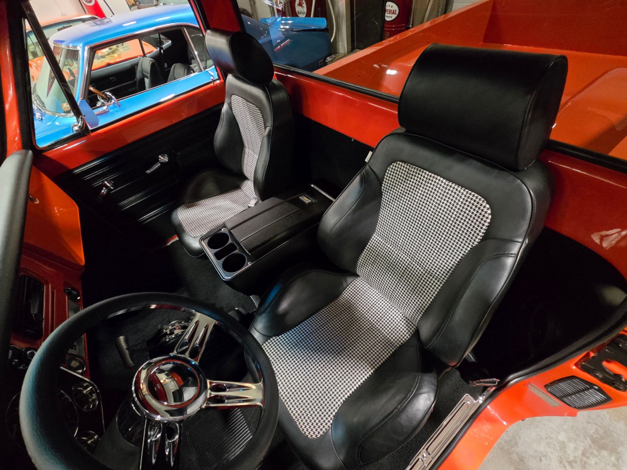 1969 Chevrolet C/10 Pro Street Regular Cab, Step side. Incredible build with high attention to detail, and now with the perfect stance thanks to a little bit of lowering at our shop. No issues with clearance or rubbing, but the perfect look! Starting under the hood lies a warmed up 350 with 10:1 pistons, gear driven cam, dart aluminum heads, Edelbrock intake and carb plus headers and lots of polished chrome and aluminum accessories. Behind that is a TH-400 with shift kit, reverse pattern, manual valve body and trans-brake. The rear end is quite narrow thanks to the huge rear tires! Highly detailed engine bay with high gloss paint on the inner fenders, rad cover and firewall thats been nicely cleaned up. Wiring is all hidden well. No power steering, but power brakes. Electric fans now in place on the aluminum rad. Truck sounds ferocious. Chrome and bright work are fantastic, and the paint is top notch. Pictures dont do it justice as the orange has a lot of pearl and metallic flake in it, so in the sunshine it has a very orange creamsicle look to it. Everything on this truck is restored or new, with nothing left to do. Cowl hood is a nice touch, and the power antenna has been frenched in on the passenger side. The box has a lot of custom work with larger tubs to accommodate wheels/tires, and the rear tailgate has been grafted to the box sides for a seamless rear end. Both the inside and outside of the box feature show quality paint with lots of gloss! No rear bumper and the roll pan in place along with the grafted tailgate feature Corvette signal/brake lights. Dual exhaust exits out the sides in front of each rear wheel. Interior is brand new with new premium door panels, new carpets and leather bolstered Procar bucket seats with houndstooth cloth inserts. These are some of the most comfortable seats youll find in any old truck, and they have custom powder coated tracks. Between them is a restored factory center console and a new shifter in front of that. The chrome trimmed vinyl headliner is new and the carpets finish off the cab very well. Heater controls are stock, but theres a modern stereo in place on the dashboard. The dash cluster features all new Intellitronix electronic gauges with full display. A chrome tilt column and new wheel finish things off perfectly. The bottom of the truck is just impressive as the top. Digital odometer shows 1200 kms since the truck was built. This is one stand out truck that could compete and win at any car show.