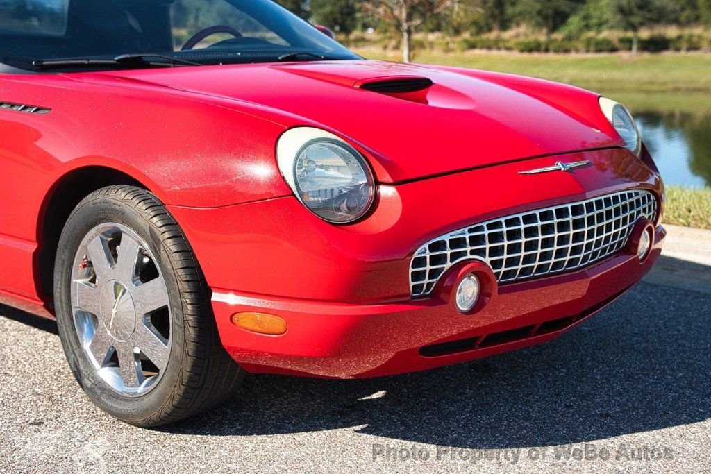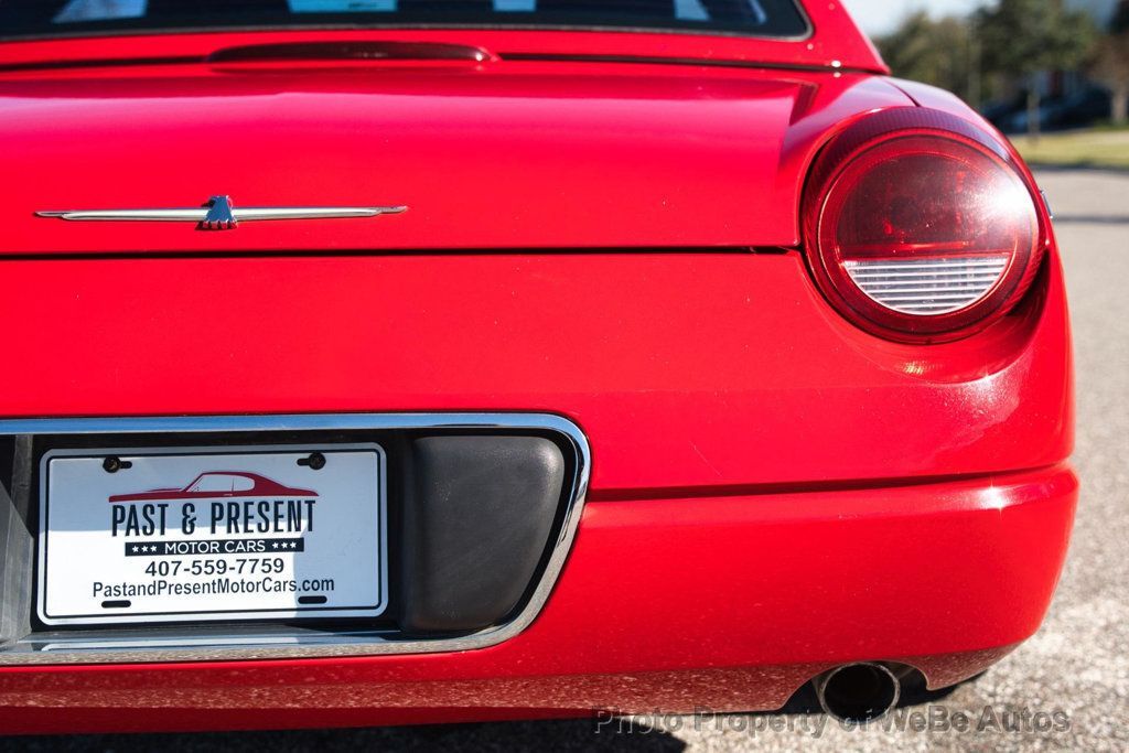 2003 Ford Thunderbird Convertible, V8 Power, One-Owner, Removable Hardtop This 2003 Ford Thunderbird is a well-cared-for, one-owner example of Fords modern interpretation of the classic Thunderbird. Powered by the smooth and responsive 3.9L DOHC V8, this Thunderbird delivers strong performance and refined driving manners, making it equally enjoyable for cruising or longer drives. Finished in a custom red paint with subtle flake, the car has an eye-catching appearance that shines in the sunlight and sets it apart from standard finishes. It features both the removable factory hardtop and the power-operated convertible soft top, offering versatility and open-air enjoyment in any season. The interior is finished in a very nice red and black color combination that complements the exterior well and remains in great overall condition. With 115,785 original miles, this Thunderbird runs great and reflects consistent ownership and proper care over the years. Adding to its appeal, the car includes the original window sticker, a rare and desirable piece of documentation that underscores its one-owner history. This Thunderbird represents an excellent opportunity to own a stylish, V8-powered convertible with classic inspiration, modern comfort, and proven reliability"an ideal choice for enthusiasts looking for a distinctive and enjoyable cruiser. While we do our best to provide the highest quality muscle cars with an honest and reliable description and realize the importance of transparency when selling vehicles. That being said, we have not built, modified, changed or personally owned this vehicle. Whether this vehicle is consigned or owned by Past & Present Motor Cars we do not know the vehicles complete history since new. We want to be clear and try to answer any questions our customers might have prior to purchasing. Additionally, we not only welcome but we encourage 3rd party independent inspections. Please inquire prior to purchase to make sure the advertised vehicle has not already been sold. We list our vehicles on multiple websites and a vehicle can sell at any time. If a customer chooses to purchase sight unseen (many of our customers choose this option) the customer accepts the vehicle AS IS and WHERE IS and understands we cannot address concerns after purchase. For this reason, it's important all concerns are addressed prior to purchase. We make every effort to present accurate and reliable information, but use of this information is voluntary, and should only be deemed reliable after an independent review of its accuracy, completeness, and timeliness. It is the sole responsibility of the customer to verify the existence of options, accessories and the vehicle condition before time of sale. Financing is Available with low rates and Vehicle Shipping is available from our Showroom to your Garage. A Classic Car Warranty is Available for Purchase from a 3rd Party. Please speak to our Sales Associate or Company Representative for more information. Our team is working and available anytime by Phone or Text for your convenience at 407-559-7759. Thank you for your interest! WeBe Autos Specializes in Marketing and Advertising Muscle, Classic, Vintage and Specialty Cars. We offer Professional Photography, HD Movies, and Staging that Sells Cars. Let us showcase and sell your specialty car. Please visit our website for more details. Keep in Touch, Michael Runnalls Specialty Car Marketing & Media WeBe Autos Ltd. Long Island, NY 11780 Michael@WeBeAutos.com www.WeBeAutos.com (O)631-339-0399 (C)516-729-2003 Skype: webeautos (F)631-389-2605 - - Air Conditioning, Climate Control, Dual Zone Climate Control, Cruise Control, Power Steering, Power Windows, Power Mirrors, Leather Steering Wheel, Power Drivers Seat, Power Passenger Seat, Clock, Tachometer, Telescoping Steering Wheel, Steering Wheel Radio Controls, Driver Airbag, Passenger Airbag, Side Airbags, Keyless Entry, Security System, Traction Control, Dynamic Stability, Rear Defogger, Intermittent Wipers, AM/FM, CD Player, CD Changer, Anti-Theft, Carpeted Floor Mats, Center Arm Rest, Center Console, Cup Holders, Vanity Mirrors - Contact Michael Runnalls at 631-339-0399 or Michael@WeBeAutos.com for more information. -