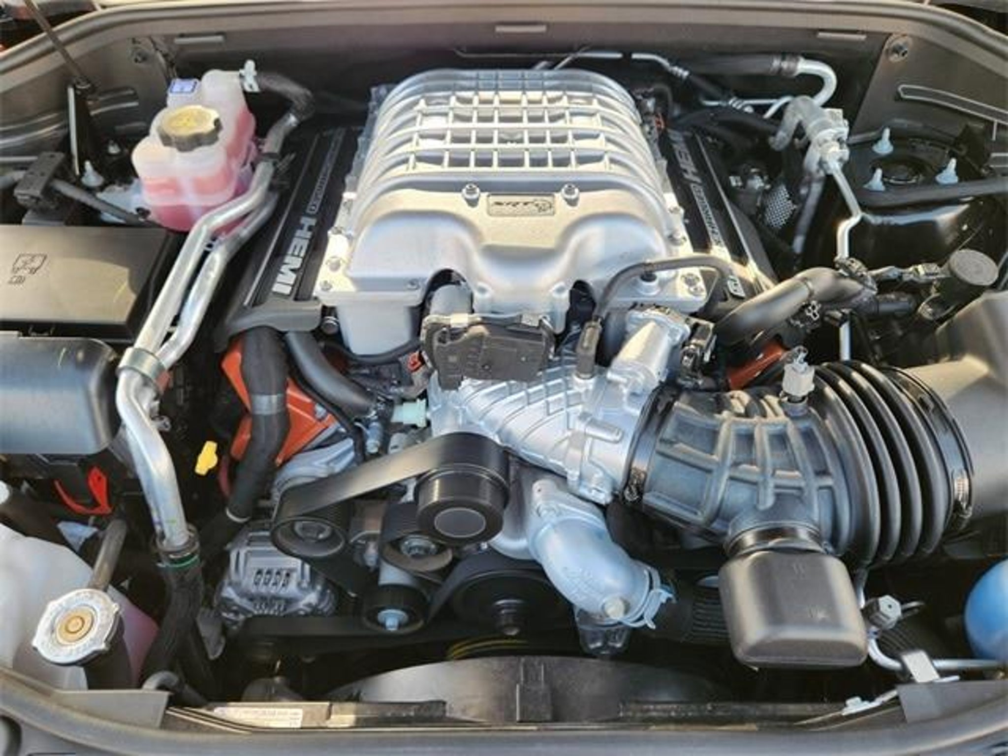 3rd row seats: split-bench, 7 & 4 Pin Wiring Harness, Adaptive suspension, Air Conditioning, Apple CarPlay/Android Auto, Automatic temperature control, Black Package, Blind Spot w/Trailer Detection, Class IV Receiver Hitch, Delay-off headlights, Eclipse Black Exhaust Tips, Four wheel independent suspension, Front dual zone A/C, Fully automatic headlights, Garage door transmitter, Gray Metallic Badges, Heated front seats, Heated rear seats, Heated steering wheel, Navigation System, ParkView Rear Back-Up Camera, Power Liftgate, Quick Order Package 2XV Hellcat, Radio: Uconnect 5 Nav w/10.1 Display, Rain sensing wipers, Rear air conditioning, Satin Black Dodge Tail Lamp Badge, Trailer Brake Control, Trailer Tow Group IV, Ventilated front seats, Wheels: 20 x 10 Lights Out Aluminum, Wheels: 20 x 10 Machine Face w/Dark Pockets, #6 Seat Foam Cushion, 3.70 Rear Axle Ratio, 4-Wheel Disc Brakes, 9 Speakers, ABS brakes, Alloy wheels, AM/FM radio: SiriusXM w/360L, Audio memory, Auto-dimming door mirrors, Auto-dimming Rear-View mirror, Brake assist, Bumpers: body-color, Compass, Driver door bin, Driver vanity mirror, Dual front impact airbags, Dual front side impact airbags, Electronic Stability Control, Emergency communication system: Dodge Connect, Front anti-roll bar, Front Bucket Seats, Front Center Armrest w/Storage, Front reading lights, Gloss Black Exterior Mirrors, Heated door mirrors, Illuminated entry, Knee airbag, Leather Shift Knob, Leather steering wheel, Leather Trimmed Bucket Seats, Low tire pressure warning, Memory seat, Occupant sensing airbag, Outside temperature display, Overhead airbag, Overhead console, Panic alarm, Passenger door bin, Passenger vanity mirror, Power door mirrors, Power driver seat, Power passenger seat, Power steering, Power windows, Radio data system, Rear anti-roll bar, Rear reading lights, Rear window defroster, Rear window wiper, Remote keyless entry, Security system, Speed control, Speed-sensing steering, Speed-Sensitive Wipers, Split folding rear seat, Spoiler, Sport steering wheel, Steering wheel mounted audio controls, Tachometer, Telescoping steering wheel, Tilt steering wheel, Traction control, Trip computer, Turn signal indicator mirrors, Variably intermittent wipers, Voltmeter, 3rd row seats: split-bench, 7 & 4 Pin Wiring Harness, Adaptive suspension, Air Conditioning, Apple CarPlay/Android Auto, Automatic temperature control, Black Package, Blind Spot w/Trailer Detection, Class IV Receiver Hitch, Delay-off headlights, Eclipse Black Exhaust Tips, Four wheel independent