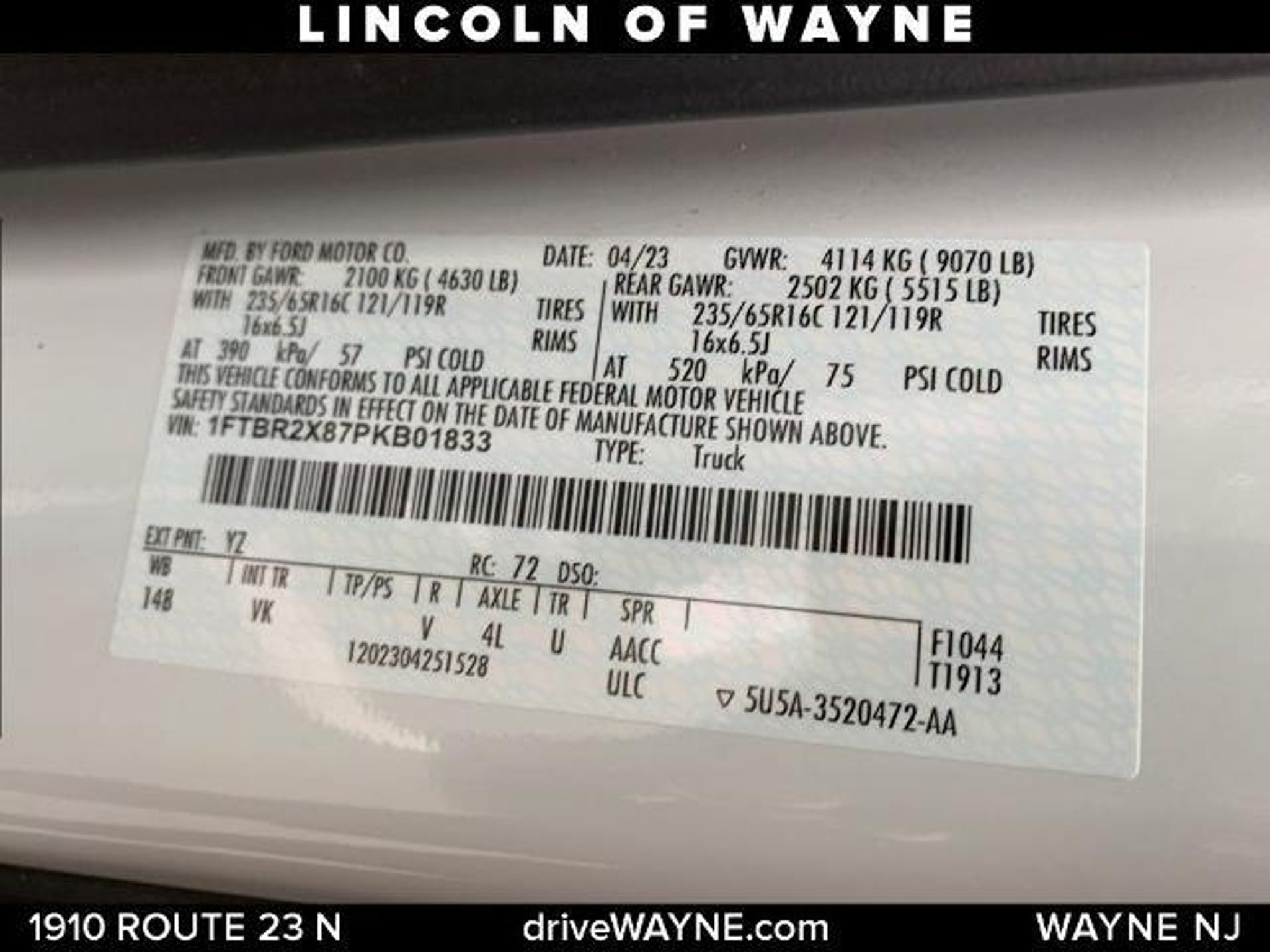 VIN 1FTBR2X87PKB01833