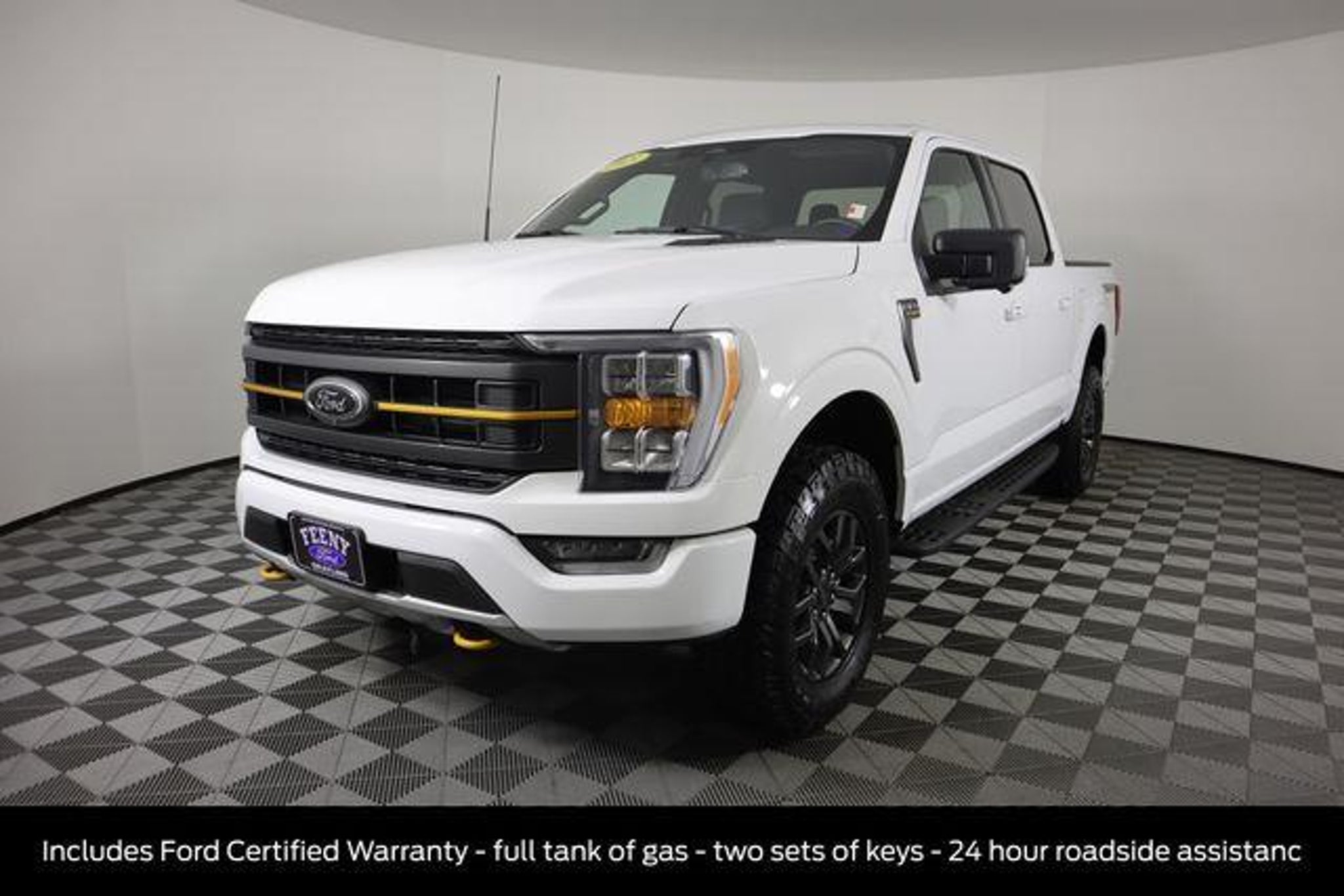 Certified. Oxford White 2023 Ford F-150 Tremor 4WD 10-Speed Automatic 3.5L V6 EcoBoost Ford Certified - Includes 12-month/12,000 mile Comprehensive Limited Warranty Coverage - 7-year/100, Twin Panel Sunroof, Clean Carfax, 4 Wheel Drive / 4WD, Buy with Peace of Mind knowing used vehicle comes with warranty -, Includes Ford Certified Warranty - full tank of gas - two sets of keys - 24 hour roadside assistanc, Bluetooth Connectivity, Ford Pass - Remote Start, Android Auto or Apple Car Play, F-150 Tremor, 4D SuperCrew, 3.5L V6 EcoBoost, 10-Speed Automatic, 4WD, Oxford White, Black w/Unique Sport Cloth 40/Console/40 Front-Seats, Class IV Trailer Hitch Receiver, Electronic Locking w/3.73 Axle Ratio, Equipment Group 401A Standard, Front Bucket Seats, GVWR: 7,000 lbs Payload Package, Heated front seats, Integrated Trailer Brake Controller, Power passenger seat, Twin Panel Moonroof, Wheels: 18 Alloy w/Dark Matte Finish. Recent Arrival! Odometer is 4274 miles below market average! Ford Gold Certified Details: * Transferable Warranty * Vehicle History * Powertrain Limited Warranty: 84 Month/100,000 Mile (whichever comes first) from original in-service date * Warranty Deductible: $100 * Roadside Assistance * 172 Point Inspection * Limited Warranty: 12 Month/12,000 Mile (whichever comes first) after new car warranty expires or from certified purchase date * and 22,000 FordPass Rewards Points to use toward first two maintenance visits Online all the time at Feeny.com.