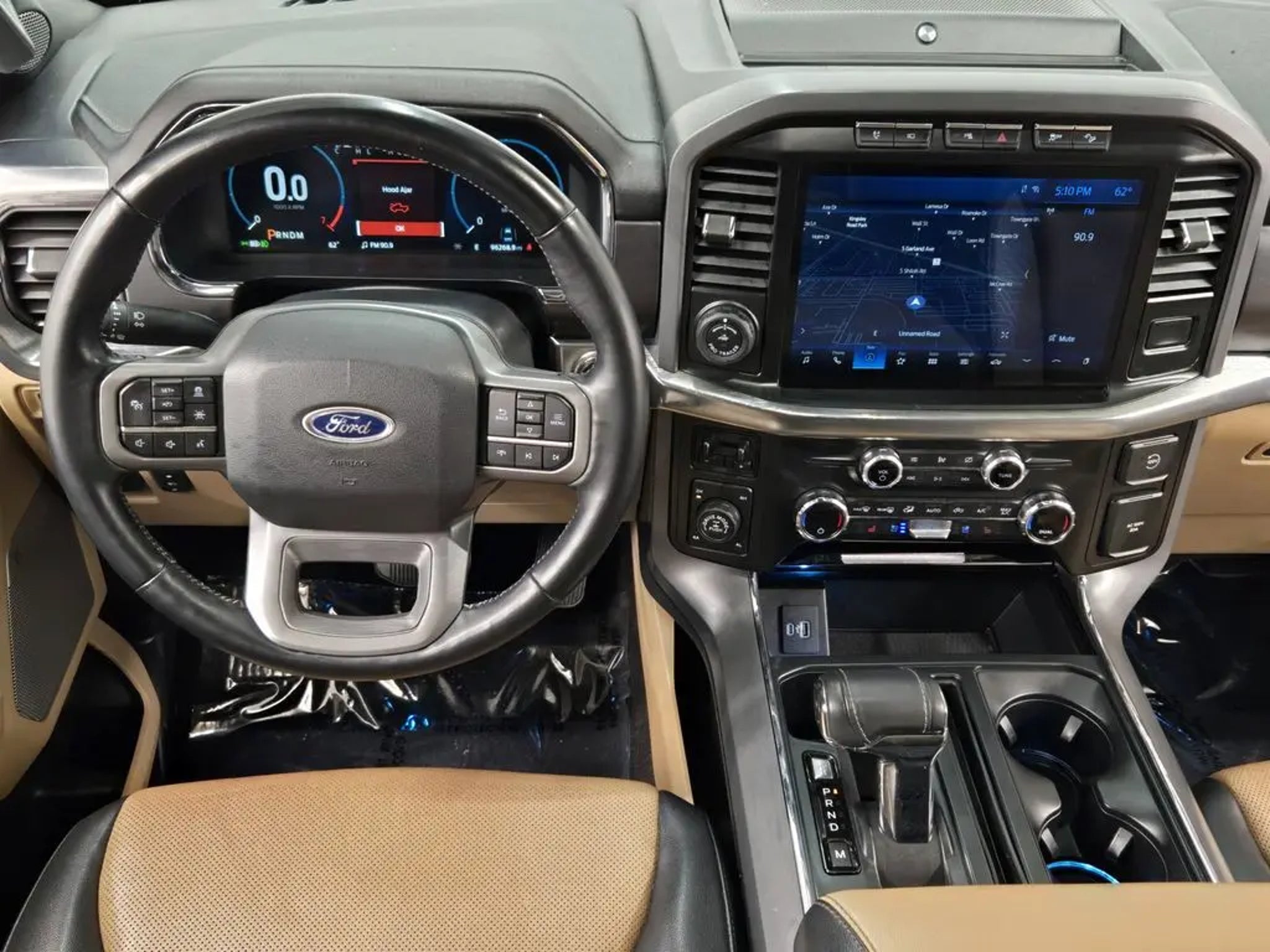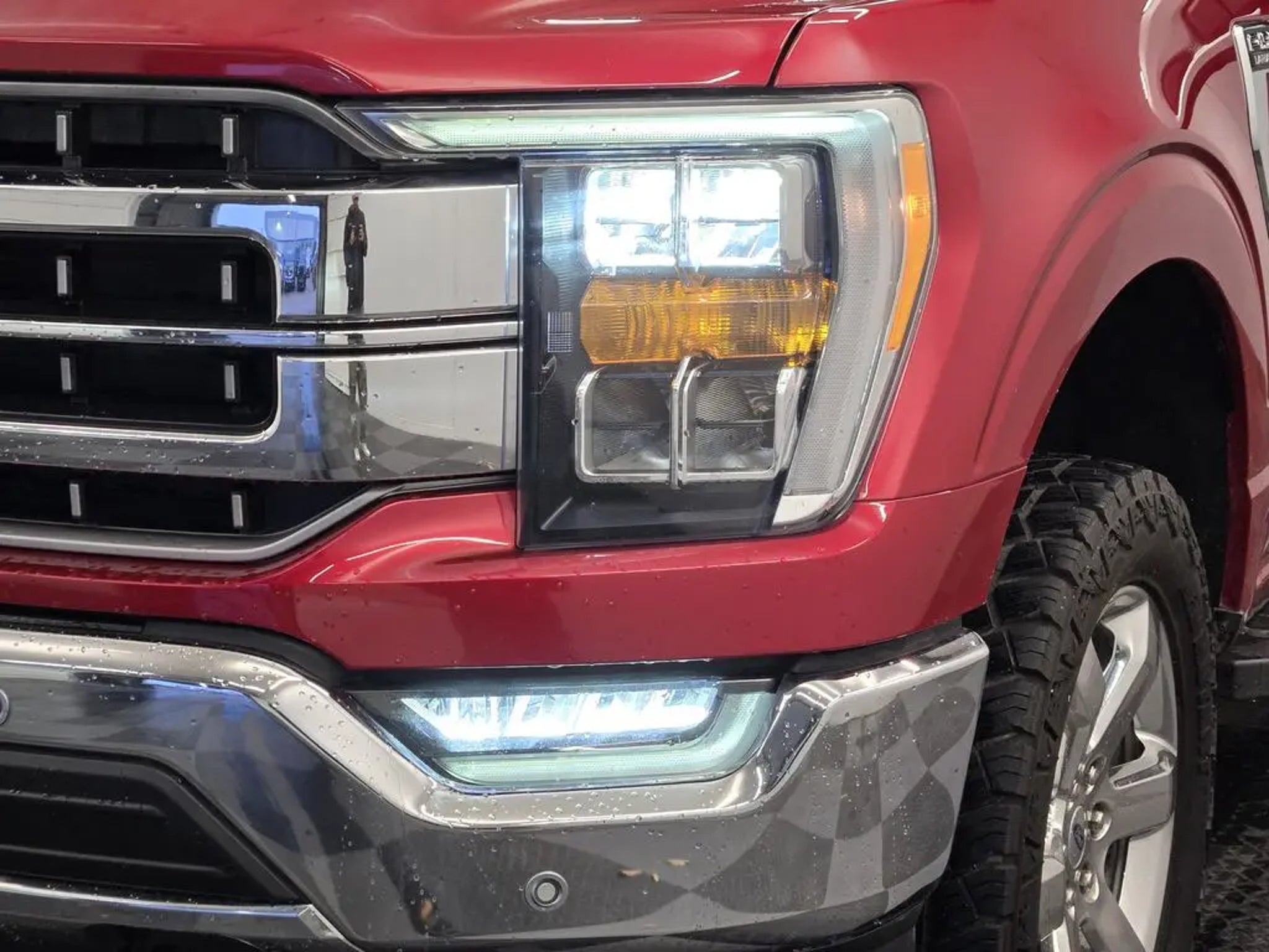Red Metallic 2021 Ford F-150 Lariat 4WD 10-Speed Automatic 3.5L PowerBoost Full-Hybrid V6 3.5L PowerBoost Full-Hybrid V6, 4WD. Awards: * NACTOY 2021 North American Truck of the Year Equipment Group 501A Mid (Radio: B&O Sound System by Bang & Olufsen), Ford Co-Pilot360 Assist 2.0 (Connected Built-In Navigation, Evasive Steering Assist, Intelligent Adaptive Cruise Control w/Stop & Go, Intersection Assist, and Speed Sign Recognition), FX4 Off-Road Package (Tray Style Floor Liner), Lariat Chrome Appearance Package (6 Chrome Running Board, Chrome 2-Bar Grille w/4 Minor Bars, Chrome Door & Tailgate Handles w/Body-Color Bezel, Chrome Single-Tip Exhaust, Chrome Skull Caps on Exterior Mirrors, and Wheels: 18 Chrome-Like PVD), Trailer Tow Package (Class IV Trailer Hitch Receiver, Integrated Trailer Brake Controller, and Pro Trailer Backup Assist), 3.5L PowerBoost Full-Hybrid V6, 4WD, 18 Machined-Aluminum Wheels, 360 Degree Camera, 4-Wheel Disc Brakes, 7 Speakers, ABS brakes, Adjustable pedals, Air Conditioning, Alloy wheels, AM/FM radio: SiriusXM with 360L, Auto High-beam Headlights, Auto-dimming door mirrors, Auto-dimming Rear-View mirror, Automatic temperature control, Brake assist, Bumpers: chrome, Compass, Delay-off headlights, Driver door bin, Driver vanity mirror, Dual front impact airbags, Dual front side impact airbags, Electronic Stability Control, Emergency communication system: SYNC 4 911 Assist, Exterior Parking Camera Rear, Front anti-roll bar, Front Center Armrest w/Storage, Front dual zone A/C, Front fog lights, Front reading lights, Front wheel independent suspension, Fully automatic headlights, Heated door mirrors, Heated front seats, Illuminated entry, Interior Work Surface, Leather-Trimmed 40/20/40 Front Seat, LED Sideview Mirror Spotlights, Low tire pressure warning, Memory seat, Navigation system: Connected Navigation (90-Day Trial), Occupant sensing airbag, Outside temperature display, Overhead airbag, Overhead console, Panic alarm, Passenger door bin, Passenger vanity mirror, Pedal memory, Power door mirrors, Power driver seat, Power passenger seat, Power steering, Power Tailgate, Power windows, Pro Power Onboard - 7.2KW, Radio data system, Radio: AM/FM SiriusXM w/360L, Rear reading lights, Rear seat center armrest, Rear step bumper, Rear window defroster, Remote keyless entry, Security system, Speed control, Speed-sensing steering, Split folding rear seat, Steering wheel mounted audio controls, SYNC 4 w/Enhanced Voice Recognition, Tachometer, Telescoping steering wheel, Tilt steering wheel, Traction control, Trip computer, Turn signal indicator mirrors, Variably intermittent wipers, Ventilated front seats, Voltmeter, and Wheels: 20 Chrome-Like PVD.