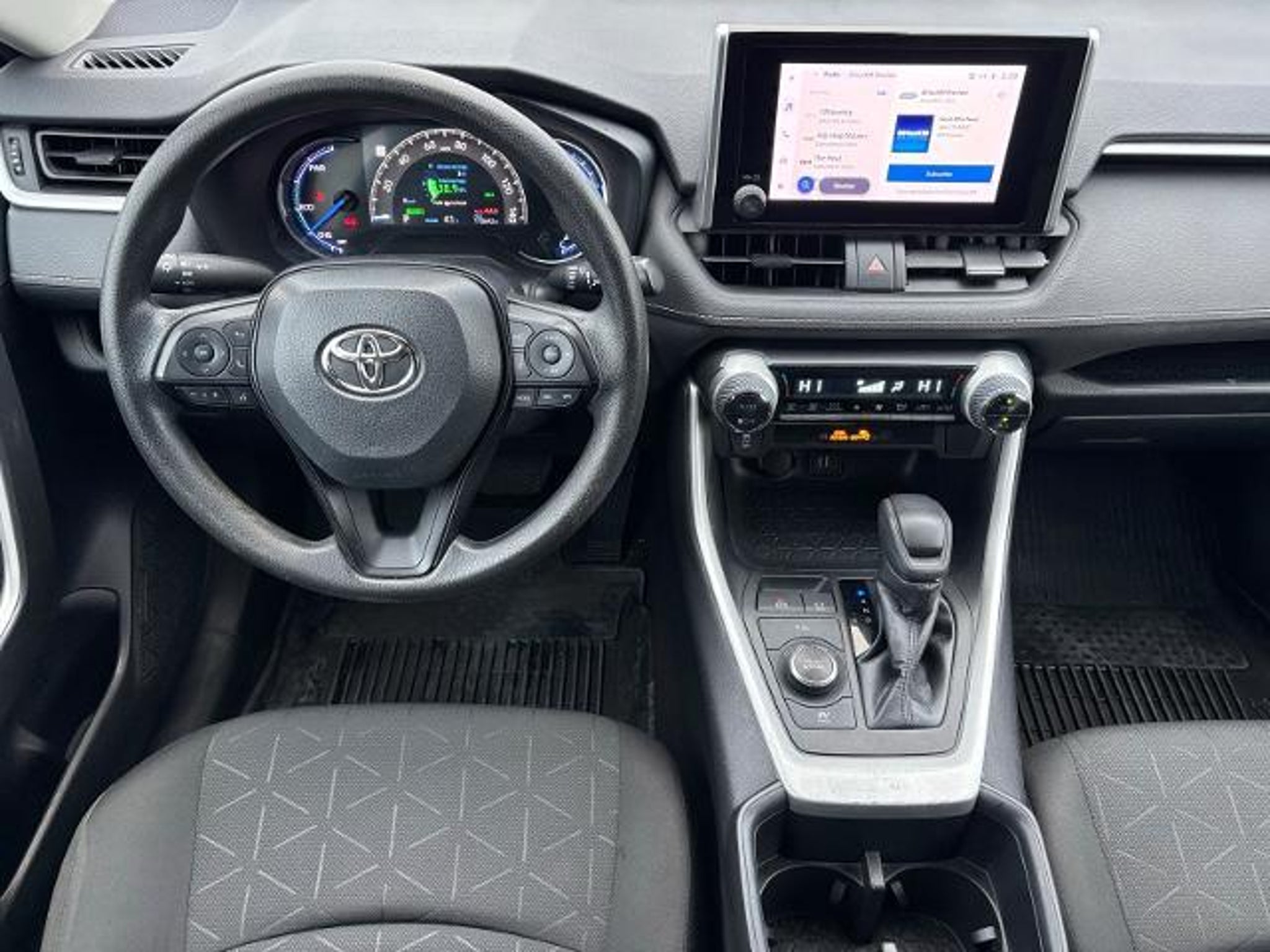 2023 Toyota RAV4 Hybrid XLE RAV4 Hybrid XLE, 4D Sport Utility, 2.5L 4-Cylinder, eCVT, AWD, Black, Black Cloth, 4-Wheel Disc Brakes, 6 Speakers, ABS brakes, Air Conditioning, Alloy wheels, AM/FM radio: SiriusXM, Auto High-beam Headlights, Automatic temperature control, Axle Ratio: TBD, Brake assist, Bumpers: body-color, Cruise Control, Delay-off headlights, Driver door bin, Driver vanity mirror, Dual front impact airbags, Dual front side impact airbags, Electronic Stability Control, Emergency communication system: Safety Connect (1-year trial), Fabric Seat Trim, Four wheel independent suspension, Front anti-roll bar, Front Bucket Seats, Front Center Armrest, Front dual zone A/C, Front reading lights, Front Sport Seats, Fully automatic headlights, Heated door mirrors, Illuminated entry, Knee airbag, Lane Departure Warning System, Low tire pressure warning, Occupant sensing airbag, Outside temperature display, Overhead airbag, Overhead console, Panic alarm, Passenger door bin, Passenger vanity mirror, Power door mirrors, Power driver seat, Power steering, Power windows, Radio data system, Radio: AM/FM/XM Audio System, Rear anti-roll bar, Rear seat center armrest, Rear window defroster, Rear window wiper, Rearview Camera, Remote keyless entry, Speed-sensing steering, Split folding rear seat, Spoiler, Steering wheel mounted audio controls, Telescoping steering wheel, Tilt steering wheel, Traction control, Trip computer, Turn signal indicator mirrors, Variably intermittent wipers, Wheels: 17 x 7.0J Silver Aluminum Alloy, (Must finance with Ford Motor Credit to receive online pricing - see dealer for details.) Proudly, RAV4 Hybrid XLE, 4D Sport Utility, 2.5L 4-Cylinder, eCVT, AWD, Black, Black Cloth. Black eCVT