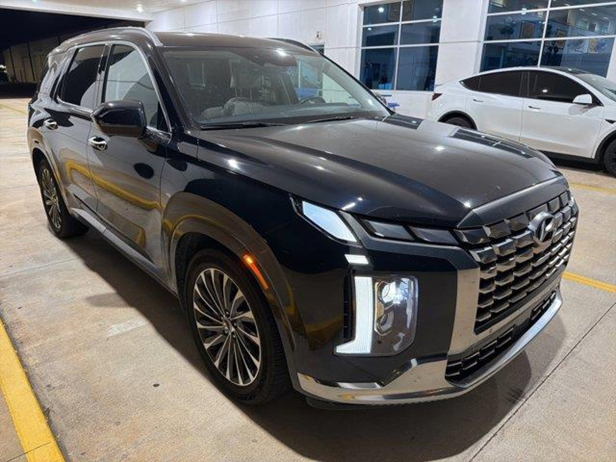 Recent Arrival! CARFAX One-Owner.BALANCE OF FACTORY WARRANTY, 12 Speakers, 3.648 Axle Ratio, 3rd row seats: split-bench, 4-Wheel Disc Brakes, ABS brakes, Air Conditioning, Alloy wheels, AM/FM radio: SiriusXM, Apple CarPlay & Android Auto, Auto High-beam Headlights, Auto-dimming door mirrors, Auto-dimming Rear-View mirror, Auto-leveling suspension, Automatic temperature control, Brake assist, Bumpers: body-color, Cargo Cover/Screen, Carpeted Floor Mats, Compass, Delay-off headlights, Driver door bin, Driver vanity mirror, Dual front impact airbags, Dual front side impact airbags, Electronic Stability Control, Emergency communication system, Exterior Parking Camera Rear, First Aid Kit, Four wheel independent suspension, Front anti-roll bar, Front Bucket Seats, Front Center Armrest, Front dual zone A/C, Front reading lights, Fully automatic headlights, Garage door transmitter: HomeLink, harman/kardon? Speakers, Heads-Up Display, Heated & Ventilated Front Bucket Seats, Heated door mirrors, Heated front seats, Heated rear seats, Heated steering wheel, Illuminated entry, Knee airbag, Low tire pressure warning, Memory seat, Navigation System, Occupant sensing airbag, Option Group 01, Outside temperature display, Overhead airbag, Overhead console, Panic alarm, Passenger door bin, Passenger vanity mirror, Power door mirrors, Power driver seat, Power Liftgate, Power moonroof, Power passenger seat, Power steering, Power windows, Premium Nappa Leather Seat Trim, Radio data system, Radio: AM/FM/MP3 Premium Audio System, Rain sensing wipers, Rear air conditioning, Rear anti-roll bar, Rear audio controls, Rear reading lights, Rear side impact airbag, Rear window defroster, Rear window wiper, Reclining 3rd row seat, Remote keyless entry, Roof Rack Cross Rails, Security system, Speed control, Speed-sensing steering, Split folding rear seat, Spoiler, Steering wheel mounted audio controls, Tachometer, Telescoping steering wheel, Tilt steering wheel, Traction control, Trip computer, Turn signal indicator mirrors, Variably intermittent wipers, Ventilated front seats, Ventilated rear seats, Wheels: 20 x 7.5J Calligraphy Exclusive Alloy.Moonlight Cloud 2024 Hyundai Palisade Calligraphy AWD 8-Speed Automatic with SHIFTRONIC V6* Options in photos may vary . See Dealer for details.**All prices exclude Tax, Tag Fees, $799 Dealer Fee, $214 Electronic Filing Fee.