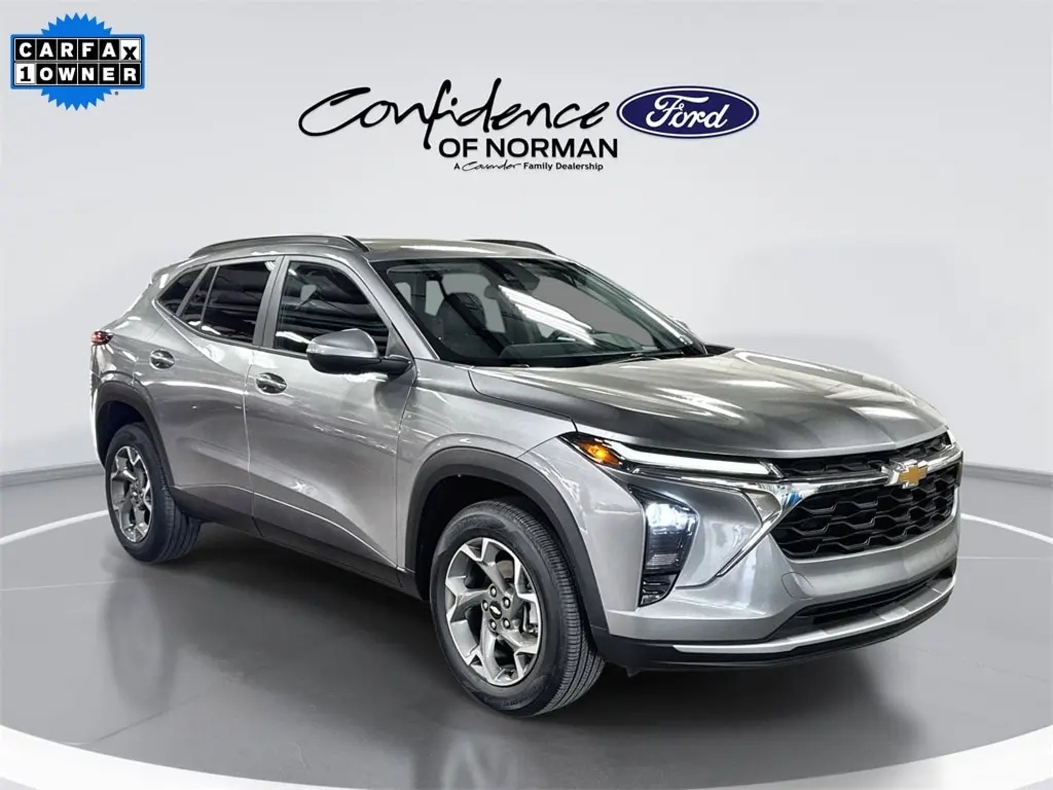 Welcome to Confidence Ford of Norman, a Cavender Auto Family dealership. This vehicle is located at 825 N Interstate Dr, Norman, OK 73069. Here at Cavender, we build relationships based on trust and integrity to exceed your expectations in your ownership experience. Quite simply, we strive to Make Confidence Happen! So stop by and allow us to serve your automotive needs we would love to meet you. Sterling Gray Metallic 2024 Chevrolet Trax LT Confidence and Convenience FWD 1.2L Ecotec Turbo DOHC DI w/VVT 6-Speed Automatic Features: Driver Confidence Package (Adaptive Cruise Control, Lane Change Alert w/Side Blind Zone Alert, Rear Cross-Traffic Alert, and Rear Park Assist), LT Convenience Package (Heated Driver Front Passenger Seats, Heated Power-Adjustable Outside Mirrors, Heated Steering Wheel, Keyless Open, and Wrapped Steering Wheel), Preferred Equipment Group 1LT, 4-Wheel Disc Brakes, 6-Way Manual Driver Seat Adjuster, ABS brakes, Fully automatic headlights, Panic alarm, Premium audio system: Chevrolet Infotainment 3, Remote keyless entry, Wheels: 17' Gray-Painted Machined Aluminum, 2-Way Adjustable Front Head Restraints, 3.50 Final Drive Axle Ratio, 4-Way Manual Front Passenger Seat Adjuster, 6 Speakers, 6-Speaker Audio System Feature, Air Conditioning, Alloy wheels, AM/FM radio: SiriusXM, Auto High-beam Headlights, Automatic temperature control, Brake assist, Bumpers: body-color, Cloth/Evotex Seat Trim, Compass, Delay-off headlights, Driver door bin, Driver vanity mirror, Dual front impact airbags, Dual front side impact airbags, Electronic Stability Control, Emergency communication system: OnStar and Chevrolet connected services capable, Exterior Parking Camera Rear, Front anti-roll bar, Front Bucket Seats, Front Center Armrest, Front reading lights, Front wheel independent suspension, Illuminated entry, Low tire pressure warning, Occupant sensing airbag, Outside temperature display, Overhead airbag, Overhead console, Passenger door bin, Passenger vanity mirror, Power door mirrors, Power steering, Power windows, Radio data system, Radio: Audio System w/AM/FM, Rear Park Assist (DISC), Rear window defroster, Rear window wiper, Security system, SiriusXM, Speed control, Split folding rear seat, Spoiler, Steering wheel mounted audio controls, Tachometer, Telescoping steering wheel, Tilt steering wheel, Traction control, Trip computer, and Variably intermittent wipers. CARFAX One-Owner. Clean CARFAX.