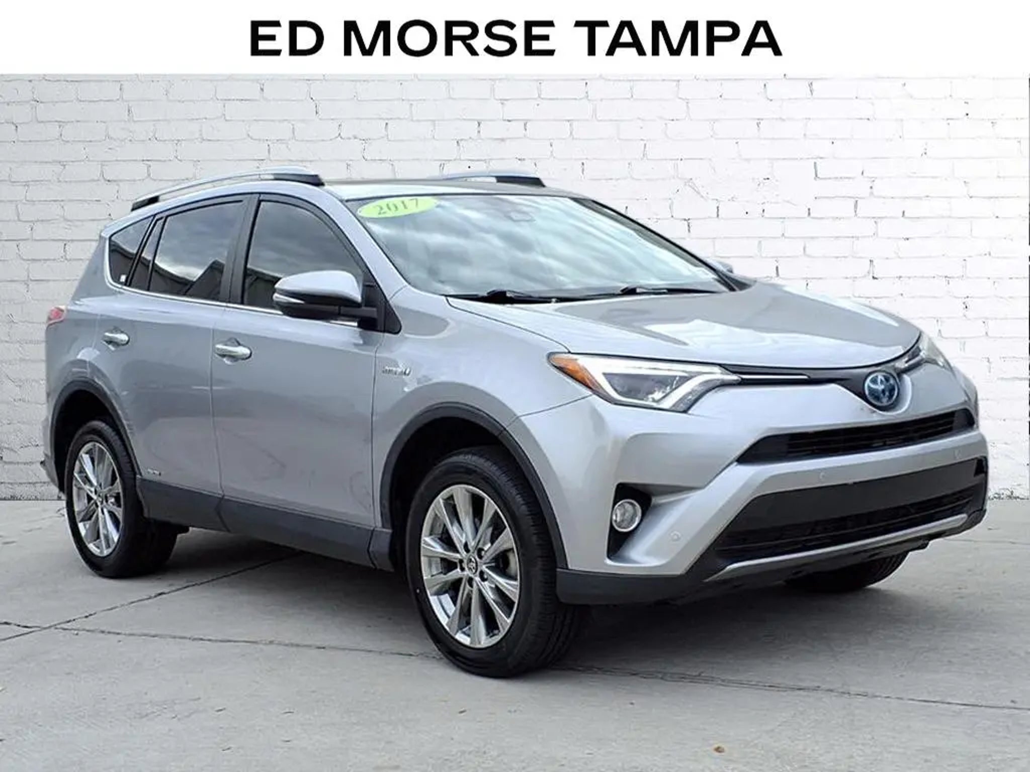 Silver Sky Metallic 2017 Toyota RAV4 Hybrid Limited 4D Sport Utility 2.5L 4-Cylinder AWD Priced below KBB Fair Purchase Price! 34/30 City/Highway MPG**GREAT FINANCE OPTIONS AVAILABLE, **TRADES WELCOME, **COME SEE WHY ED MORSE HAS BEEN EXCEEDING CUSTOMERS EXPECTATIONS FOR OVER 70 YEARS.Awards:* 2017 KBB.com 10 Most Awarded Brands * 2017 KBB.com Best Resale Value AwardsCleaned and Sanitized All advertised prices are plus tax, tag, title, registration, and reconditioning costs. Prices do not include predelivery service charge of $999, electronic registration filing fee of $199.7, or tag agency fee of $85. Prices can expire or change at any time without notice. Advertised prices cannot be used in conjunction with other offers, special APR programs, or available dealer cash back, or other incentives. All vehicles subject to prior sale. Prices do not include dealer installed options.Equipped with 4-Wheel Disc Brakes, 6 Speakers, ABS brakes, Air Conditioning, Alloy wheels, AM/FM radio: SiriusXM, Auto High-beam Headlights, Auto-dimming Rear-View mirror, Automatic temperature control, Axle Ratio: 3.542, Brake assist, Bumpers: body-color, Chrome wheels, Compass, Driver door bin, Driver vanity mirror, Dual front impact airbags, Dual front side impact airbags, Electronic Stability Control, Exterior Parking Camera Rear, Four wheel independent suspension, Front anti-roll bar, Front Bucket Seats, Front Center Armrest, Front dual zone A/C, Front fog lights, Front reading lights, Fully automatic headlights, Garage door transmitter: HomeLink, Heated door mirrors, Heated front seats, Heated Front Sport Seats, Illuminated entry, Knee airbag, Leather Shift Knob, Leather steering wheel, Low tire pressure warning, Memory seat, Navigation System, Occupant sensing airbag, Outside temperature display, Overhead airbag, Overhead console, Panic alarm, Passenger door bin, Passenger vanity mirror, Power door mirrors, Power driver seat, Power Liftgate, Power moonroof, Power steering, Power windows, Radio data system, Radio: Entune Premium Audio with Navigation, Rear anti-roll bar, Rear seat center armrest, Rear window defroster, Rear window wiper, Remote keyless entry, Roof rack, SofTex Seat Trim, Speed control, Speed-sensing steering, Split folding rear seat, Spoiler, Steering wheel mounted audio controls, Telescoping steering wheel, Tilt steering wheel, Traction control, Trip computer, Turn signal indicator mirrors, Variably intermittent wipers