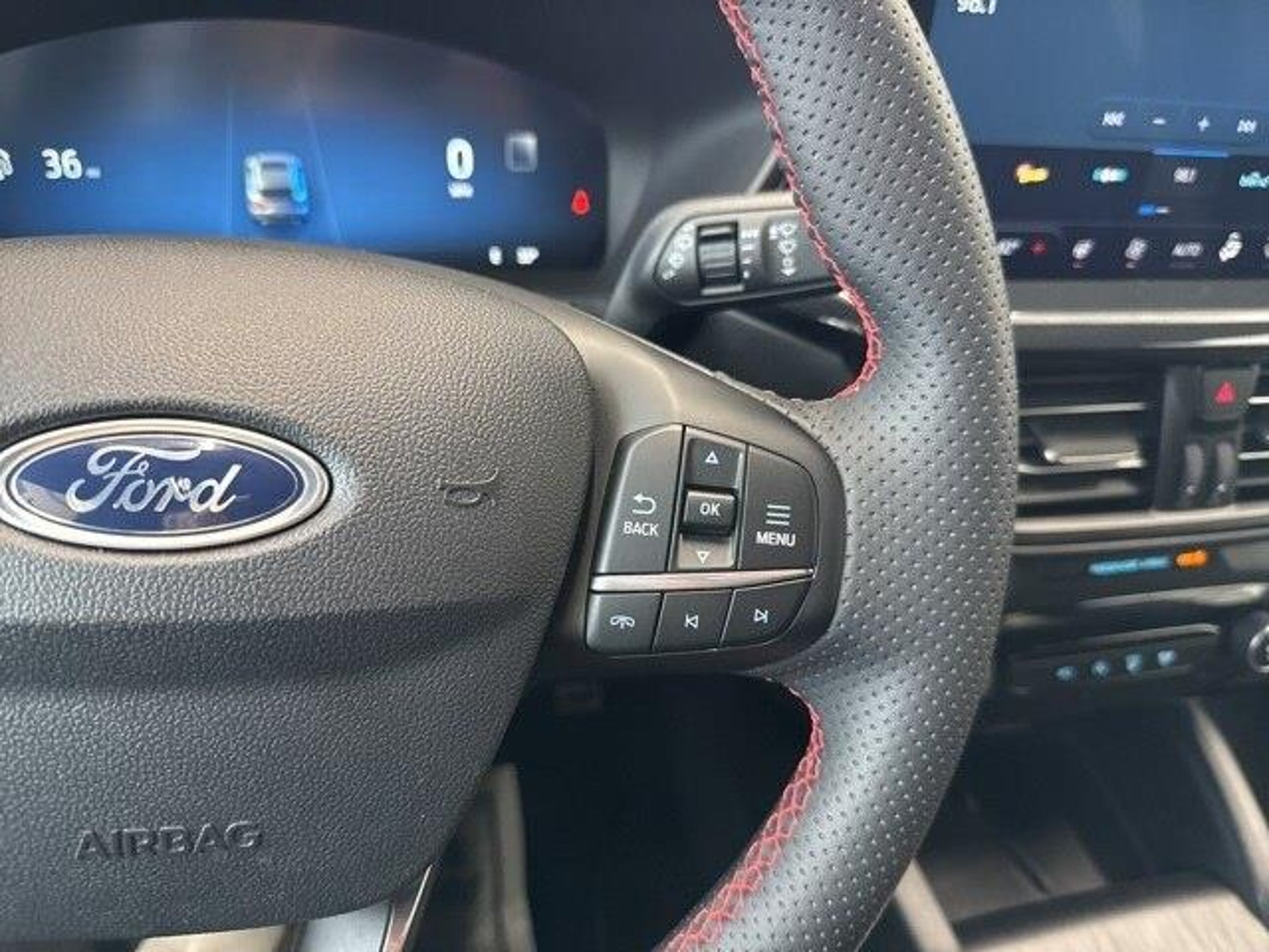 AWD, 10-Way Power Driver's Seat, 12.3 Productivity Screen in Instrument Cluster, 2.91 Axle Ratio, 360-Degree Camera w/Split View, 4-Wheel Disc Brakes, 6 Speakers, 6-Way Power Passenger Seat, ABS brakes, Air Conditioning, Alloy wheels, AM/FM radio: SiriusXM, AM/FM Stereo, Auto High-beam Headlights, Automatic temperature control, Body Color Mirrors, Brake assist, Bumpers: body-color, Compass, Connected Built-In Navigation, Delay-off headlights, Driver door bin, Driver vanity mirror, Dual front impact airbags, Dual front side impact airbags, Electronic Fuel Door Release, Electronic Stability Control, Emergency communication system: SYNC 4 911 Assist, Equipment Group 401A, Exterior Parking Camera Rear, Ford Co-Pilot360 Assist 2.0, FordPass Connect, Four wheel independent suspension, Front anti-roll bar, Front Bucket Seats, Front Center Armrest, Front dual zone A/C, Front fog lights, Front reading lights, Fully automatic headlights, HD Radio, Heated door mirrors, Heated front seats, Heated steering wheel, Heated Vinyl/Cloth Front Sport Contour Bucket Seats, Illuminated entry, Intelligent Adaptive Cruise Control w/Stop-and-Go, Intersection Assist, Knee airbag, Low tire pressure warning, Memory Package, Neutral Towing Capability, Occupant sensing airbag, Outside temperature display, Overhead airbag, Overhead console, Panic alarm, Passenger door bin, Passenger vanity mirror, Pedestrian Alert Sounder, Power door mirrors, Power driver seat, Power Liftgate, Power steering, Power windows, Radio data system, Radio: B&O Sound System by Bang & Olufsen, Rear anti-roll bar, Rear Parking Sensor, Rear reading lights, Rear seat center armrest, Rear window defroster, Rear window wiper, Remote keyless entry, Reverse Brake Assist, SecuriCode Keyless Entry Keypad, Speed control, Speed Sign Recognition, Speed-sensing steering, Speed-Sensitive Wipers, Split folding rear seat, Spoiler, Sport steering wheel, Steering wheel mounted audio controls, SYNC 4, SYNC 4 w/Enhanced Voice Recognition, Tachometer, Tech Pack #2, Telescoping steering wheel, Tilt steering wheel, Traction control, Trip computer, Variably intermittent wipers, Wheels: 18 Rock Metallic Painted Aluminum, Wheels: 19 Machined-Face Ebony-Painted Aluminum, Wireless Charging Pad, AWD. Priced below KBB Fair Purchase Price! Odometer is 12238 miles below market average! 23/31 City/Highway MPG 2023 Ford Escape ST-Line Select At Richardson Ford In Standish We're All About Service! Give us a shot at earning your business & you'll see firsthand why in small town Standish we go