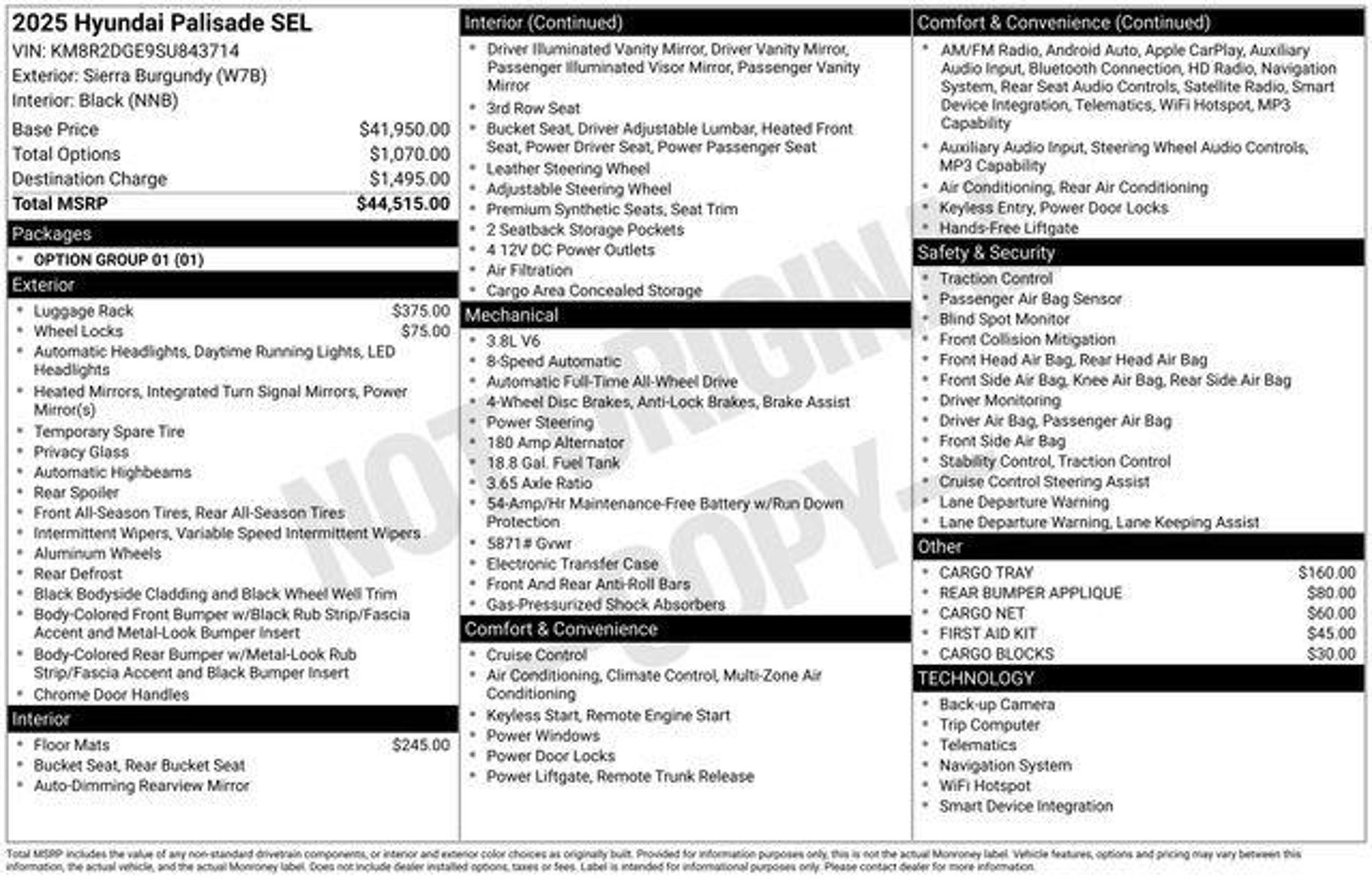 Certified. Hyundai Factory Certified CPO Vehicle, AWD. Odometer is 9671 miles below market average!Hyundai Details: * Includes 10-year/Unlimited Mileage Roadside Assistance with Rental Car and Trip Interruption Reimbursement; Please See Dealers for Specific Vehicle Eligibility Requirements. 10-Year/100,000 Mile Hybrid/EV Battery Warranty. 3-Months SiriusXM Trial Subscription. Complimentary 1 Year (Connected Care & Remote Pkgs). (for Hyundai Certified Used Vehicles program), 6 Model Years Old and Newer With 80,000 - 120,000 Miles, 7-10 Model Years Old Vehicles With 120,000 Miles or Less. Powertrain Warranty 90 Days/5,000 Miles, HEV/PHEV Battery Warranty 10 Years/100,000 Miles. Roadside Assistance 90 Days/Unlimited Miles. Rental Car $35/Day Up to 5 Days. 3-Months SiriusXM Trial Subscription. (for Hyundai Select Used program) * Roadside Assistance (for Hyundai Certified Used Vehicles program) * Warranty Deductible: $50 (for Hyundai Certified Used Vehicles program) * Vehicle History (for Hyundai Certified Used Vehicles program) * Powertrain Limited Warranty: 120 Month/100,000 Mile (whichever comes first) from original in-service date (for Hyundai Certified Used Vehicles program) * 173 Point Inspection (for Hyundai Certified Used Vehicles program), 117 Point Inspection (for Hyundai Select Used program) * Limited Warranty: 60 Month/60,000 Mile (whichever comes first) from original in-service date (for Hyundai Certified Used Vehicles program)2025 Hyundai Palisade Sierra Burgundy SEL V6At Korum, we provide our customers with real-time value pricing on every vehicle. How? We poll over 70,000 websites hourly to ensure our customers receive the BEST PRICES. We will never inflate vehicle prices or play pricing games as a part of our negotiation strategy with our customers.Located at the corner of River Road and Meridian in downtown Puyallup, WA, we have a large selection of cars, trucks and SUVs. Shop our huge selection of vehicles online or come visit us and take a test drive today. Limitations and exclusions apply. Any vehicle used for business or commercial purposes does not qualify. See dealer for complete details. Customer is responsible for sales tax, title, and license fee. A negotiable $200 documentation fee may be applied. Photos for illustration purposes only.
