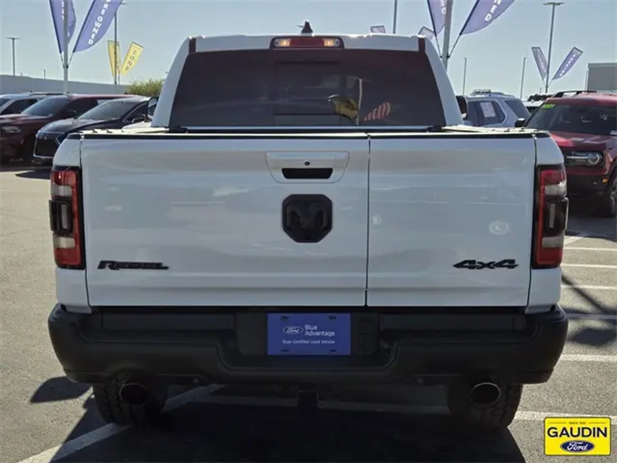 We are the number 1 Certified Pre-Owned Ford Dealer in Nevada! Certified. 2020 Ram 1500 Rebel Priced below KBB Fair Purchase Price! Clean CARFAX. CARFAX One-Owner. 1-Yr SiriusXM Guardian Trial, 115V Auxiliary Rear Power Outlet, 12 Touchscreen Display, 2 USB Full Function/Charge Only Media Hub, 4 Way Front Headrests, 4G LTE Wi-Fi Hot Spot, 5-Year SiriusXM Traffic Service, 5-Year SiriusXM Travel Link Service, Apple CarPlay, Auto-Dimming Rear-View Mirror, Black Premium Power Mirrors, Black Trailer Tow Power Mirrors, Body Color Door Handles, Bucket Seats, Disassociated Touchscreen Display, Foam Bottle Insert (Door Trim Panel), For Details, Visit DriveUconnect.com, Front Seat Back Map Pockets, Full Length Upgraded Floor Console, Google Android Auto, GPS Antenna Input, GPS Navigation, harman/kardon 19 Speaker Premium Sound, HD Radio, Heated Front Seats, Heated Steering Wheel, Integrated Center Stack Radio, LED Footwell Lighting, Lux Leather Trimmed Bucket Seats, ParkSense Front/Rear Park Assist w/Stop, Power 4-Way Driver Lumbar Adjust, Power 4-Way Passenger Lumbar Adjust, Power 8-Way Driver & Passenger Seats, Power Adjustable Pedals, Quick Order Package 27W Rebel, Radio: Uconnect 12 w/Navigation, Radio: Uconnect 4 w/8.4 Display, Rain Sensitive Windshield Wipers, Rear 60/40 Folding Seat, Rear Dome w/On/Off Switch Lamp, Rear Underseat Compartment Storage, Rear Window Defroster, Rebel 12, Rebel Level 2 Equipment Group, Remote Proximity Keyless Entry, Security Alarm, Single Disc Remote CD Player, SiriusXM Satellite Radio, SiriusXM Traffic Plus, SiriusXM Travel Link, SiriusXM w/360L, Sun Visors w/Illuminated Vanity Mirrors, Trailer Brake Control, Trailer Tow Group, Universal Garage Door Opener, USB Host Flip. Certification Program Details: Ford Blue Advantage: Blue Certified * 139 Point Inspection * Transferable Warranty * Vehicle History * Warranty Deductible: $100 * Roadside Assistance * Limited Warranty: 3 Month/4,000 Mile (whichever comes first) after new car warranty expires or from certified purchase date * and 11,000 FordPass Rewards Points to use toward first maintenance visit Awards: * JD Power Automotive Performance, Execution and Layout (APEAL) Study Gaudin Ford proudly offers our customers home delivery services, virtual product presentations, and home test drives. Inquire for details.
