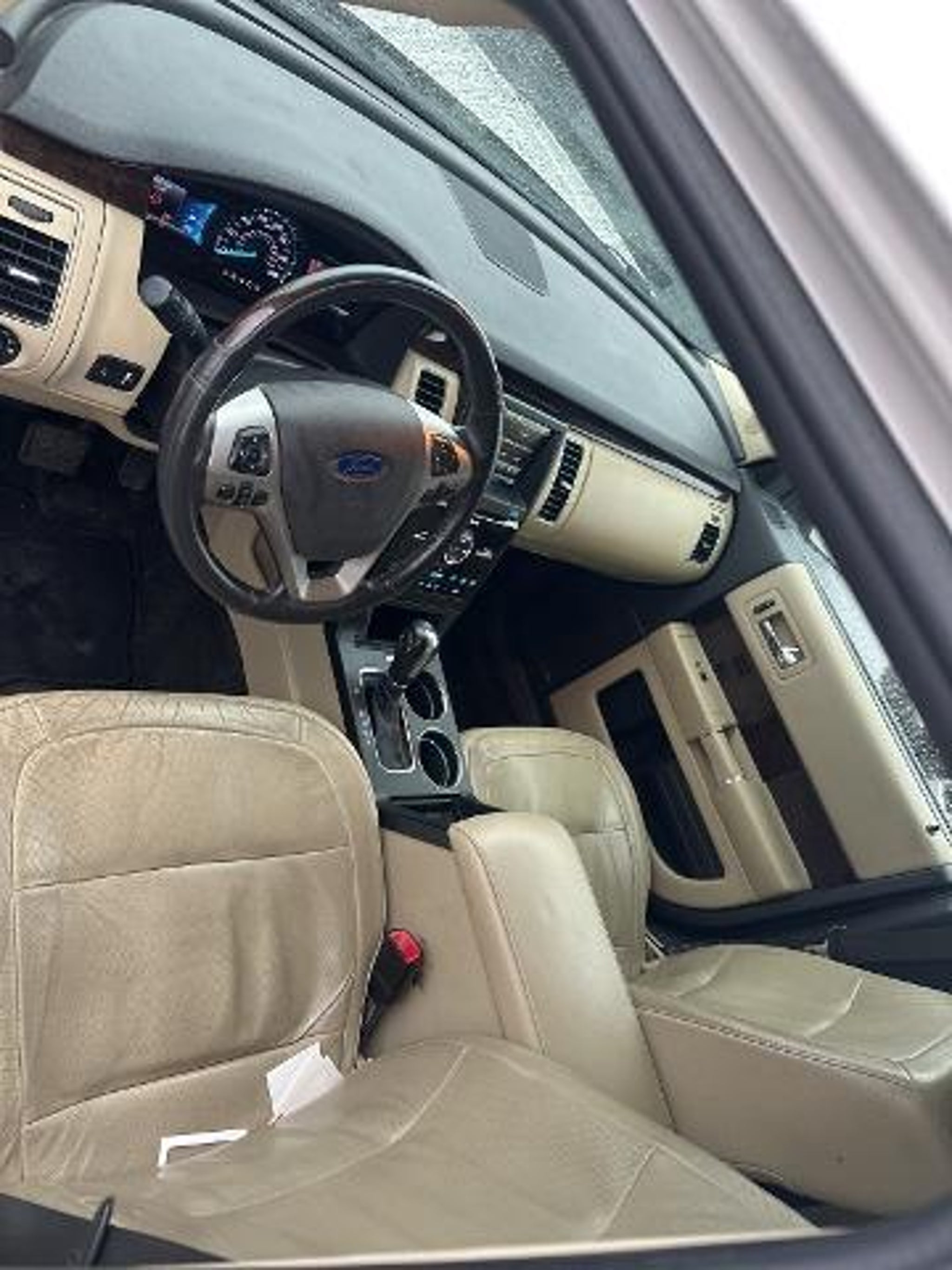 2015 Ford Flex Limited Flex Limited, 4D Sport Utility, 3.5L V6 Ti-VCT, 6-Speed Automatic with Select-Shift, FWD, Dune Leather, 12 Speakers, 19 Painted Aluminum Wheels, 3.39 Axle Ratio, 3rd row seats: split-bench, 4-Wheel Disc Brakes, ABS brakes, Adjustable pedals, Air Conditioning, Alloy wheels, AM/FM radio: SiriusXM, Auto-dimming Rear-View mirror, Automatic temperature control, Brake assist, Bumpers: body-color, CD player, Compass, Cruise Control, Delay-off headlights, Driver door bin, Driver vanity mirror, Dual front impact airbags, Dual front side impact airbags, Electronic Stability Control, Four wheel independent suspension, Front anti-roll bar, Front Bucket Seats, Front Center Armrest, Front dual zone A/C, Front fog lights, Front reading lights, Fully automatic headlights, Garage door transmitter, Heated and Cooled Seats, Heated door mirrors, High-Intensity Discharge Headlights, Illuminated entry, Leather steering wheel, Low tire pressure warning, Memory seat, Navigation System, Occupant sensing airbag, Outside temperature display, Overhead airbag, Overhead console, Panic alarm, Passenger door bin, Passenger vanity mirror, Pedal memory, Perforated Leather-Trimmed Bucket Seats, Power door mirrors, Power driver seat, Power Liftgate, Power passenger seat, Power steering, Power windows, Premium audio system: Sony, Radio data system, Radio: AM/FM/HD Single CD/MP3 Player, Rain sensing wipers, Rear air conditioning, Rear anti-roll bar, Rear Parking Sensors, Rear reading lights, Rear seat center armrest, Rear window defroster, Rear window wiper, Rearview Camera, Remote keyless entry, Security system, Speed-Sensitive Wipers, Split folding rear seat, Steering wheel mounted audio controls, SYNC w/MyFord Touch & SYNC Services, Tachometer, Telescoping steering wheel, Tilt steering wheel, Traction control, Trip computer, Variably intermittent wipers, (Must finance with Ford Motor Credit to receive online pricing - see dealer for details.) Proudly, Flex Limited, 4D Sport Utility, 3.5L V6 Ti-VCT, 6-Speed Automatic with Select-Shift, FWD, Dune Leather, 12 Speakers, 19 Painted Aluminum Wheels, 3.39 Axle Ratio, 3rd row seats: split-bench, 4-Wheel Disc Brakes, ABS brakes, Adjustable pedals, Air Conditioning, Alloy wheels, AM/FM radio: SiriusXM, Auto-dimming Rear-View mirror, Automatic temperature control, Brake assist, Bumpers: body-color, CD player, Compass, Cruise Control, Delay-off headlights, Driver door bin, Driver vanity mirror, Dual front impact airbags, Dual front side impact airbags, Electronic Stability Contr