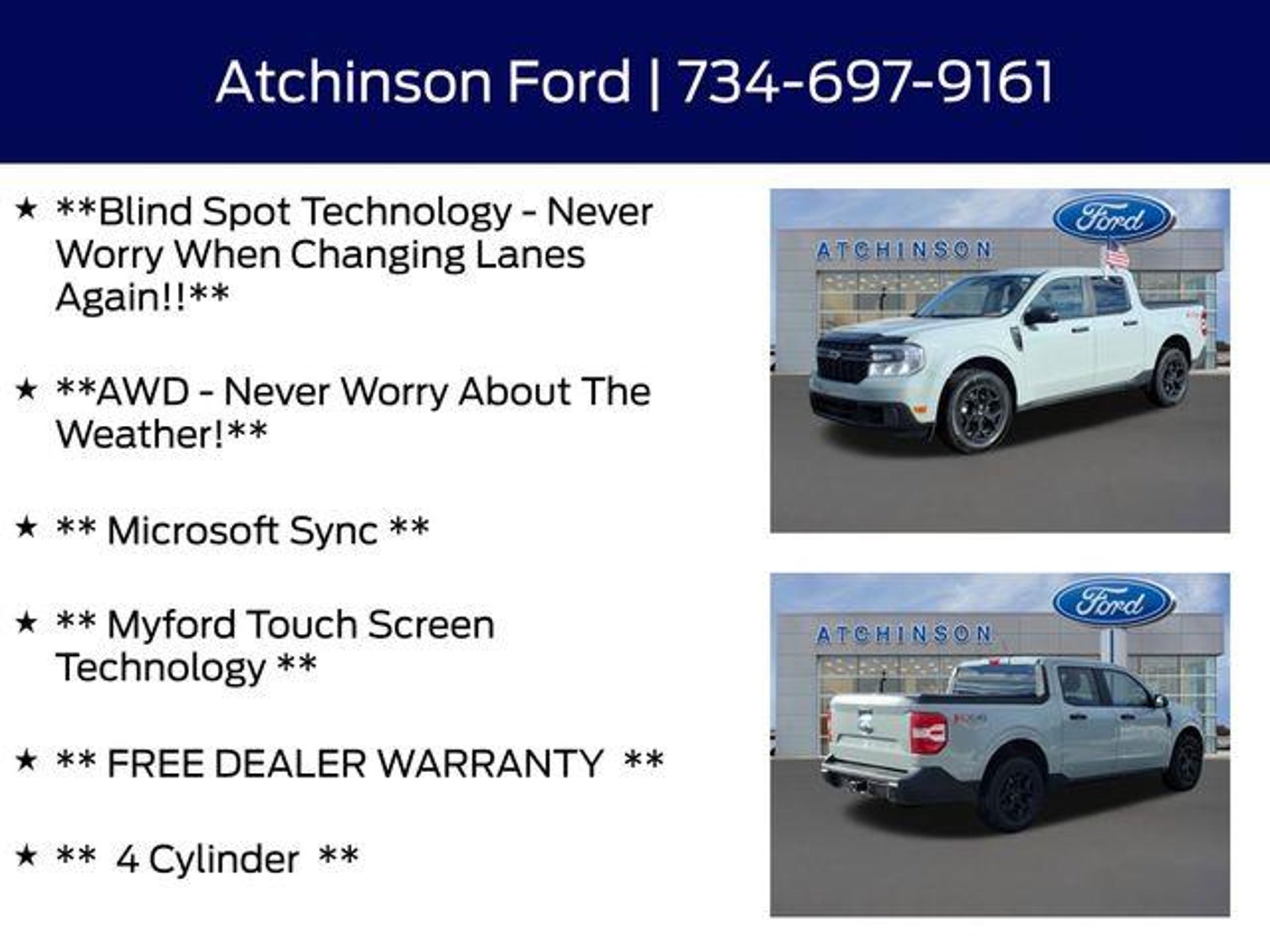 Discover the ultimate blend of capability, technology, and style with this 2024 Ford Maverick XLT. This pre-owned gem boasts an impressive suite of features that will elevate your driving experience to new heights. â Factory Gold Certified Pre-owned Vehicle 7yr or 100,000 miles! â Inspected by a Certified Ford Technician! â Certified by CARFAX - ONE OWNER & NO ACCIDENTS! â Rear View Back-Up Camera! â Back Up Warning Sensors! â Blind Spot Technology - Never Worry When Changing Lanes Again!! â AWD - Never Worry About The Weather! â Microsoft Sync â Myford Touch Screen Technology â FX4 Off-Road Package â 4K Tow Package Powered by the efficient and responsive EcoBoost 2.0L I4 GTDi DOHC Turbocharged VCT engine, paired with an 8-Speed Automatic transmission, this Maverick delivers an exceptional blend of performance and fuel efficiency. With an EPA-estimated 22 MPG in the city and 29 MPG on the highway, you'll enjoy the freedom to explore without compromising your wallet. The Maverick's rugged yet refined exterior, complemented by the Gray paint, exudes a sophisticated and capable presence. Step inside and you'll be greeted by a well-appointed interior, complete with premium features that cater to your every need. From the Unique Cloth Front Bucket Seats to the Myford Touch Screen Technology, this Maverick is designed to keep you connected, comfortable, and in control. This Ford Maverick XLT is more than just a vehicle â it's a testament to quality, innovation, and uncompromising value. With the peace of mind that comes with the Ford Gold Certified Pre-owned program, you can drive with confidence, knowing that this Maverick has been meticulously inspected and backed by an extensive warranty. Don't miss your chance to experience the ultimate in versatility and capability. Schedule a test drive today and discover how this 2024 Ford Maverick XLT can elevate your driving experience.