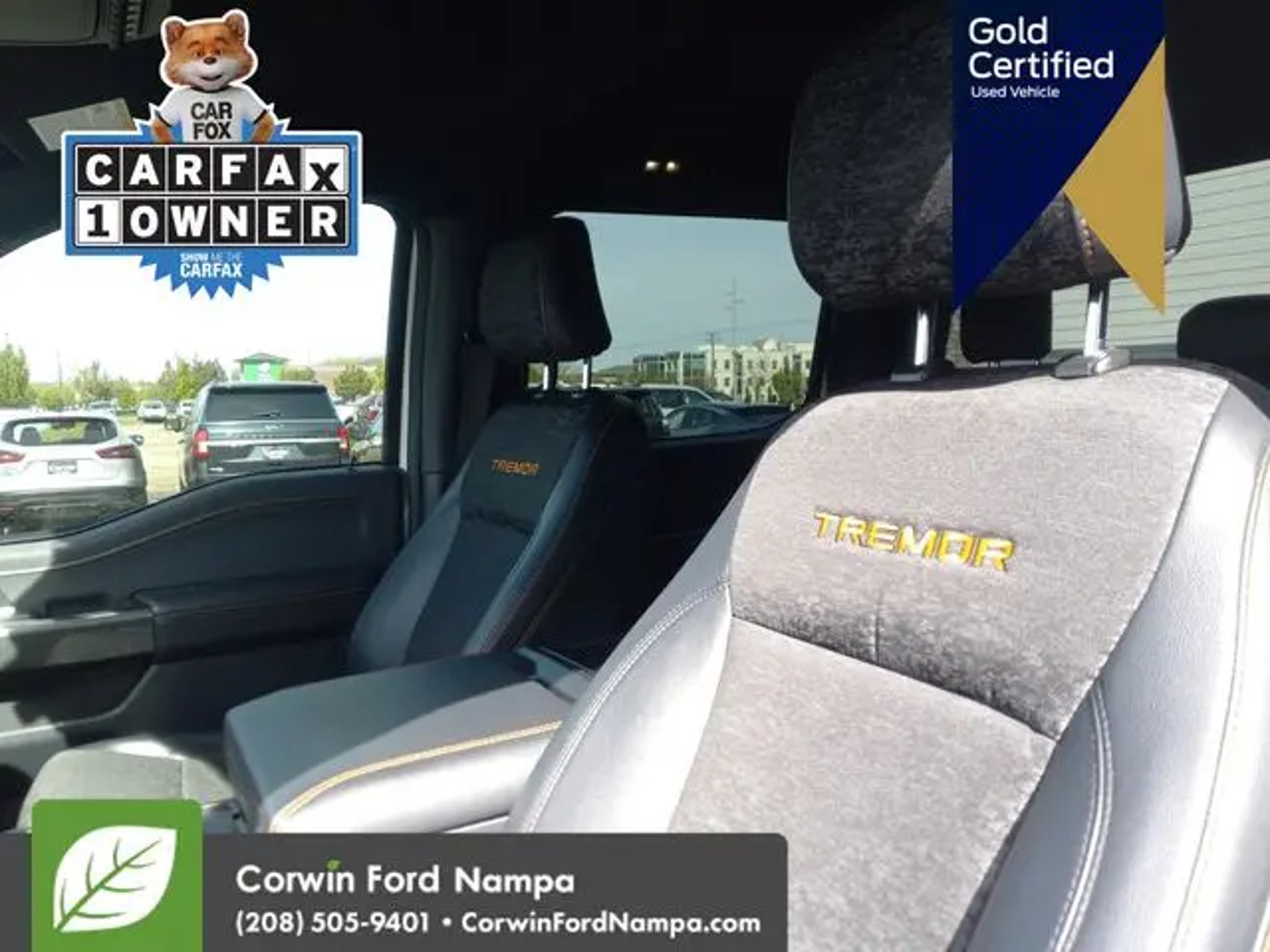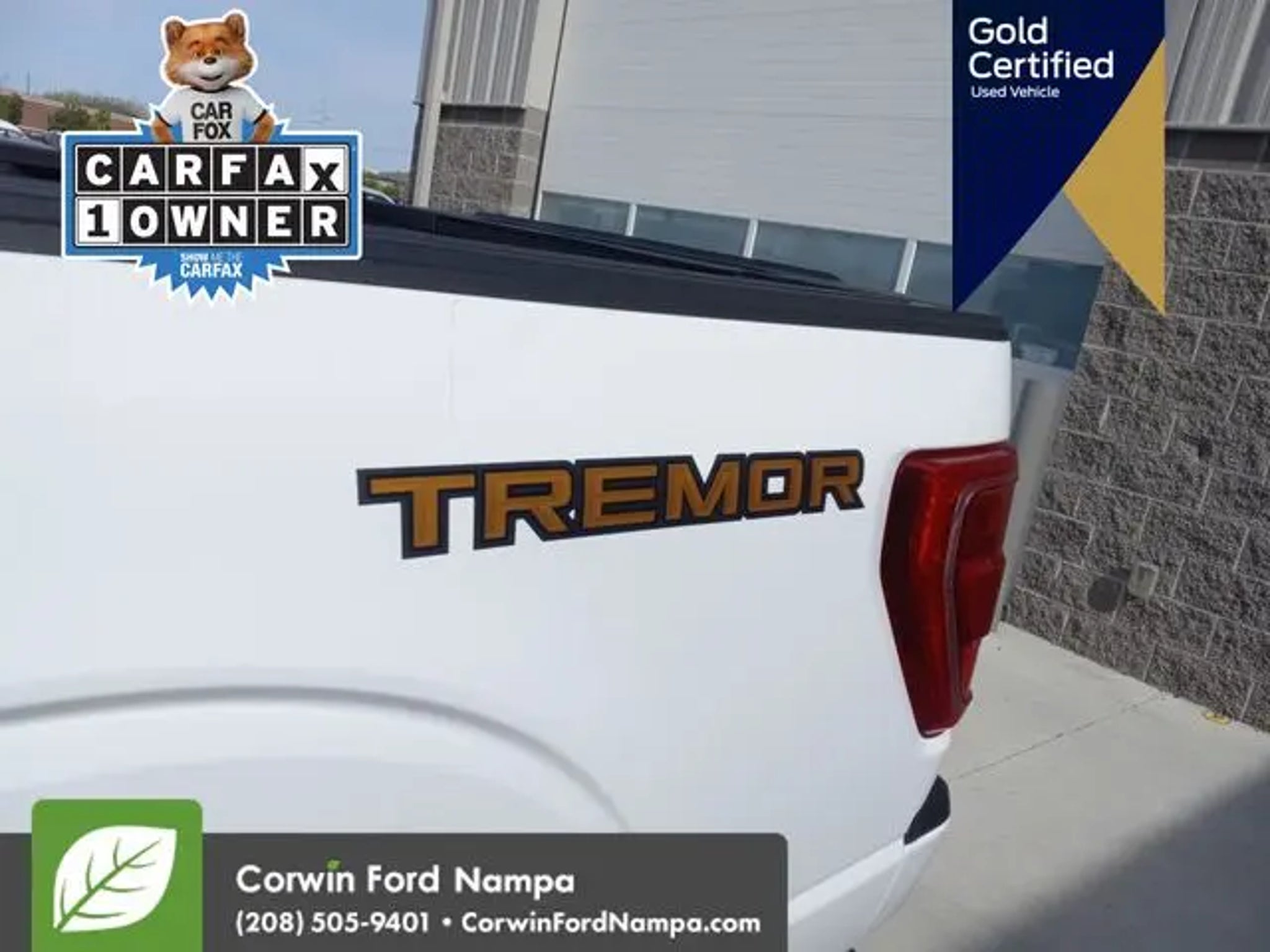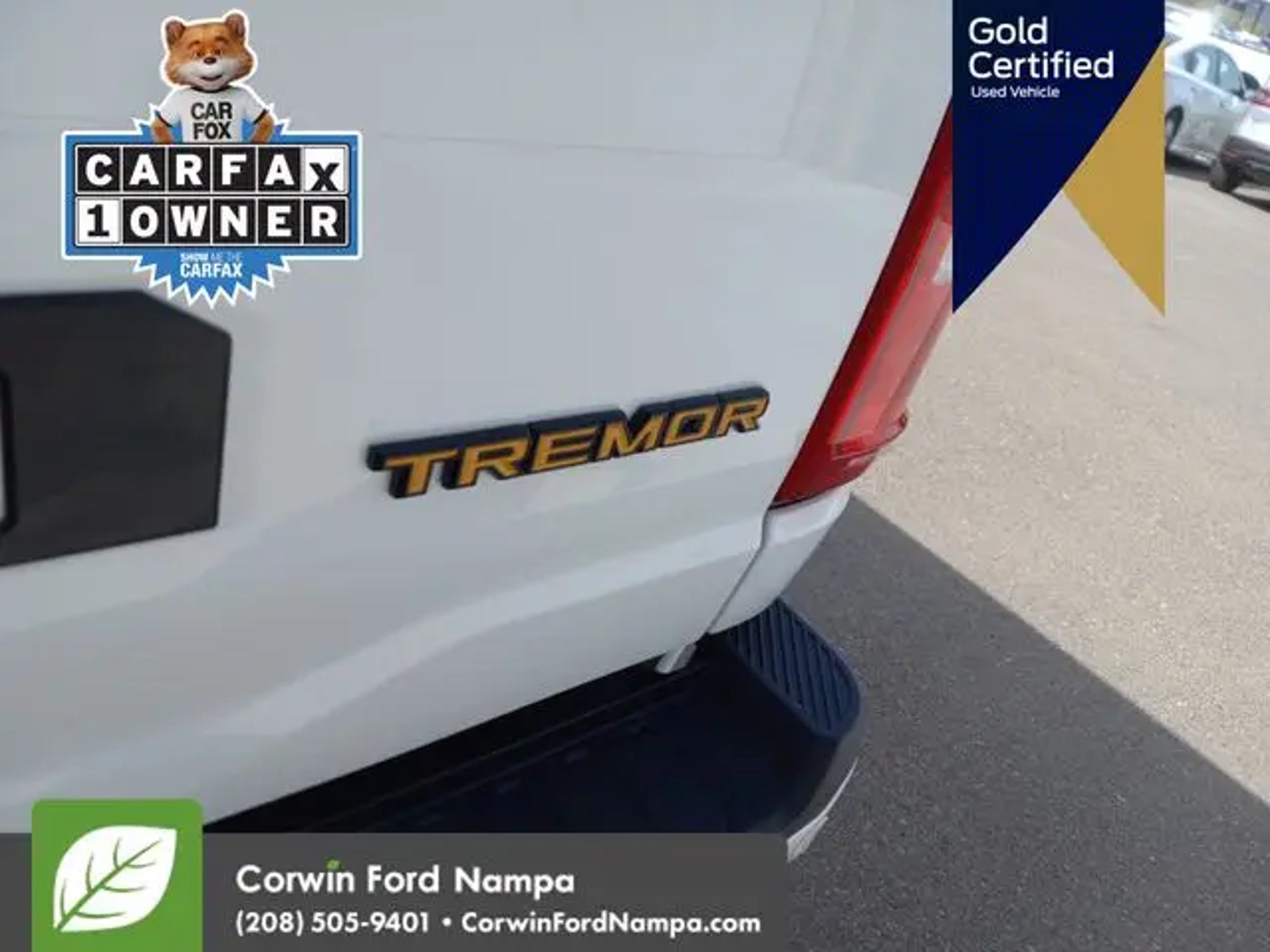 Ready to take on the day, our Certified, Accident Free 2023 Ford F-150 Tremor SuperCrew 4X4 in Oxford White is a top choice for adventure! Powered by a Twin-TurboCharged 3.5 Liter EcoBoost V6 that generates 400hp for a 10 Speed SelectShift Automatic transmission. Off-road shocks and exclusive Tremor suspension components help handle rugged terrain, and this Four Wheel Drive truck returns nearly 20mpg on the highway. You've got plenty of strength for towing and hauling, too! Mighty and muscular, our F-150 makes a bold impression by showing off a unique grille with orange accents, an aggressive Tremor hood, LED lighting, step bars, skid plates, tonneau cover, a SecuriCode keypad, and eye-catching graphics. Once inside, our Tremor cabin is well equipped for what comes next with special sport-cloth heated power front seats, a multifunction steering wheel, dual-zone automatic climate control, cruise control, keyless access/ignition, remote start, and an 8-inch driver display. Digital convenience complements those smart features with a 12-inch touchscreen, wireless Android Auto®/Apple CarPlay®, enhanced voice control, WiFi compatibility, Bluetooth®, and a premium sound system. Safer trucking takes the spotlight with intelligent Ford features like a rearview camera, automatic braking, lane-keeping assistance, hill-start assist, hill-descent control, and more. Now, find out for yourself why our F-150 Tremor is so popular! Save this Page and Call for Availability. We Know You Will Enjoy Your Test Drive Towards Ownership! Corwin Ford Nampa! Friendly service and aggressive pricing is why we are your new and pre-owned vehicle dealer serving, Nampa, Boise, Meridian, Caldwell, Kuna, Eagle, Emmett, Idaho City, Wilder, New Plymouth, Star, Middleton, Weiser, Payette, Horseshoe Bend, Mountain Home, Idaho, and surrounding states.