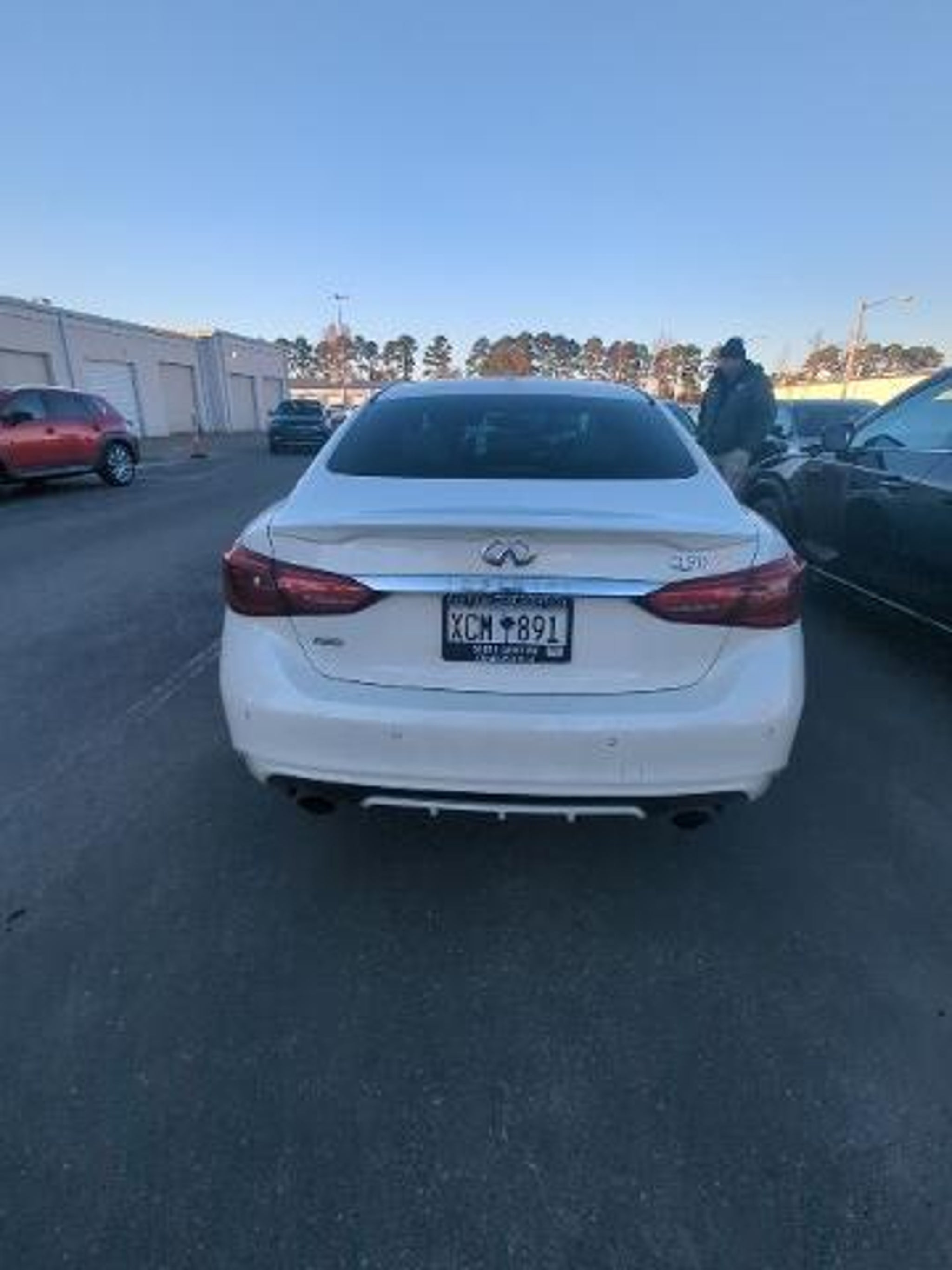 Check out all these great options Cargo Package (Cargo Net, First Aid Kit, Shopping Bag Hooks, and Trunk Mat), 16 Speakers, 4-Wheel Disc Brakes, ABS brakes, Air Conditioning, Alloy wheels, AM/FM radio: SiriusXM, Apple CarPlay/Android Auto, Auto High-beam Headlights, Auto tilt-away steering wheel, Auto-dimming door mirrors, Auto-dimming Rear-View mirror, Automatic temperature control, Blind Spot Warning, Brake assist, Bumpers: body-color, CD player, Compass, Delay-off headlights, Driver door bin, Driver vanity mirror, Dual front impact airbags, Dual front side impact airbags, Electronic Stability Control, Emergency communication system: INFINITI Connection, Four wheel independent suspension, Front anti-roll bar, Front Bucket Seats, Front Center Armrest, Front dual zone A/C, Front fog lights, Front reading lights, Fully automatic headlights, Garage door transmitter: HomeLink, Genuine wood dashboard insert, Genuine wood door panel insert, Heated door mirrors, Heated Front Bucket Seats, Heated front seats, Heated steering wheel, Illuminated entry, INFINITI Radiant Illuminated Kick Plates, INFINITI Radiant Welcome Lighting, Leather Seating Surfaces, Leather Shift Knob, Leather steering wheel, Literature Kit, Low tire pressure warning, Memory seat, Navigation system: INFINITI InTouch Navigation, Occupant sensing airbag, Outside temperature display, Overhead airbag, Overhead console, Panic alarm, Passenger door bin, Passenger vanity mirror, Power door mirrors, Power driver seat, Power moonroof, Power passenger seat, Power steering, Power windows, Radio data system, Radio: INFINITI InTouch w/Navigation, Rain sensing wipers, Rear anti-roll bar, Rear Decklid Spoiler, Rear reading lights, Rear seat center armrest, Rear USB Charging Ports, Rear window defroster, Remote keyless entry, Security system, Speed control, Speed-Sensitive Wipers, Splash Guards, Split folding rear seat, Steering wheel memory, Steering wheel mounted audio controls, Tachometer, Telescoping steering wheel, Tilt steering wheel, Traction control, Trip computer, Turn signal indicator mirrors, Variably intermittent wipers, and Wheels: 19 x 8.5 Split 5-Spoke w/Sport Design. Majestic White 2022 INFINITI Q50 SENSORY AWD 7-Speed Automatic with Overdrive 3.0L V6 Recent Arrival! 19/27 City/Highway MPG