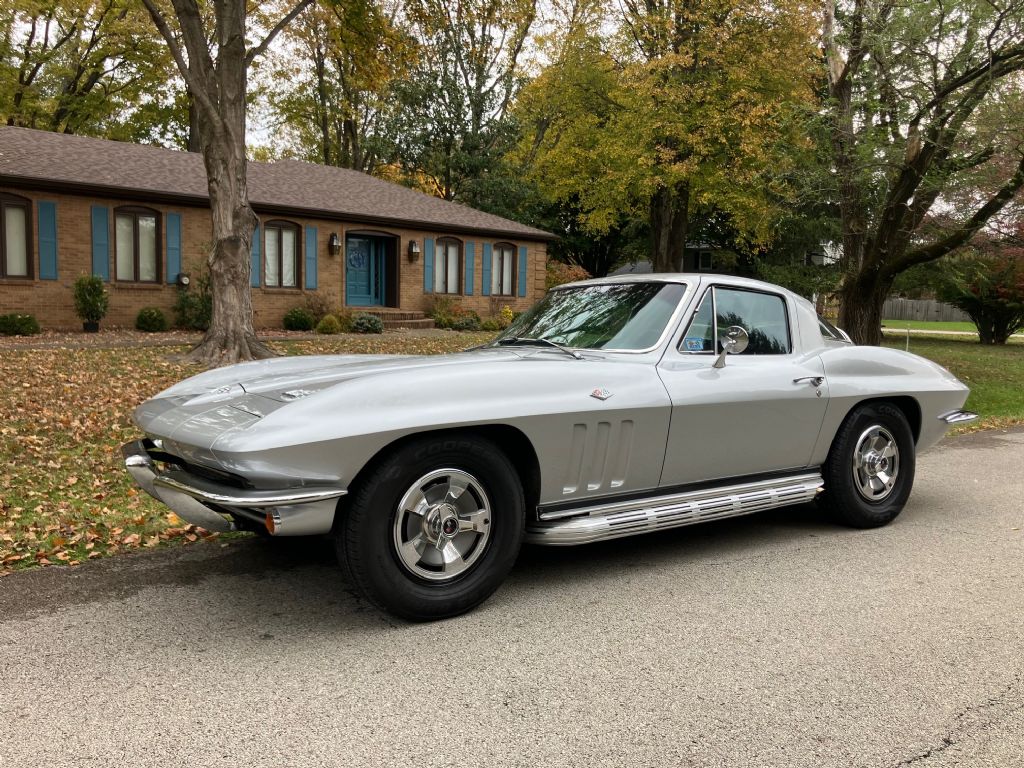 1966 Corvette Fastback Coupe, Beautiful Silver Pearl paint with excellent Black interior both matching the trim tag. This coupe is powered by an L79 327/350 hp engine backed by Muncie 4-speed. Factory side pipes, 4 wheel disc brakes, and black wall tires with excellent factory caps. New suspension components throughout. Detailed undercarriage and under hood with correct shielding and air cleaner. AM/FM with power antenna, all gauges work including the clock. Excellent chrome. This L79 coupe is a smooth driving fast turnkey car. $78,500 KY Phone 50 two-228-0256 calls only as I do not text.