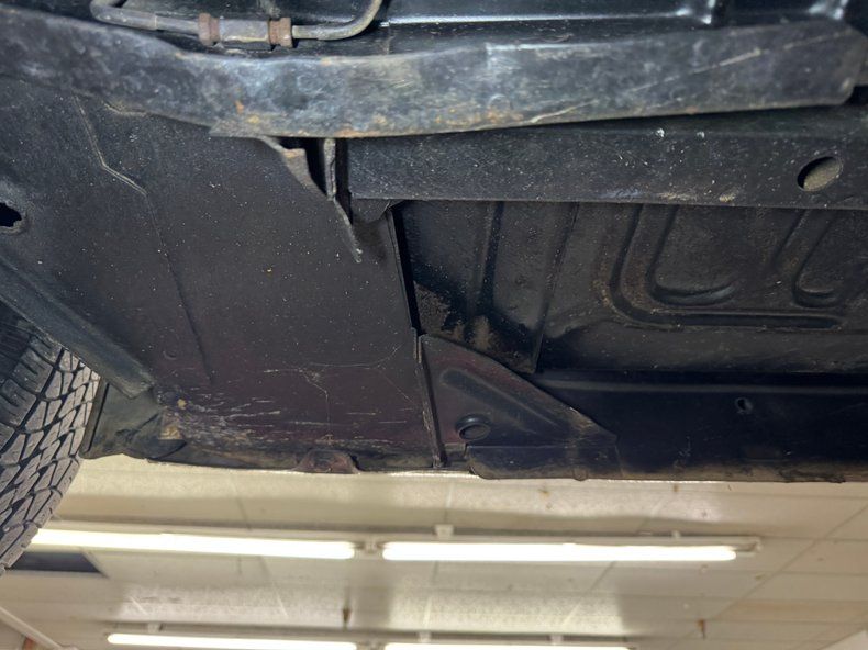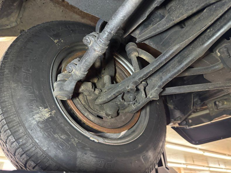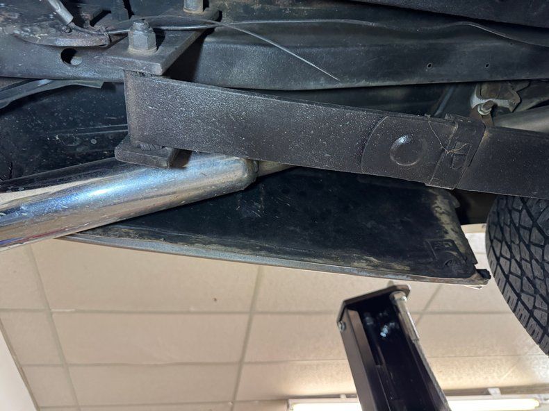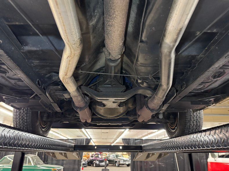 Super clean underneath, we'd say show ready and the minimal surface rust is barely worth mentioning. Headers send down dual exhaust that enter a pair of FlowMaster mufflers and find an exit through chrome tips. Drum brakes are employed front and rear and suspension consists of coil springs in front and leaf springs in the rear. Absolutely no complaints about the underside where we note a gleaming gas tank.