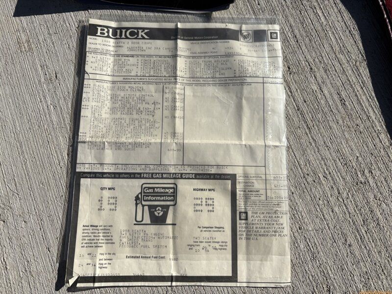 HIGHLIGHTS: 1988 Buick Reatta with just over 50,000 actual miles Striking white exterior paired with a red leather interior Legendary GM 3800 V6! Excellent original condition throughout Loaded personal luxury coupe with innovative factory touchscreen technology! BODY OVERVIEW: This Reatta presents as a well-preserved, low-mileage survivor. The body is straight and clean, with panel fit and finish consistent with careful ownership and reflecting the mileage. It wears its originality beautifully and delivers the understated, aerodynamic look that made the Reatta a personal luxury star in the 1980s. PAINT CONDITION OVERVIEW: The white paint appears to be original and is in very nice condition for its age. The gloss is strong, and imperfections are limited to minor age-related blemishes that are appropriate for a car of this vintage and mileage. Overall, it shows beautifully and has clearly been cared for. INTERIOR CONDITION OVERVIEW: The red leather interior is clean, comfortable, and presents extremely well. Wear is minimal and in line with the mileage, with seats, panels, and trim showing only light signs of age. The cockpit-style layout feels special, and the interior still delivers that unmistakable late-80s luxury atmosphere. But wait, theres more! For those unfamiliar, this car is equipped with the factory available CRT touchscreen information center. This is both an information center for driver notifications, as well as an interactive tool for displaying additional gauges, tachometer, radio controls, heat & A/C controls, and more. Hard to believe this technology was available over 35 years ago! MECHANICAL OVERVIEW: Powered by the time-proven GM 3800 V6, this Reatta offers smooth acceleration, plenty of pep, and a reputation for long-term dependability. The quiet exhaust and refined ride highlight its luxury intent. Features include power windows, power seats, power steering, cruise control, power brakes, and a tachometer. This little Buick really puts the personal in personal luxury car! It fires up easily, runs smoothly, and is simply a pleasure to drive. WHAT YOULL LOVE ABOUT THIS CAR: Low mileage and excellent original condition Iconic GM 3800 V6 Eye-catching white over red color combination Revolutionary CRT touchscreen that was decades ahead of its time Comfortable, quiet, and refined driving experience WHAT YOU MIGHT HATE ABOUT THIS CAR: White paint isnt for everyone No rear seating, as expected in a personal luxury coupe DS IT NEED ANYTHING? The blower motor is not currently operational. WHAT BUYER IS LOOKING FOR THIS CAR? This Reatta is perfect for the buyer who appreciates under-the-radar classics, innovative 1980s technology, and low-mileage originality. Its an excellent choice for a collector, a Buick enthusiast, a CRT enthusiast, or anyone looking for a distinctive personal luxury coupe that offers comfort, reliability, and conversation-starting features in one very clean low-mileage package! Contact Rare Rides Company at 980-306-8100 or info@rarerides.com for more information The advertised price for this vehicle includes the $250 document fee added by Rare Rides Company. Rare Rides Company ds not collect tax, tag or title fees. Title Status: CLEAN DS IT WORK? Air Conditioning NO Heater NO - blower inop Speedometer YES Odometer YES Oil PSI Gauge YES Temperature Gauge YES Fuel Gauge YES Tachometer YES Wipers YES Windows YES Horn YES Radio YES Headlights YES Tail Lights YES Brake Lights YES Reverse Lights YES Turn Signals YES Emergency Brake YES 4x4/AWD N/A Tire Condition: Hi Tread, age unknown Keys " Ignition YES, Door YES, Trunk YES Seatbelts Front: YES Rear: N/A Runs & Drives YES