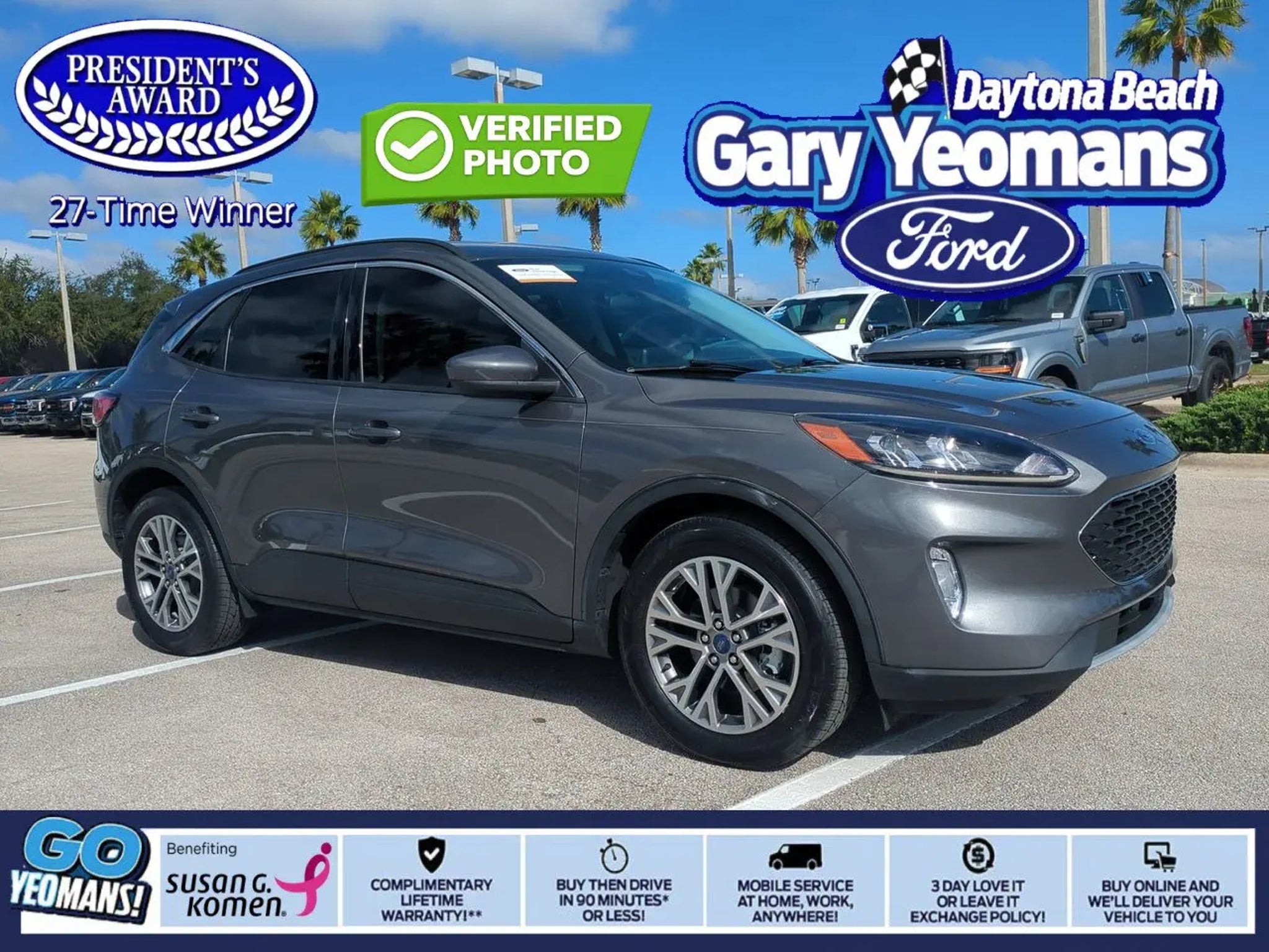 Certified. 2022 Ford Escape SEL FWD 8-Speed Automatic 1.5L EcoBoost Carbonized Gray Metallic **CERTIFIED** **LIKE NEW CONDITION** **FRESH LOCAL TRADE-IN** **CLEAN CARFAX... NO ACCIDENTS**. THIS VEHICLE INCLUDES THE FOLLOWING FEATURES AND OPTIONS: Equipment Group 301A Ford Co-Pilot360 Assist (Intelligent Adaptive Cruise Control w/Stop-and-Go Speed Sign Recognition and Voice-Activated Touchscreen Navigation System) 18 Machined-Face Aluminum Wheels 3.81 Axle Ratio 4-Wheel Disc Brakes 4G LTE Wi-Fi Hotspot Removal 6 Speakers ABS brakes Air Conditioning Alloy wheels AM/FM radio: SiriusXM AM/FM Stereo Auto High-beam Headlights Automatic temperature control Black Roof Rack Rails Brake assist Bumpers: body-color Compass Delay-off headlights Driver door bin Driver vanity mirror Dual front impact airbags Dual front side impact airbags Electronic Stability Control Emergency communication system: SYNC 3 911 Assist Exterior Parking Camera Rear FordPass Connect Four wheel independent suspension Front & Rear Floor Liners w/o Carpet Mats Front anti-roll bar Front Bucket Seats Front Center Armrest Front dual zone A/C Front fog lights Front reading lights Fully automatic headlights Heated ActiveX Trimmed Front Sport Contour Bucket Seats Heated door mirrors Heated front seats Heated steering wheel Illuminated entry Instrument Panel w/6.5 Digital Screen Knee airbag Low tire pressure warning Occupant sensing airbag Outside temperature display Overhead airbag Overhead console Panic alarm Passenger door bin Passenger vanity mirror Power door mirrors Power driver seat Power Liftgate Power steering Power windows Radio data system Rear anti-roll bar Rear reading lights Rear seat center armrest Rear window defroster Rear window wiper Remote keyless entry Speed control Speed-sensing steering Speed-Sensitive Wipers Split folding rear seat Spoiler Steering wheel mounted audio controls SYNC 3 Communications & Entertainment System Tachometer Telescoping steering wheel Tilt steering wheel Traction control Trip computer and Variably intermittent wipers. Ford Gold Certified Details: * Limited Warranty: 12 Month/12000 Mile (whichever comes first) after new car warranty expires or from certified purchase date * 172 Point Inspection * Vehicle History * Transferable Warranty * Warranty Deductible: $100 * Powertrain Limited Warranty: 84 Month/100000 Mile (whichever comes first) from original in-service date * and 22000 FordPass Rewards Points to use toward first two maintenance visits * Roadside Assistance We offer Market Based Pricing please call to check the availability of this vehicle. Sale Prices do not include tax tag title dealer fee and $389 electronic registration filing fee. All advertised vehicles are subject to availability. Inventory options and pricing are all subject to change. While we make every effort to ensure the data listed here is correct there may be instances where some of the incentives options or vehicle features may be listed incorrectly as we get data from multiple data sources. PLEASE MAKE SURE to confirm the details with the dealer to ensure its accuracy. Dealer cannot be held liable for data that is listed incorrectly. Please contact dealer for further details and thank you for reading the fine print happy motoring!