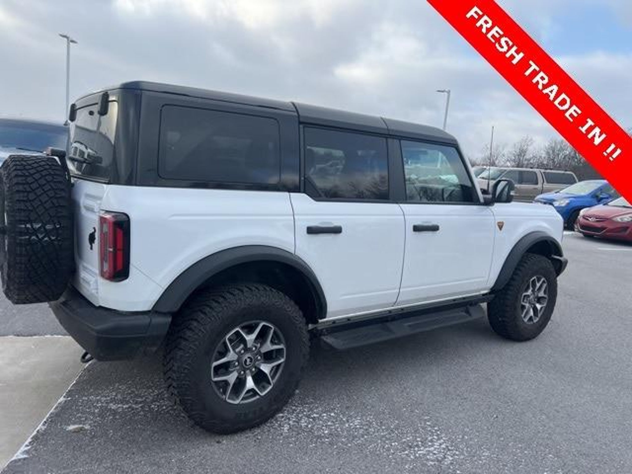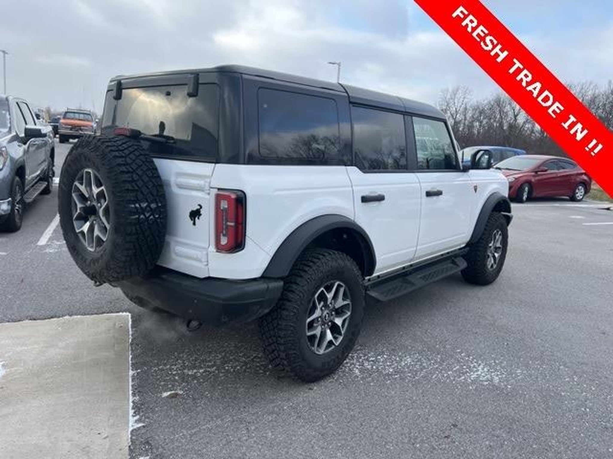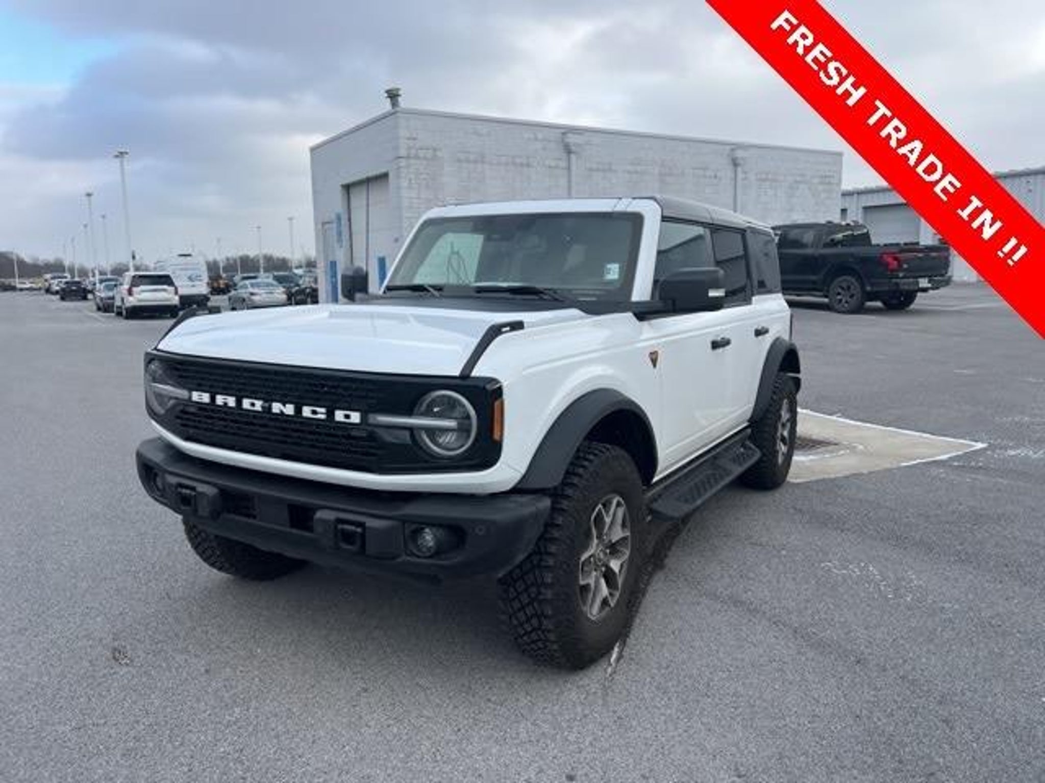 2025 Ford Bronco Badlands 4WD Oxford White 10-Speed Automatic 2.7L EcoBoost V6 Check out all these great options!!! Black Appearance Package (Black Molded-In-Color Door Handles, Black Molded-In-Color Fender Flares, Black Molded-In-Color Sideview Mirror Caps, and Black-Painted Molded-In-Color Grille), Equipment Group 334A Lux Package (2-Door Intelligent Access w/Lock/Unlock, 360-Degree Camera, Adaptive Cruise Control, Ambient Footwell Lighting, Connected Navigation, Dr & Pass Illuminated Sliding Visor Vanity Mirrors, Dual Smart Charging USB Ports, Dual-Zone Electronic Automatic Temperature Control, Evasive Steering Assist, Front Parking Sensors, Front Row Heated Seats, Information on Demand Panel, Power Outlet - Back Side of Center Floor Console, Radio: B&O Sound System by Bang & Olufsen, Rear Parking Sensors, Sideview Mirrors, and Universal Garage Door Opener), 4-Wheel Disc Brakes, 4.7 Axle Ratio, 7 Speakers, ABS brakes, Air Conditioning, Alloy wheels, AM/FM radio: SiriusXM with 360L, AM/FM Stereo, Auto High-Beam Headlamps, Auto High-beam Headlights, Auto-dimming Rear-View mirror, BLIS Blind Spot Information System, Brake assist, Compass, Delay-off headlights, Door Storage Bags, Driver door bin, Driver vanity mirror, Dual front impact airbags, Dual front side impact airbags, Electronic Stability Control, Emergency communication system: 911 Assist, Exterior Parking Camera Rear, Front anti-roll bar, Front Bucket Seats, Front Center Armrest, Front fog lights, Front reading lights, Front wheel independent suspension, Fully automatic headlights, Hard Top Sound Deadening Headliner, Heated door mirrors, Heated front seats, Heated steering wheel, Illuminated entry, Integrated roll-over protection, Internet access capable: FordPass Connect, Lane-Keeping System, Leather Shift Knob, Low tire pressure warning, Marine Grade Vinyl Heated Bucket Seats, Occupant sensing airbag, Outside temperature display, Overhead airbag, Overhead console, Panic alarm, Passenger door bin, Passenger vanity mirror, Power door mirrors, Power steering, Power windows, Pre-Collision Assist w/Automatic Emergency Braking, Radio data system, Raptor-Style Running Board, Rear-View Camera, Rear-Window Defroster & Washer, Remote keyless entry, Security system, Shadow Black Painted Hard Top, SiriusXM w/360L, Speed control, Split folding rear seat, Steering wheel mounted audio controls, SYNC 4, Tachometer, Telescoping steering wheel, Tilt steering wheel, Traction control, Trip computer, Variably intermittent wipers, Voltmeter, and Wheels: 17 Carbonize