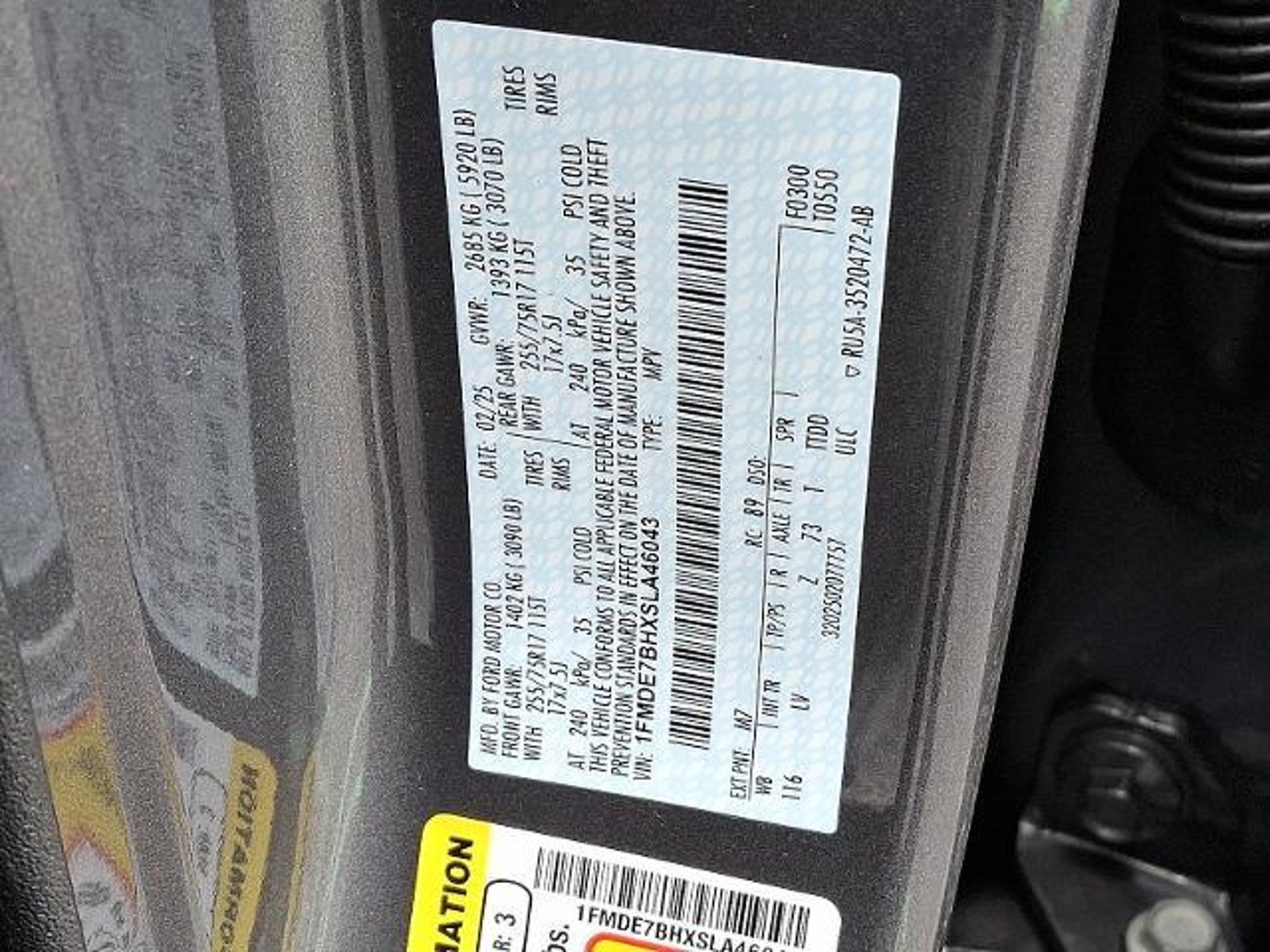 VIN 1FMDE7BHXSLA46043