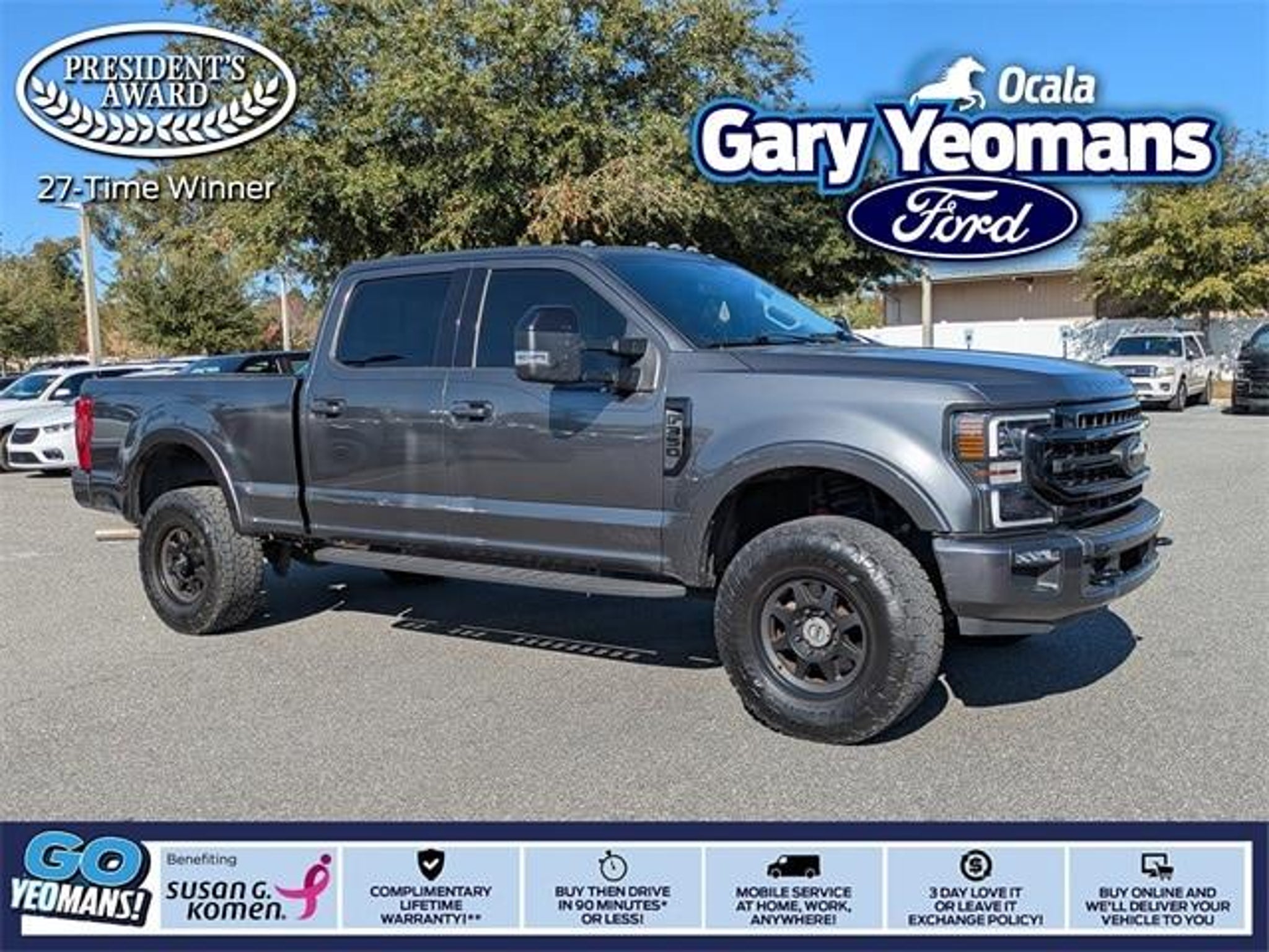 Certified. 2020 Ford F-350SD Lariat 4WD 10-Speed Automatic 7.3L V8 PFI SOHC 16V Federal 385hp Magnetic Metallic F-350 SuperDuty Lariat, 7.3L V8 PFI SOHC 16V Federal 385hp, 4WD, Black w/Front Leather Seating Surfaces 40/Console/40, 5th Wheel/Gooseneck Hitch Prep Package, 6 Ebony Black Angular Running Boards, Ambient Lighting - Fixed Color, Black Out Surrounds LED Only Headlamps, Body-Color Front & Rear Bumpers, Easy Entry®/Exit Memory Driver's Seat Feature, Ebony Black Painted Front Grille Bars, Ebony Black Painted Mirror Caps, GVWR: 11,300 lb Payload Package, Intelligent Access w/Push-Button Start, Lariat Sport Appearance Package, Lariat Ultimate Package, LED Box Lighting, Memory Power-Adjustable Pedals, Navigation System, Order Code 618A, Power Heated/Ventilated Driver Seat w/Memory, Power Heated/Ventilated Passenger Seat, Power Telescoping/Tilt Steering Wheel/Column, PowerScope Trailer Tow Mirrors w/Memory, Rear Wheel Well Liners (Pre-Installed), Remote Start System, Remote Tailgate Release, Tailgate Step & Handle, Tough Bed Spray-In Bedliner, Voice-Activated Touchscreen Navigation System. THIS VEHICLE INCLUDES THE FOLLOWING FEATURES AND OPTIONS: 5th Wheel/Gooseneck Hitch Prep Package, GVWR: 11,300 lb Payload Package, Lariat Sport Appearance Package (6 Ebony Black Angular Running Boards, Black Out Surrounds LED Only Headlamps, Body-Color Front & Rear Bumpers, Ebony Black Painted Front Grille Bars, Ebony Black Painted Mirror Caps, Rear Wheel Well Liners (Pre-Installed), and Tough Bed Spray-In Bedliner), Lariat Ultimate Package (Ambient Lighting - Fixed Color, Easy Entry®/Exit Memory Driver's Seat Feature, Intelligent Access w/Push-Button Start, LED Box Lighting, Memory Power-Adjustable Pedals, Power Heated/Ventilated Driver Seat w/Memory, Power Heated/Ventilated Passenger Seat, Power Telescoping/Tilt Steering Wheel/Column, PowerScope Trailer Tow Mirrors w/Memory, Remote Start System, Remote Tailgate Release, Tailgate Step & Handle, and Voice-Activated Touchscreen Navigation System), Order Code 618A, F-350 SuperDuty Lariat, Ford Blue Certified Certified, 7.3L V8 PFI SOHC 16V Federal 385hp, 4WD, Black w/Front Leather Seating Surfaces 40/Console/40, Navigation System, 10 Speakers, 110V/400W Outlet, 4-Wheel Disc Brakes, ABS brakes, Adaptive Cruise Control & Collision Warning, Adjustable pedals, Air Conditioning, Alloy wheels, AM/FM radio: SiriusXM, Auto High-beam Headlights, Auto-dimming Rear-View mirror, Automatic temperature control, Brake assist, Bumpers: chrome, Compass, Delay-off headlights, Driver door bin, Driver vanity mirror, Dual front impact airbags, Dual front side impact airbags, Electronic Stability Control, Emergency communication system: SYNC 3 911 Assist, Exterior Parking Camera Rear, Flow-Through Console, Front anti-roll bar, Front Bucket Seats, Front Center Armrest, Front dual zone A/C, Front fog lights, Front Leather Seating Surfaces 40/Console/40, Front reading lights, Fully automatic headlights, Heated door mirrors, Illuminated entry, Leather steering wheel, LED Roof Clearance Lights, Low tire pressure warning, Outside temperature display, Overhead airbag, Overhead console, Panic alarm, Passenger door bin, Passenger vanity mirror, Power door mirrors, Power driver seat, Power passenger seat, Power steering, Power windows, PowerScope Trailer Tow Mirrors w/Heat, Pro Trailer Backup Assist, Radio data system, Radio: B&O System by Bang & Olufsen, Rear Parking Sensors, Rear reading lights, Rear seat center armrest, Rear step bumper, Rear window defroster, Remote keyless entry, Security system, SiriusXM Radio, Speed control, Split folding rear seat, Steering wheel mounted audio controls, SYNC 3 Communications & Entertainment System, Tachometer, Telescoping steering wheel, Tilt steering wheel, Traction control, Trip computer, Turn signal indicator mirrors, Twin Panel Power Moonroof, Ultimate Trailer Tow Camera System, Universal Garage Door Opener (UGDO), Upfitter Switches (6), Variably intermittent wipers, and Wh