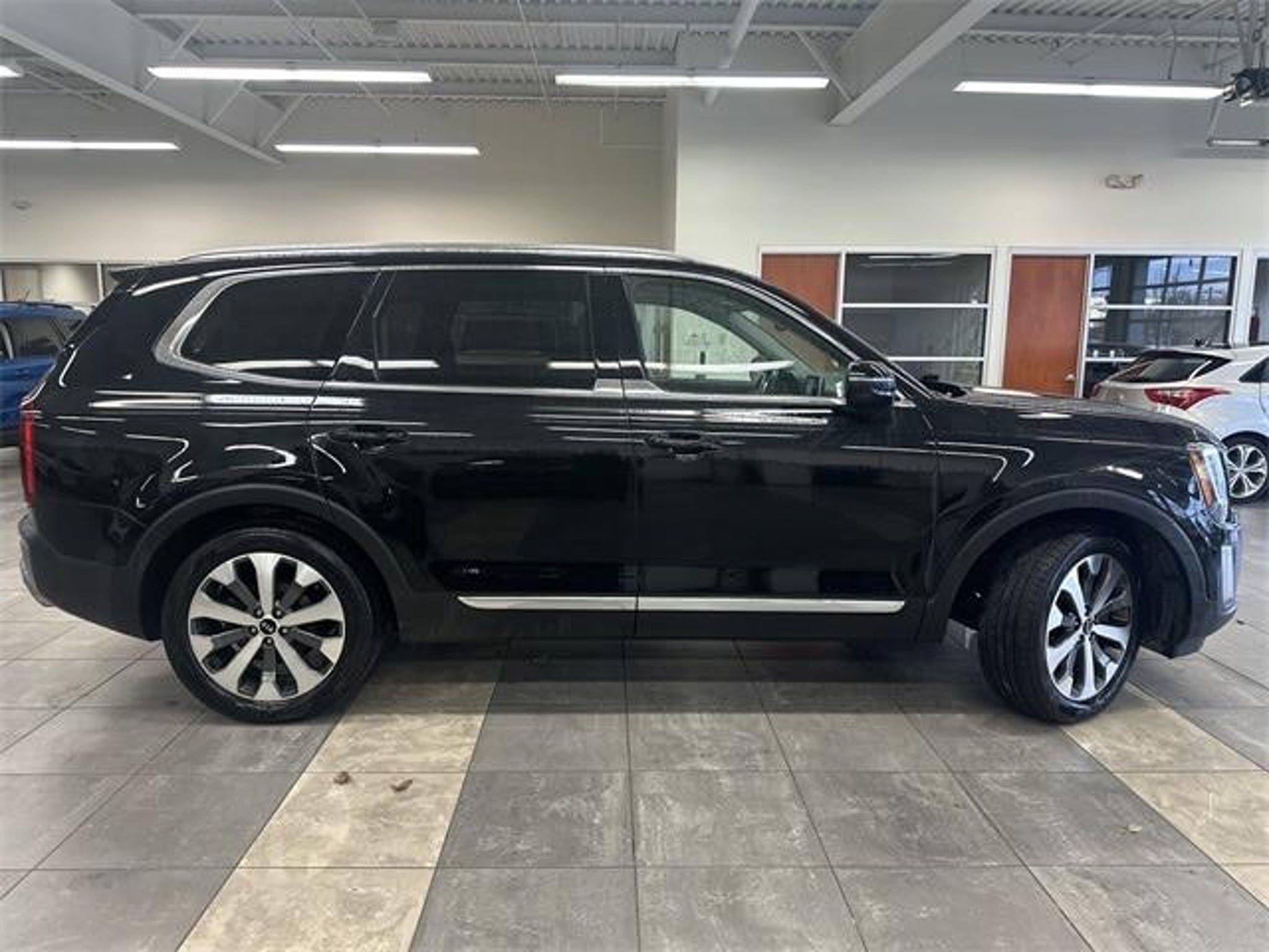 ONE OWNER! CLEAN CARFAX! LOCAL TRADE! MOONROOF & LEATHER! Telluride EX 4D Sport Utility AWD Gray w/SOFINO Artificial Leather Upholstery 20 Alloy Wheels AM/FM radio: SiriusXM Anodized Roof Rails Apple CarPlay & Android Auto Automatic temperature control Captains Chairs Electronic Stability Control EX Premium Package Navigation System Power Liftgate Power moonroof Radio data system Radio: AM/FM/MP3/SiriusXM Audio System Rear audio controls Reclining 3rd row seat Self-Leveling Rear Suspension Tow Hitch w/Harness Towing Package Wheels: 7.5 x 18 Machined Finish Alloy. Clean CARFAX. Ebony Black 2020 Kia Telluride EX Although every reasonable effort has been made to ensure the accuracy of the information contained on this site absolute accuracy cannot be guaranteed. All vehicles are subject to prior sale. Price does not include applicable tax title license and a $387.00 documentation fee or other fees required by law lending institutions and/or lessors. Vehicles shown at different locations are not currently in our inventory (not in stock) but can be made available at our location within a reasonable time after your request. Listed APR down payment payments incentives and other terms are estimates for example purposes only. The payment information provided here is not a commitment by any organization to provide credit leases or other programs. Some customers may not qualify for listed programs. Awards: * JD Power Automotive Performance Execution and Layout (APEAL) Study * Motor Trend Automobiles of the year * NACTOY 2020 North American Utility of the Year * 2020 KBB.com Best Buy Awards * 2020 KBB.com 10 Best SUVs Worth Waiting For * 2020 KBB.com 10 Favorite New-for-2020 Cars THIS VEHICLE ALSO HAS THE FOLLOWING OPTIONS AND FEATURES:EX Premium Package (20 Alloy Wheels Anodized Roof Rails and Captains Chairs) Towing Package (Self-Leveling Rear Suspension and Tow Hitch w/Harness) Telluride EX 4D Sport Utility AWD Gray w/SOFINO Artificial Leather Upholstery AM/FM radio: SiriusXM Apple CarPlay & Android Auto Automatic temperature control Electronic Stability Control Navigation System Power Liftgate Power moonroof Radio data system Radio: AM/FM/MP3/SiriusXM Audio System Rear audio controls Reclining 3rd row seat Wheels: 7.5 x 18 Machined Finish Alloy 3.648 Axle Ratio 3rd row seats: split-bench 4-Wheel Disc Brakes 6 Speakers ABS brakes Air Conditioning Alloy wheels Auto-dimming Rear-View mirror Brake assist Bumpers: body-color Carpeted Floor Mats Compass Delay-off headlights Driver door bin Driver vanity mirror Dual front impact airbags Dual front side impact airbags Emergency communication system: 911 Connect Four wheel independent suspension Front anti-roll bar Front Bucket Seats Front Center Armrest Front dual zone A/C Front reading lights Fully automatic headlights Heated & Ventilated Front Bucket Seats Heated door mirrors Heated front seats Hybrid Cargo Net Illuminated entry Illuminated Scuff Plates Knee airbag Leather Shift Knob Leather steering wheel Low tire pressure warning Multi Colored Interior Light Kit Occupant sensing airbag Outside temperature display Overhead airbag Overhead console Panic alarm Passenger door bin Passenger vanity mirror Power door mirrors Power driver seat Power passenger seat Power steering Power windows Rear air conditioning Rear anti-roll bar Rear Bumper Protector Rear reading lights Rear seat center armrest Rear window defroster Rear window wiper Remote keyless entry Roof rack: rails only Security system Speed control Speed-sensing steering Split folding rear seat Spoiler Steering wheel mounted audio controls Tachometer Telescoping steering wheel Tilt steering wheel Traction control Trip computer Turn signal indicator mirrors Variably intermittent wipers and Ventilated front seats.
