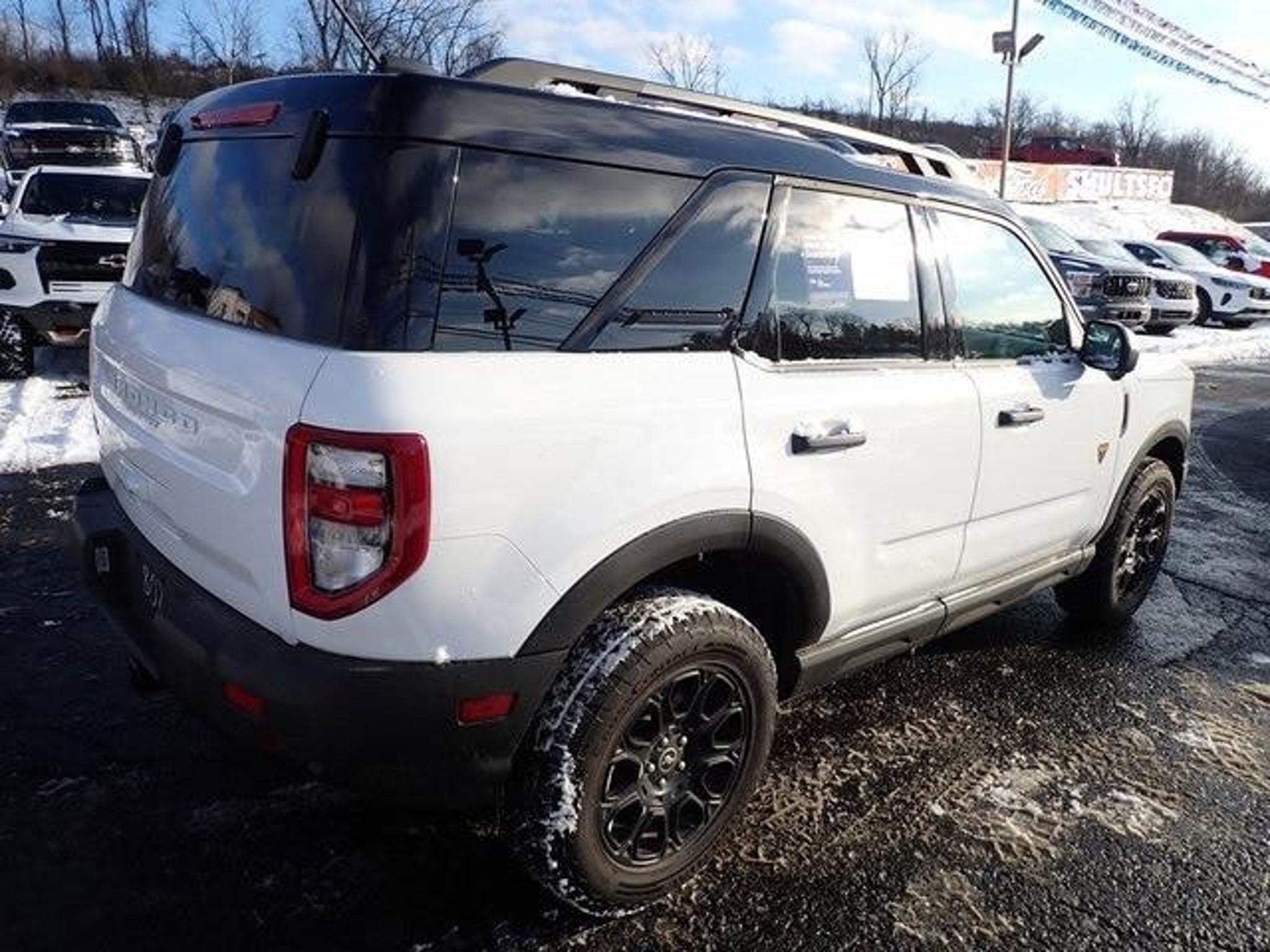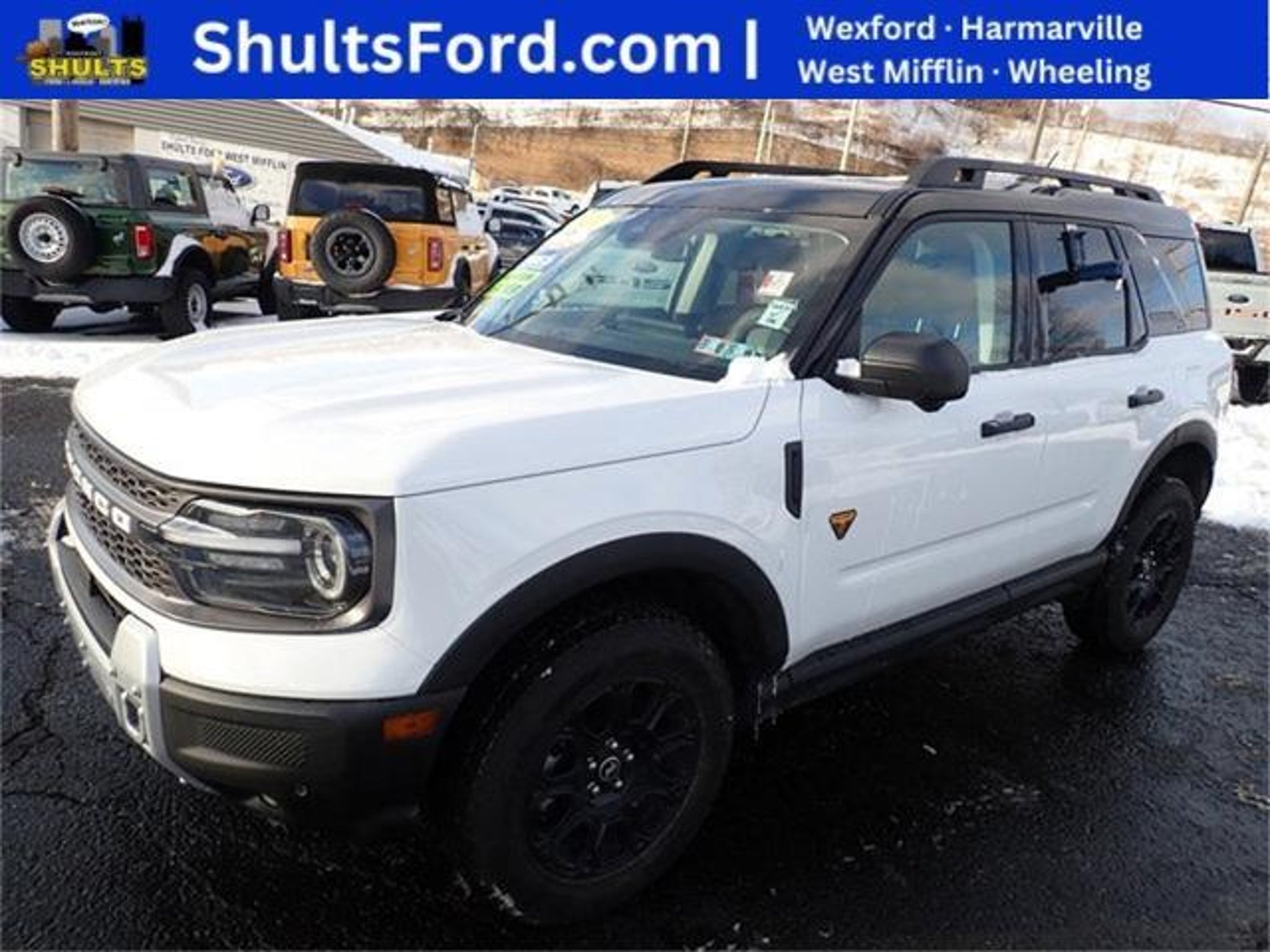 Shults Ford is pleased to offer this Ford Factory Certified 2025 Ford Bronco Sport Badlands Oxford White EcoBoost 2.0L I4 GTDi DOHC Turbocharged VCT 8-Speed Automatic 4WD. The Ford Blue Advantage Program helps provide peace of mind when purchasing a previously owned vehicle. This includes a 172-point inspection by certified technicians, an additional 12-month/12,000-mile Bumper to Bumper Limited Warranty and a 7-Year/100,000-Mile Powertrain Limited Warranty, both with $100 deductible and includes all applicable owner benefits including Roadside Assistance and a 14-day/1,000-mile MONEY BACK GUARANTEE. You will also receive 22,000 FordPass Rewards Points to use toward scheduled maintenance visits. And a full tank of gas with every Ford certified delivery. We offer a free Carfax report on every used vehicle we sell so you can buy today and every day with complete confidence. Test drive one today and you will agree Ford Factory Certified vehicles are an exceptional value! **ONE OWNER**, **120-POINT INSPECTION**, and **CLEAN VEHICLE HISTORY...NO ACCIDENTS** Badlands Tech Package (B&O Sound System by Bang & Olufsen, Connected Navigation, and HD Radio), Equipment Group 400A, Alloy wheels, and Wheels: 17 Matte Black-Painted Aluminum. Ford Gold Factory Certified is our highest certification level. We follow all the Ford guidelines and requirements for mechanical and cosmetic reconditioning. All systems and features must function as designed. Cosmetically, we recondition these vehicles as close to new as possible. We like to say these vehicles are not new but better than used. Call us today to schedule a test drive and experience for yourself why we are the largest Ford Dealer in Pennsylvania.