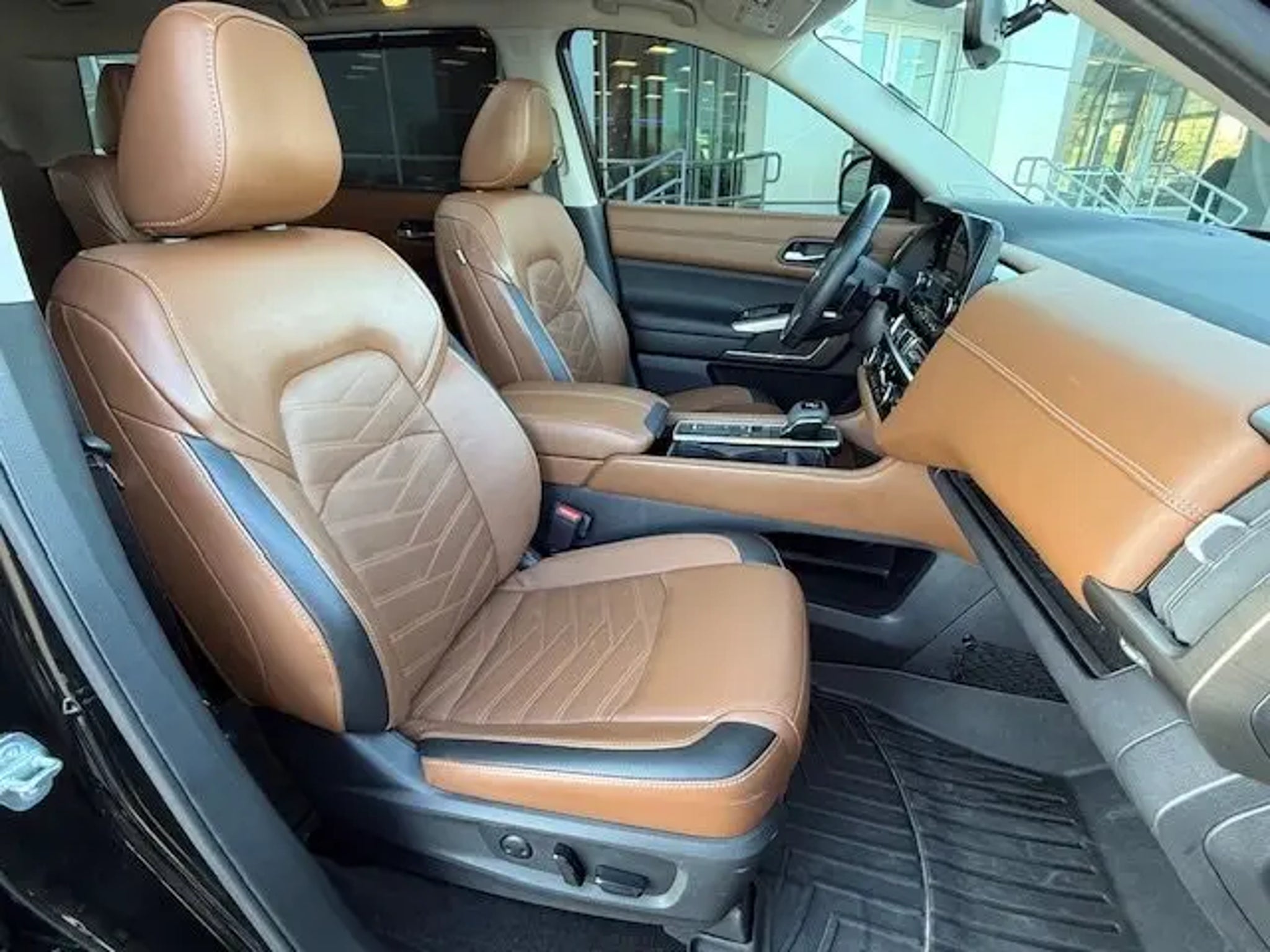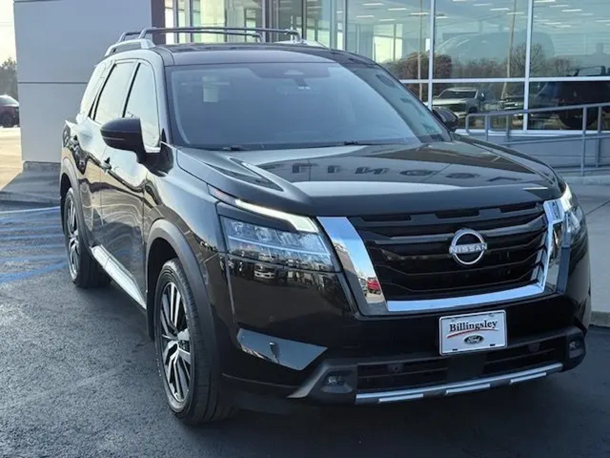Super Black 2023 Nissan Pathfinder Platinum FWD 9-Speed Automatic V6 2nd-Row Captain Chairs, 2nd-Row Removable Center Console, 3rd row seats: bench, Auto tilt-away steering wheel, Automatic temperature control, Bose Premium Audio System, Cargo Area Protector, Cargo Net, Cargo Package, Exterior Parking Camera Rear, First Aid Kit, Heads-Up Display, Heated & Cooled Front Bucket Seats, Heated rear seats, Heated steering wheel, Leather steering wheel, Memory seat, Navigation system: NissanConnect Navigation, Platinum Captain Chairs Package, Power Liftgate, Power moonroof, Power passenger seat, Rear air conditioning, Wheels: 20 Machined Alloy w/Dark Met Gray Finish. Recent Arrival! 20/27 City/Highway MPG