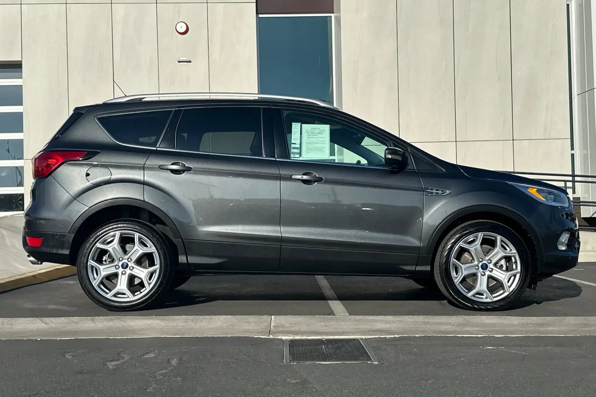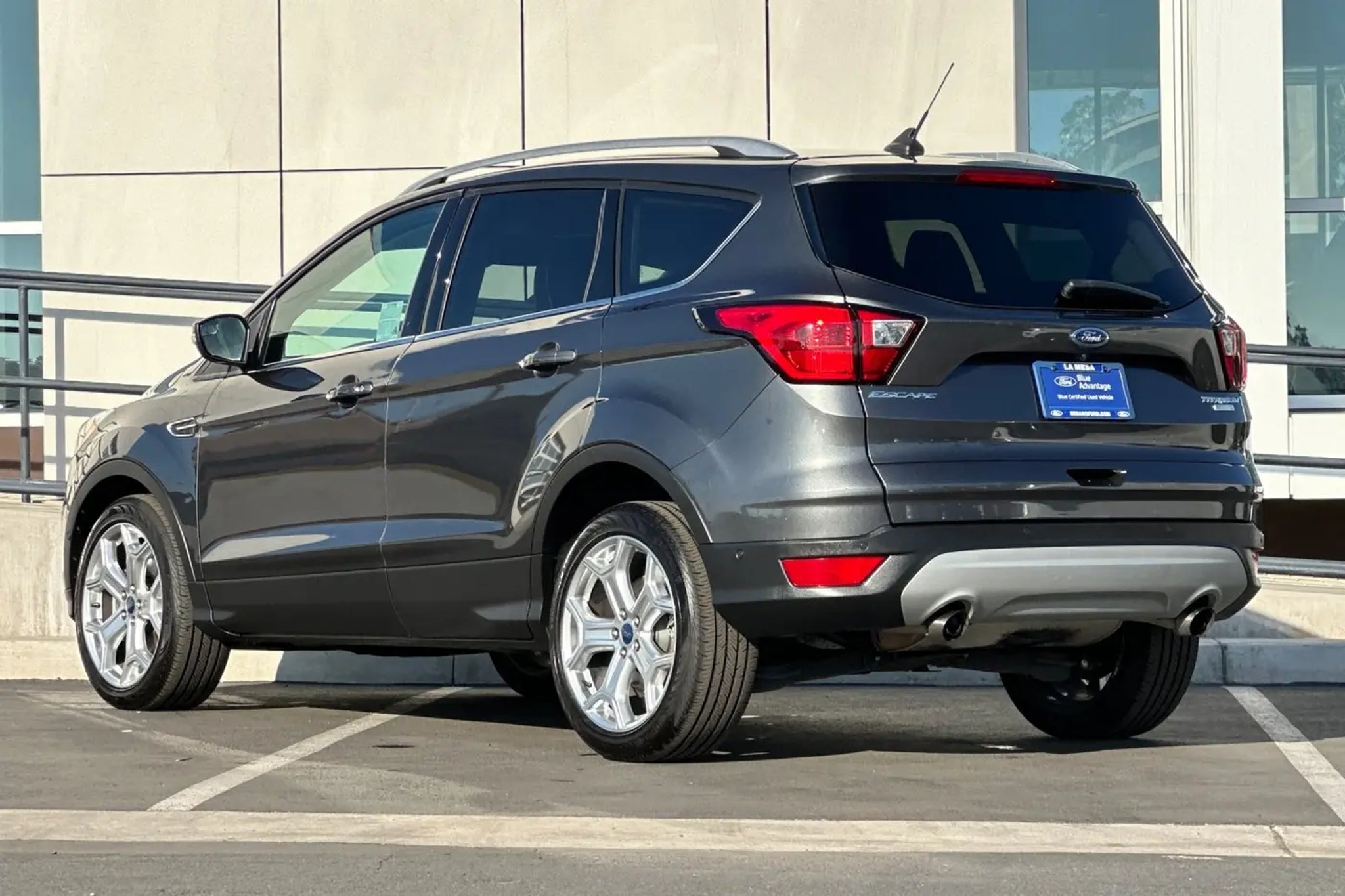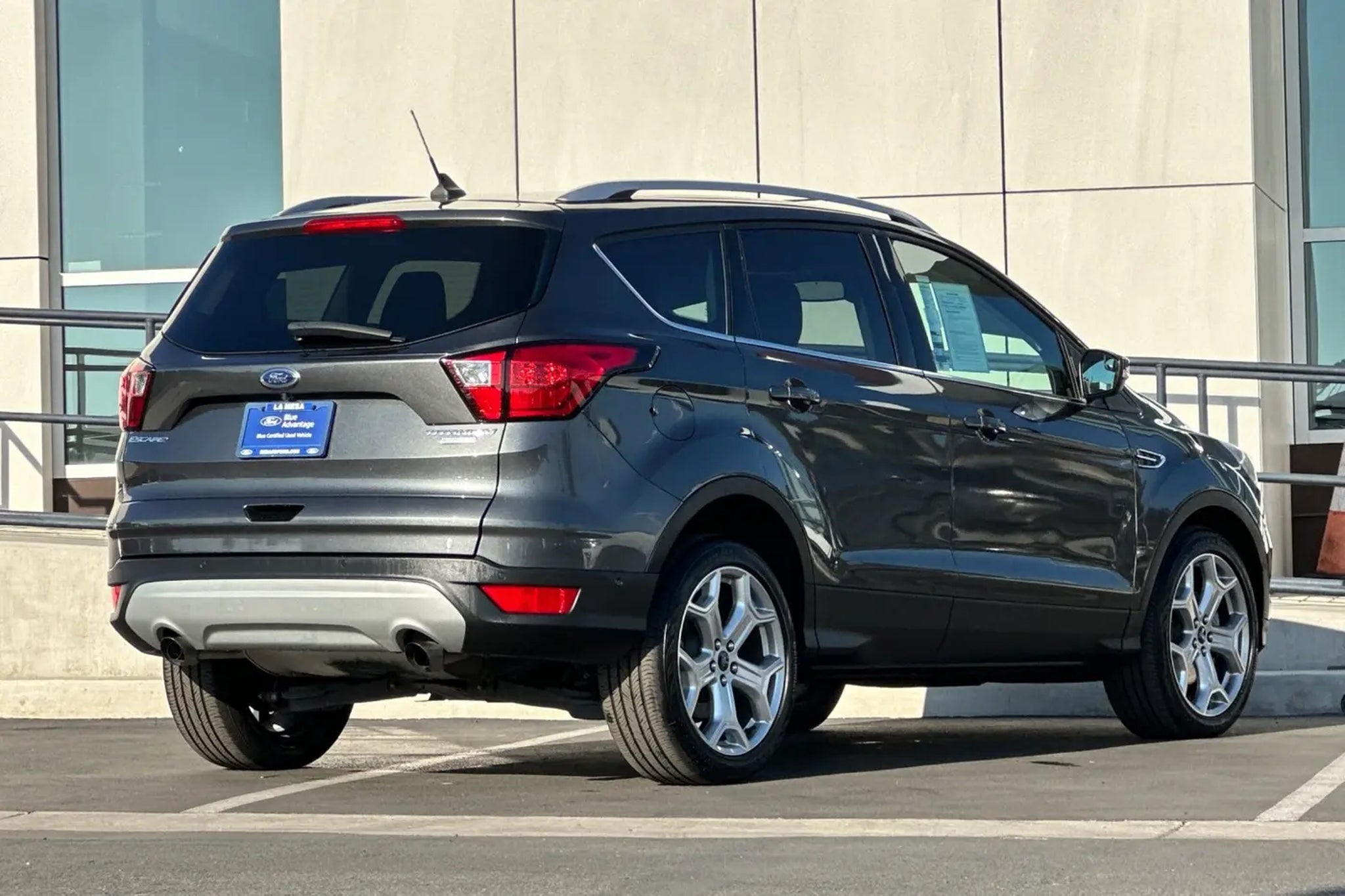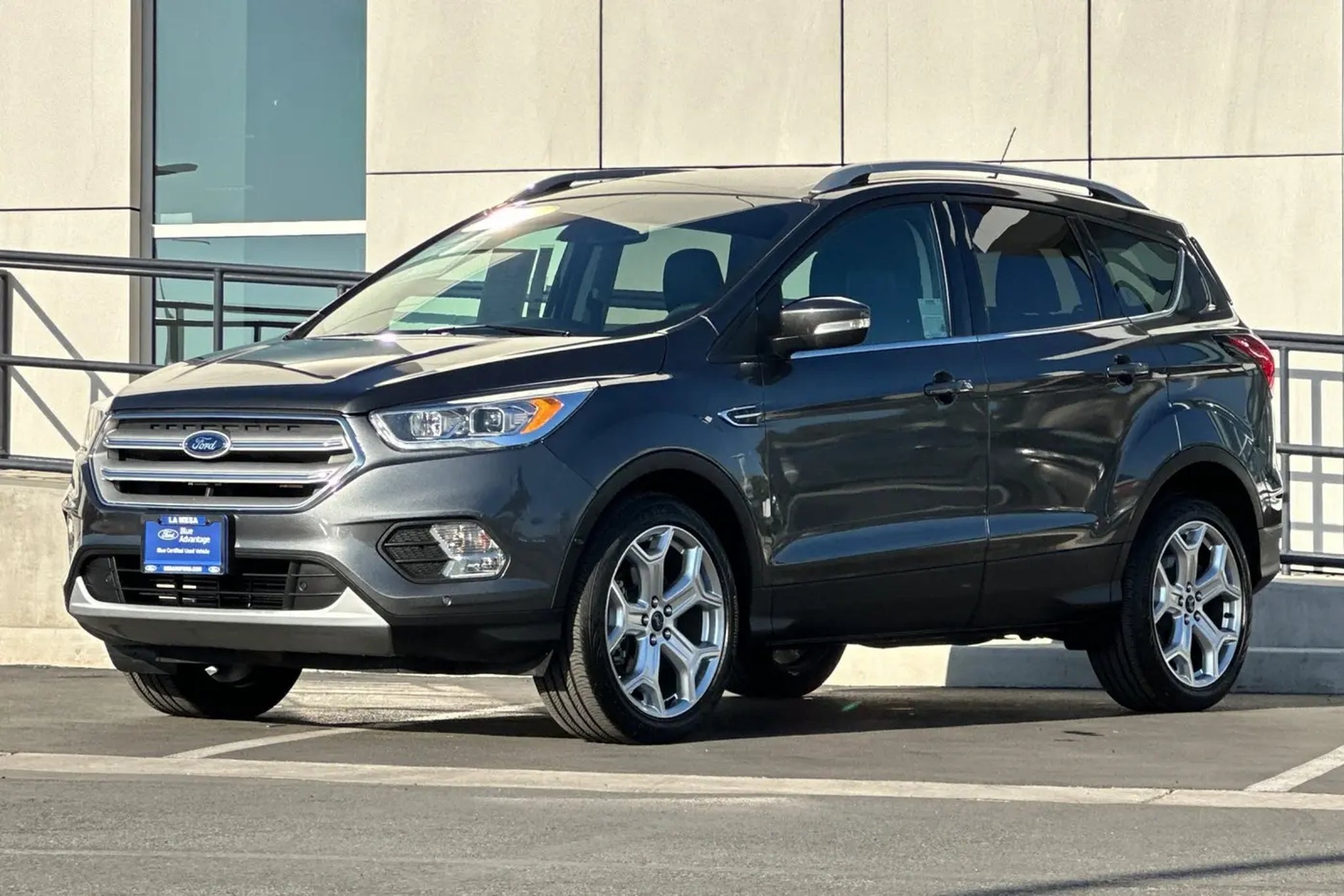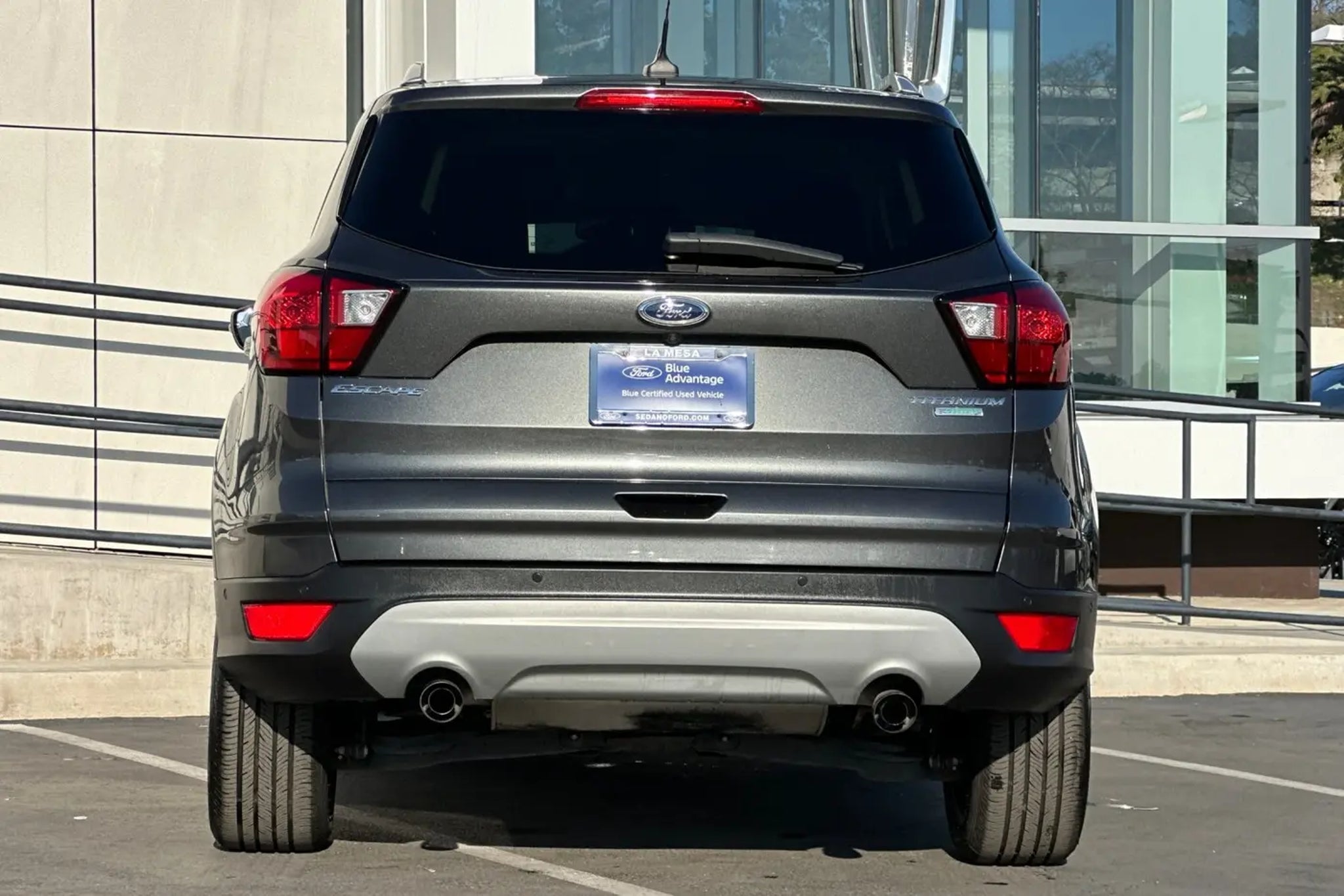 This 2019 Magnetic Ford Escape Titanium FWD is well equipped and includes these features and benefits: AppLink/Apple CarPlay and Android Auto, Auto-dimming Rear-View mirror, Equipment Group 400A, Exterior Parking Camera Rear, Heated front seats, Heated Leather-Trimmed Front Bucket Seats, High-Intensity Discharge Headlights, Navigation System, Power Liftgate, Power passenger seat, SYNC 3 Communications & Entertainment System, Voice-Activated Touchscreen Navigation System, Wheels: 19 Bright-Machined Aluminum, 10 Speakers, 3.07 Axle Ratio, 4-Wheel Disc Brakes, ABS brakes, Air Conditioning, AM/FM radio: SiriusXM, Automatic temperature control, Brake assist, Bumpers: body-color, Compass, Delay-off headlights, Driver door bin, Driver vanity mirror, Dual front impact airbags, Dual front side impact airbags, Electronic Stability Control, Emergency communication system: SYNC 3 911 Assist, FordPass Connect, Four wheel independent suspension, Front anti-roll bar, Front Bucket Seats, Front Center Armrest, Front dual zone A/C, Front fog lights, Front reading lights, Fully automatic headlights, Garage door transmitter, Heated door mirrors, Heated steering wheel, Illuminated entry, Interior Cargo Cover, Knee airbag, Leather Shift Knob, Low tire pressure warning, Memory seat, Occupant sensing airbag, Outside temperature display, Overhead airbag, Overhead console, Panic alarm, Passenger door bin, Passenger vanity mirror, Power door mirrors, Power driver seat, Power steering, Power windows, Radio data system, Radio: AM/FM Stereo w/MP3 Capable, Rear anti-roll bar, Rear reading lights, Rear seat center armrest, Rear window defroster, Rear window wiper, Remote keyless entry, Roof rack: rails only, Security system, Speed control, Speed-sensing steering, Split folding rear seat, Steering wheel mounted audio controls, Tachometer, Telescoping steering wheel, Tilt steering wheel, Traction control, Trip computer, Turn signal indicator mirrors, Variably intermittent wipers, AppLink/Apple CarPlay and Android Auto, Auto-dimming Rear-View mirror, Equipment Group 400A, Exterior Parking Camera Rear, Heated front seats, Heated Leather-Trimmed Front Bucket Seats, High-Intensity Discharge Headlights, Navigation System, Power Liftgate, Power passenger seat, SYNC 3 Communications & Entertainment System, Voice-Activated Touchscreen Navigation System, Wheels: 19 Bright-Machined Aluminum. Odometer is 21007 miles below market average! 22/29 City/Highway MPG Sedano Ford is a trusted used and Ford Certified Pre-Owned dealership in La Mesa, Cali