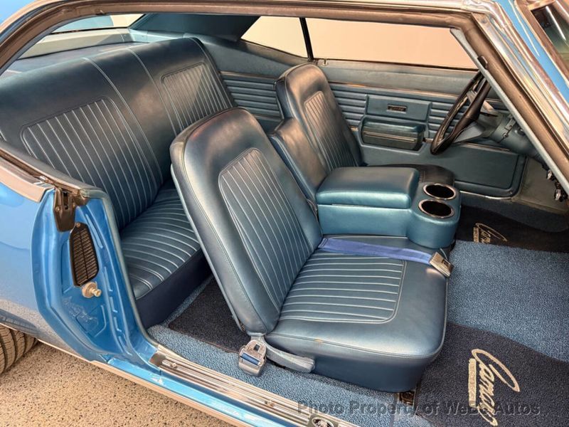 1968 Chevrolet Camaro Why This Car Is Special The 1968 Chevrolet Camaro we have on offer isn't just a vehicle; it's a piece of automotive history that encapsulates the spirit of American muscle cars. This particular model, featuring an alluring blue color and a numbers-matching 327cid engine, represents an era of raw power and stylish design. It's tailored for enthusiasts who value authenticity and performance in a classic car, and its condition and specs make it a standout option for collectors and driving aficionados alike. Features List - 327 Numbers Matching V8 Engine - 2-speed Powerglide Automatic Transmission - Ice Cold Air Conditioning - Power Steering - 4 Wheel Disc Brakes - Beautiful Blue Paint - Blue Leather Interior - Astro Ventilation System - All-Vinyl Bucket Seats Mechanical Under the hood lies the heart of this Camarothe 327cid V8 engine which is numbers matching, as verified by the VIN's fifth character 'N' indicating a V8 327 275hp configuration. Coupled with the Powerglide automatic transmission, this Camaro offers a smooth yet robust driving experience that is hard to match. The well-maintained engine and transmission system ensure reliability and performance that can still make heads turn on the road. The inclusion of 4 wheel disc brakes provides superior stopping power, an upgrade that enhances safety and handling. Interior The interior of this Camaro is just as impressive as its mechanical credentials. The blue leather upholstery provides a comfortable and luxurious feel, perfectly complementing the exterior. The all-vinyl bucket seats are both stylish and supportive, ideally suited for both spirited driving and leisurely cruises. The vehicle also features the innovative Astro Ventilation system, a unique addition that eliminates the need for side vent windows and provides passengers with fresh air without drafts, maintaining comfort in all driving conditions. Exterior This 1968 Camaro boasts a striking blue paint finish that's sure to catch the eye of passersby. The paint is well-preserved, reflecting its garage-kept status and meticulous care from previous owners. The classic styling cues like the aggressive front grille and sleek lines are in excellent condition, emphasizing the vehicle's sporty pedigree. The chrome accents and brightwork add a touch of elegance, making this Camaro a truly desirable piece from every angle. Conclusion This 1968 Chevrolet Camaro with its numbers matching 327cid engine and a stellar list of features offers an incredible blend of performance, style, and classic car appeal. It's a car that allows you to enjoy the thrill of a bygone era of motoring with modern reliability and comfort. For anyone looking to own a piece of muscle car history, this Camaro is a wonderful prospect. We invite all interested buyers to see and experience this iconic vehicle firsthand. For more information or to schedule a viewing, please call our dealership at 941-254-6608. Experience a part of automotive history today! Disclaimer Information found on the website is presented as given to us by the owner of the car, whether on consignment or from the owner we bought it from. Some Photos, materials for videos, descriptions and other information are provided by the consignor/seller and is deemed reliable, but Skyway Classics does not warranty or guarantee this information. Skyway Classics is not responsible for information that may incorrect or a publishing error. The decision to purchase should be based solely on the buyers personal inspection of the vehicle or by a professional inspection service prior to offer or purchase being made. WeBe Autos Specializes in Marketing and Advertising Muscle, Classic, Vintage and Specialty Cars. We offer Professional Photography, HD Movies, and Staging that Sells Cars. Let us showcase and sell your specialty car. Please visit our website for more details. Keep in Touch, Michael Runnalls Specialty Car Marketing & Media WeBe Autos Ltd. Long Island, NY 11780 Michael@WeBeAutos.com www.WeBeAutos.com (O)631-339-0399 (C)516-729-2003 Skype: webeautos (F)631-389-2605 - - - Contact Michael Runnalls at 631-339-0399 or Michael@WeBeAutos.com for more information. -