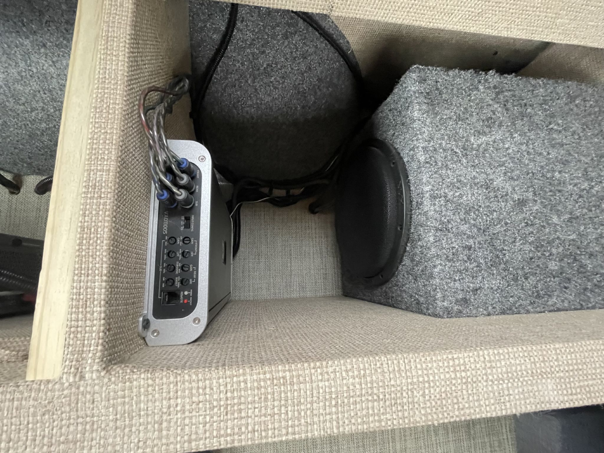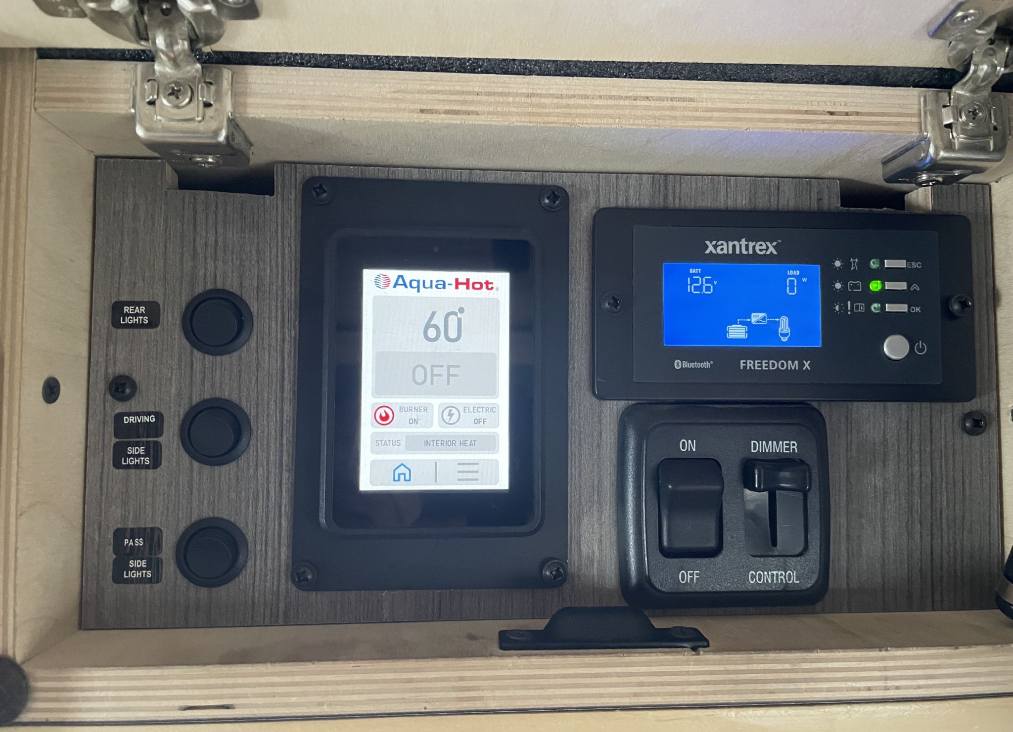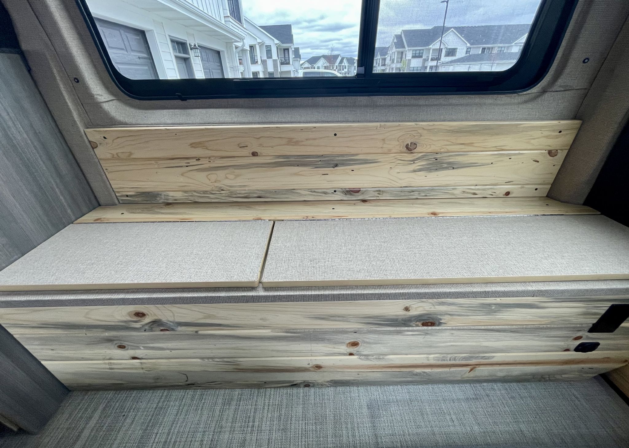 Beatle Kill Pine throughout, 2-pull large out pantry drawers, large storage cabinet, with additional ample cabinet storage above the beds, unique large Isotherm refrigerator with separate large freezer, microwave, 2000 watt inverter, dinette which converts to a bed, beautiful fabric wrap on all exposed metal surfaces, powerful Pioneer Stereo with blue tooth capability, large TV, aquahot heater that provides near instant hot water, outside shower, and plenty of LED lighting inside and out! Laveo dry flush toilet, AC and Max Air fan too, 31-gallon fresh water and 5-gallon gray water tanks, 200 watts of solar with a portable 200-watt solar panel.