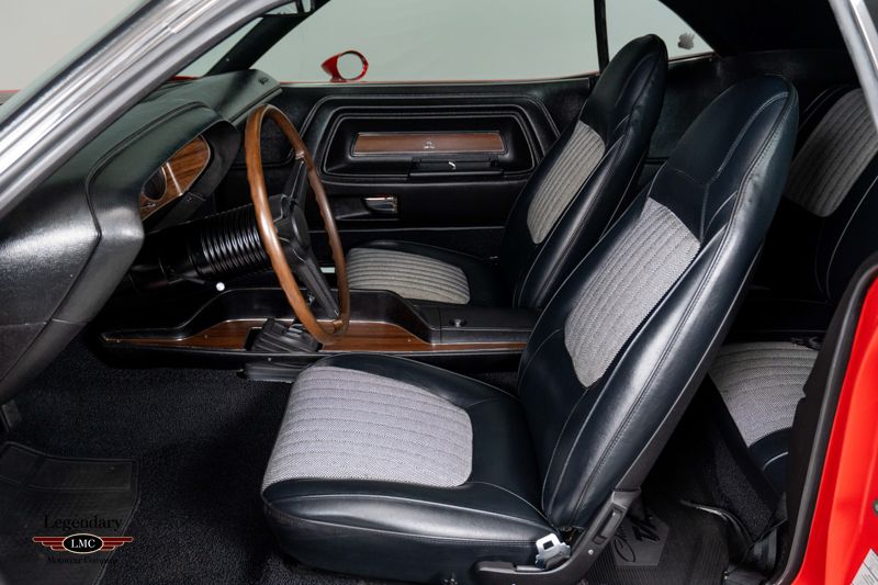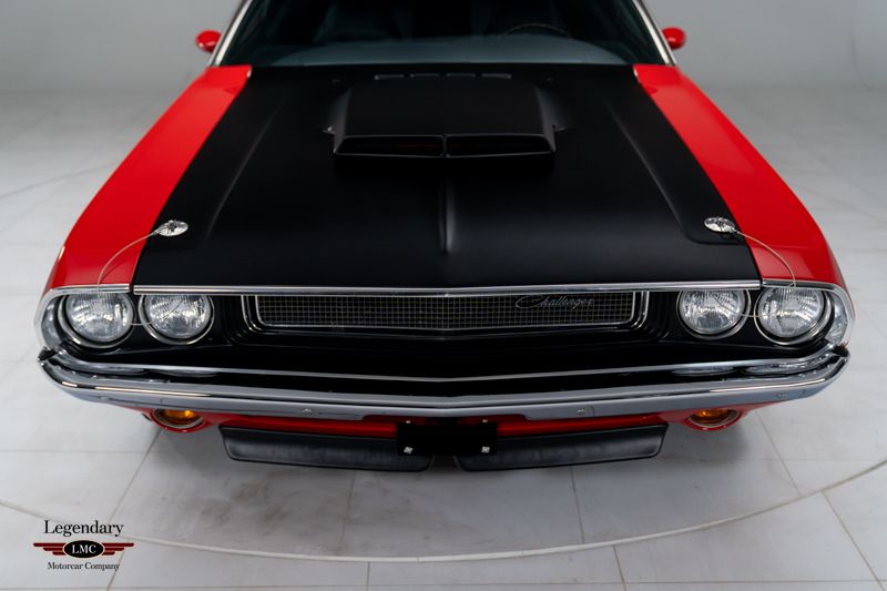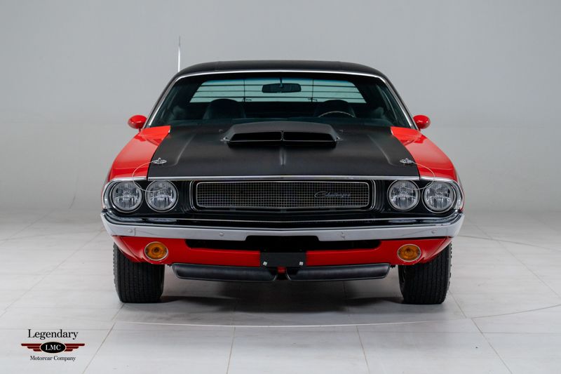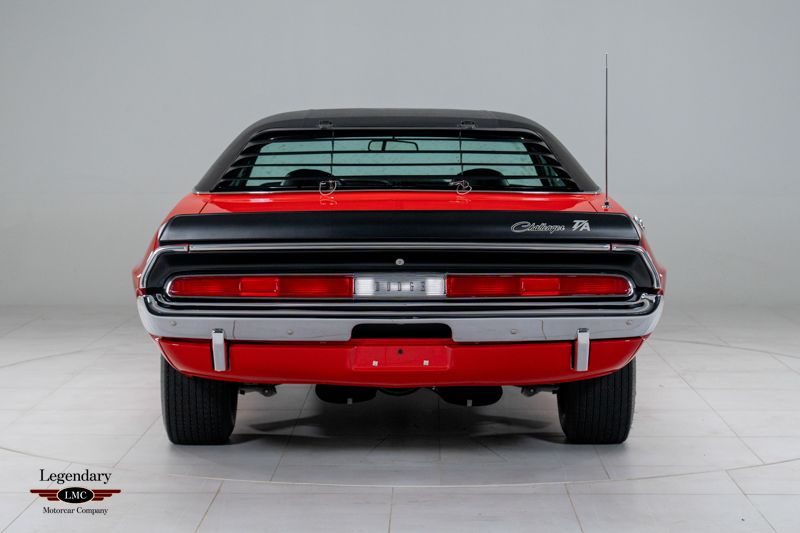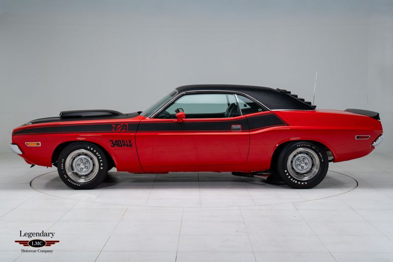 LMC is very proud to offer for sale this 1970 Challenger T/A Built for a single model year to satisfy SCCA Trans Am homologation rules, the 1970 Dodge Challenger T/A remains one of the most desirable Mopars ever produced. With only 2,399 examples built, the T/A combined striking styling, competition-bred engineering, and the high-winding 340 Six-Pack engine. This particular example rises to the top of the class thanks to its show-quality rotisserie restoration, desirable FE5 Rallye Red finish, four-speed manual transmission, and an exceptional suite of original documentation, making it a truly standout collector-grade car. Power comes from the E55 340ci Six-Pack V8, factory-rated at 290 horsepower and equipped with triple Holley carburetors. Exclusive T/A features include the N94 fiberglass fresh-air hood, N44 side-exit exhaust, heavy-duty suspension, fast-ratio steering, and the famous staggered wheel and tire setup developed from the Trans Am racing program. The desirable D21 four-speed manual enhances the T/A’s competition-oriented character. Completed on April 3rd, 1970 at the Hamtramck, Michigan plant, this T/A was exceptionally well optioned from new. Exterior features include the A53 Trans Am Package, A44 rear-window louver package, J45 hood tie-down pins, J82 ducktail rear spoiler, J68 rear backlight louvers, G36 dual racing mirrors, and the correct V6H black longitudinal T/A striping. Finished in FE5 Rallye Red with a contrasting black vinyl top, the car presents one of the most aggressive and desirable visual combinations available in 1970. The interior is equally well equipped with H5X9 high-trim houndstooth bucket seats, C16 woodgrain console, and the A62 Rallye Instrument Cluster with N85 tachometer. Additional factory equipment includes B51 power brakes, 26-inch heavy-duty radiator, and the R35 AM/FM stereo radio. The rotisserie restoration was performed to exceptional standards, with the underside, drivetrain, interior, body, and finishes restored to high-level authenticity. The result is a T/A that presents as a near-factory-fresh example, reflecting the craftsmanship and attention to detail expected of a top-tier Mopar restoration. Adding tremendous value to this already rare Challenger T/A is its outstanding documentation package. This example is accompanied by its fender tag, broadcast sheet, original bill of sale, original finance contract, and factory warranty booklet—a level of historical completeness seldom found with any muscle car, let alone a one-year-only T/A. Beautifully restored, strikingly optioned, and backed by exceptional original documentation, this 1970 Dodge Challenger T/A represents one of the finest examples available—an investment-grade Mopar worthy of any world-class collection.