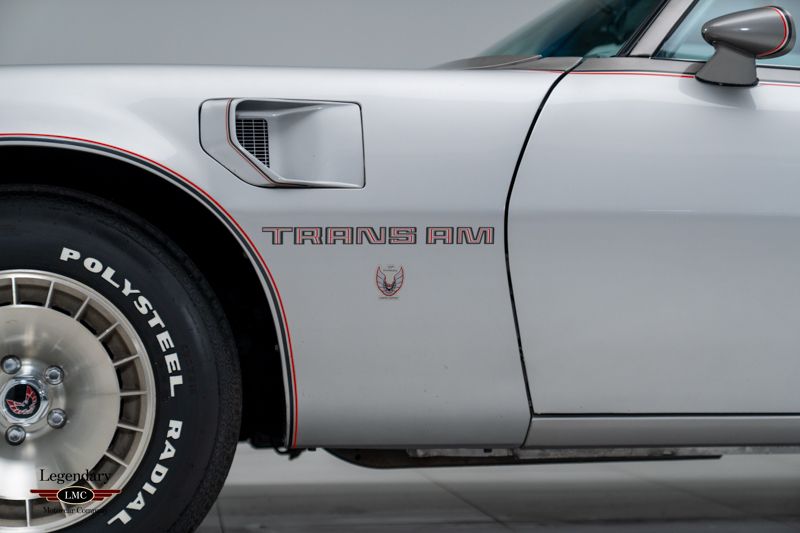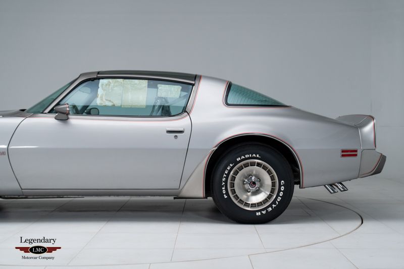 LMC is very proud to offer for sale this 1979 Pontiac Trans Am 10th Anniversary Edition To celebrate the Trans Am’s tenth anniversary, Pontiac introduced one of the most distinctive and luxurious editions ever produced—the 1979 Pontiac Trans Am 10th Anniversary Edition. Distinguished by its exclusive two-tone Platinum and Charcoal exterior, silver leather interior, and special 10th Anniversary graphics, this limited-edition model represented the pinnacle of Trans Am style and performance at the close of the 1970s muscle era. One of only 817 examples built with the 400 cubic-inch V8 and 4-speed manual transmission, and further distinguished as one of approximately 366 produced with factory air conditioning (C60), this particular car stands out as an exceptional survivor, showing just 16 miles on the odometer. It remains garage-kept and part of a private collection, preserving its originality and showroom condition. The original window sticker is still affixed to the driver’s side window, a testament to its authenticity and time-capsule status. Factory-equipped with the desirable WS6 performance handling package, this Trans Am features the 400 CI V8 engine paired with a 4-barrel carburetor and 4-speed manual transmission, delivering the last of Pontiac’s true big-block performance. Additional features include T-tops with bag covers, tilt steering column, air conditioning, Delco AM/FM stereo with 8-track player, power windows and locks, silver seat belts, and a center console with medium gray trim that complements the silver leather upholstery. Originally sold new at Arlikas Pontiac in Aurora, Illinois, this 10th Anniversary Trans Am represents one of the finest preserved examples known. Notably, a similar 10th Anniversary Edition was selected as the official pace car of the 1979 Daytona 500, underscoring the prestige and performance pedigree of this model. This is an extraordinary opportunity to own an essential piece of Pontiac history—a 16-mile, WS6-equipped 400 4-speed with factory air conditioning, one of only 366 produced, that remains virtually untouched since new.