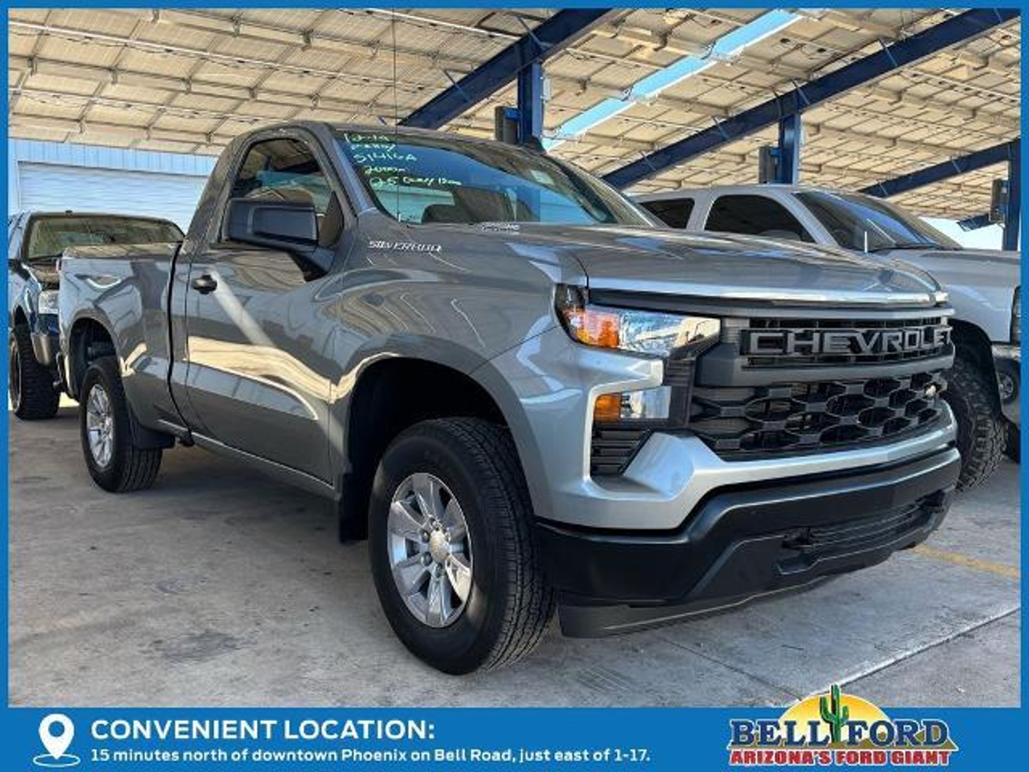 Bell Ford has been proudly serving Phoenix, Arizona for 40 years. Conveniently located on the southeast corner of the i17 and Bell Road. Visit us online today at www.bellford.com This 2025 Chevrolet Silverado 1500 WT is a versatile and capable truck that's ready to take on any task. Equipped with a powerful 2.7L I4 Turbocharged engine, this Silverado delivers impressive performance and efficiency, with 310 horsepower and up to 20 mpg on the highway. ? Trailering Package ? Trailer Brake Controller, Integrated ? Wheels, 17 x 8 Bright Silver Painted Aluminum The Silverado's impressive list of features includes SiriusXM Delete, Bluetooth? for phone, power front windows, remote keyless entry, and a high-definition rear vision camera. The Preferred Equipment Group 1WT adds even more value, with a premium audio system, air conditioning, and a suite of advanced safety technologies like Forward Collision Alert and Lane Keep Assist. With its rugged good looks and exceptional capability, this 2025 Chevrolet Silverado 1500 WT is the perfect choice for those who demand a truck that can handle any job. Whether you're hauling heavy loads, towing a trailer, or simply enjoying the open road, this Silverado is up for the challenge. The interior of the Silverado 1500 WT is designed with your comfort and convenience in mind. The 40/20/40 front split bench seat, vinyl seat trim, and front center armrest with storage provide a comfortable and practical driving experience. The 3.5 monochromatic display driver information center keeps you informed, while the OnStar services and Wi-Fi hotspot capability keep you connected on the go. Backed by Chevrolet's reputation for quality and reliability, this 2025 Silverado 1500 WT is a smart investment that will serve you well for years to come. With its impressive capabilities, thoughtful features, and exceptional value, this truck is a must-see for anyone in the market for a versatile and dependable pickup. For any other questions, please contact us at 602.281.4080