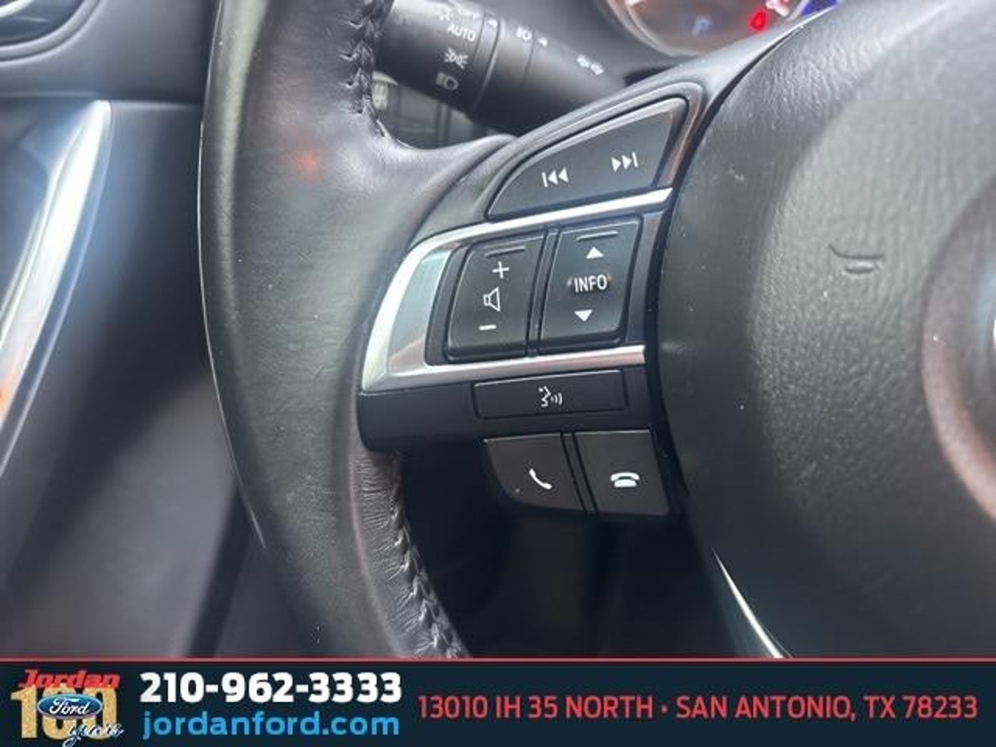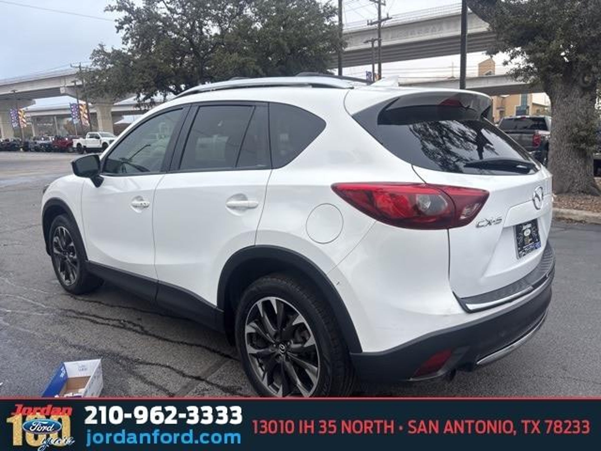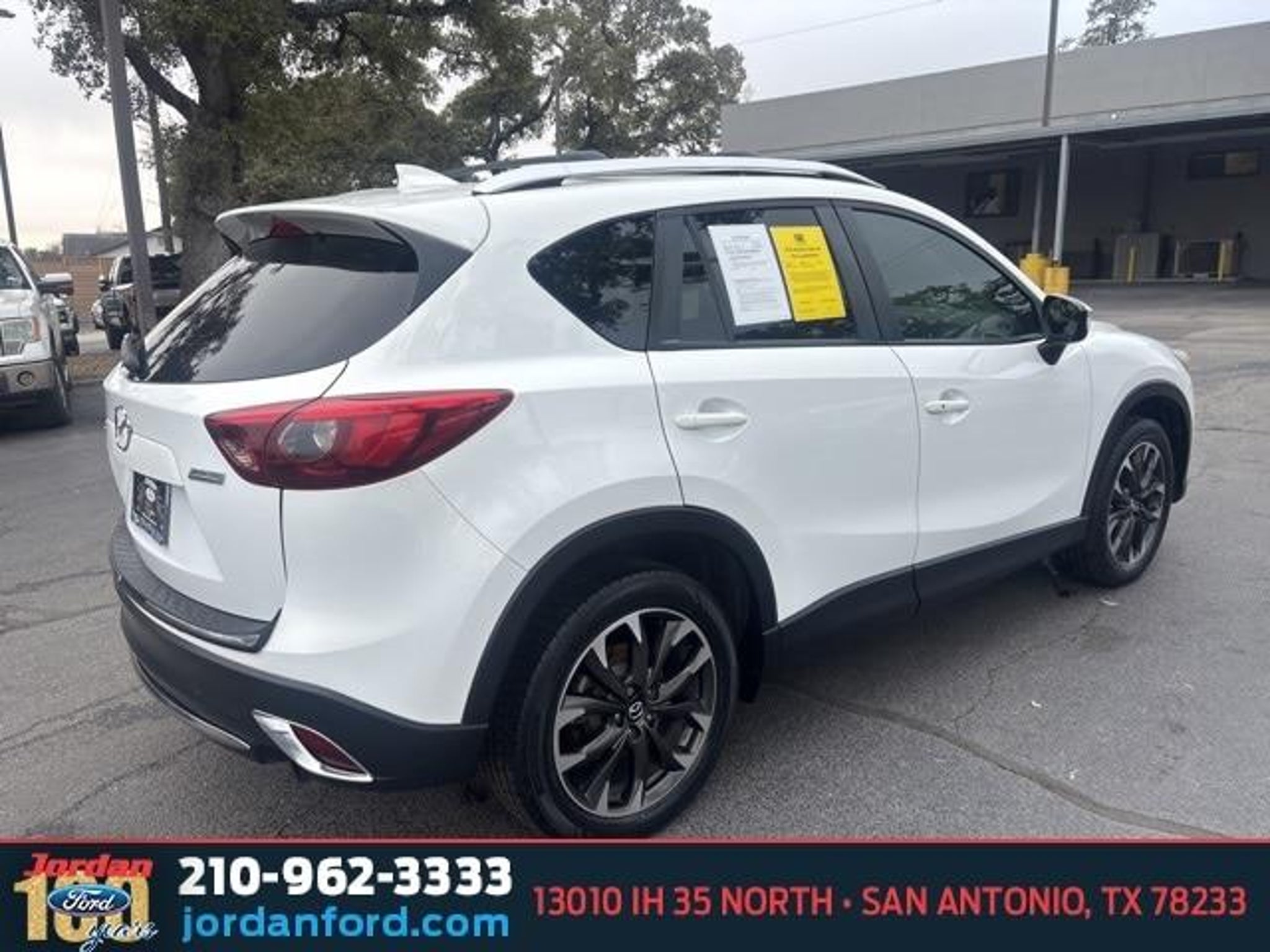 Recent Arrival! 26/33 City/Highway MPG Crystal White Pearl Mica 2016 Mazda CX-5 Grand Touring FWD SKYACTIV? 2.5L 4-Cylinder DOHC 16V 6-Speed Automatic 19 x 7J Aluminum Alloy Wheels, 4-Wheel Disc Brakes, 9 Speakers, ABS brakes, Air Conditioning, Alloy wheels, AM/FM radio: SiriusXM, Auto Dimming Rearview Mirror w/HomeLink, Automatic temperature control, Bose 9-Speaker Audio Sound System, Brake assist, Bumpers: body-color, CD player, Delay-off headlights, Driver door bin, Driver vanity mirror, Dual front impact airbags, Dual front side impact airbags, Electronic Stability Control, Emergency communication system: Mazda Connect, Exterior Parking Camera Rear, Four wheel independent suspension, Front anti-roll bar, Front Bucket Seats, Front Center Armrest, Front dual zone A/C, Front fog lights, Front reading lights, Fully automatic headlights, Grand Touring Technology Package, Heated door mirrors, Heated front seats, Heated Front Sport Shape Seats, Illuminated entry, Leather Seat Trim, Leather Shift Knob, LED Foglights, LED Headlights, LED Signature Daytime Running Lights, LED Signature Rear Combination Lights, Low tire pressure warning, Navigation System, Occupant sensing airbag, Outside temperature display, Overhead airbag, Overhead console, Panic alarm, Passenger door bin, Passenger vanity mirror, Power door mirrors, Power driver seat, Power moonroof, Power steering, Power windows, Radio data system, Radio: AM/FM/CD/HD Modular Audio System w/Bose, Rain sensing wipers, Rear anti-roll bar, Rear reading lights, Rear seat center armrest, Rear window defroster, Rear window wiper, Remote keyless entry, Smart City Brake Support System, Speed control, Speed-sensing steering, Split folding rear seat, Steering wheel mounted audio controls, Tachometer, Telescoping steering wheel, Tilt steering wheel, Traction control, Trip computer, Turn signal indicator mirrors, Variably intermittent wipers. Call (888) 721-5874 with any questions or to schedule a test drive! Jordan Ford has proudly served drivers in San Antonio, Texas, and surrounding areas like New Braunfels, Boerne, and Schertz for over 100 years. Since 1919, we?ve been dedicated to providing a simple, transparent car-buying experience with our Simple, Easy Menu Pricing?no hidden fees or surprises. Visit Jordan Ford, conveniently located at 13010 IH 35 North, San Antonio, TX 78233, to shop new Ford vehicles, quality used cars, or schedule expert Ford service today!
